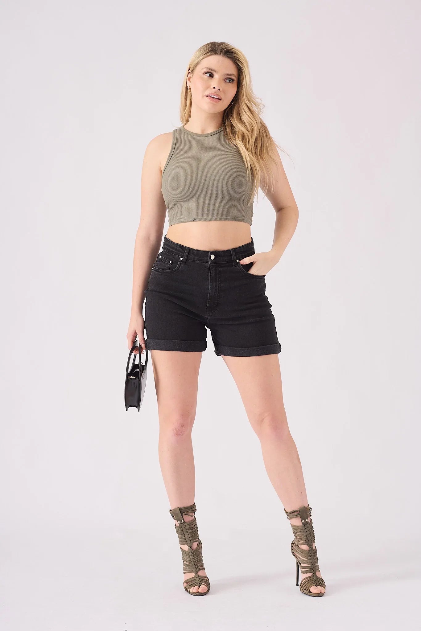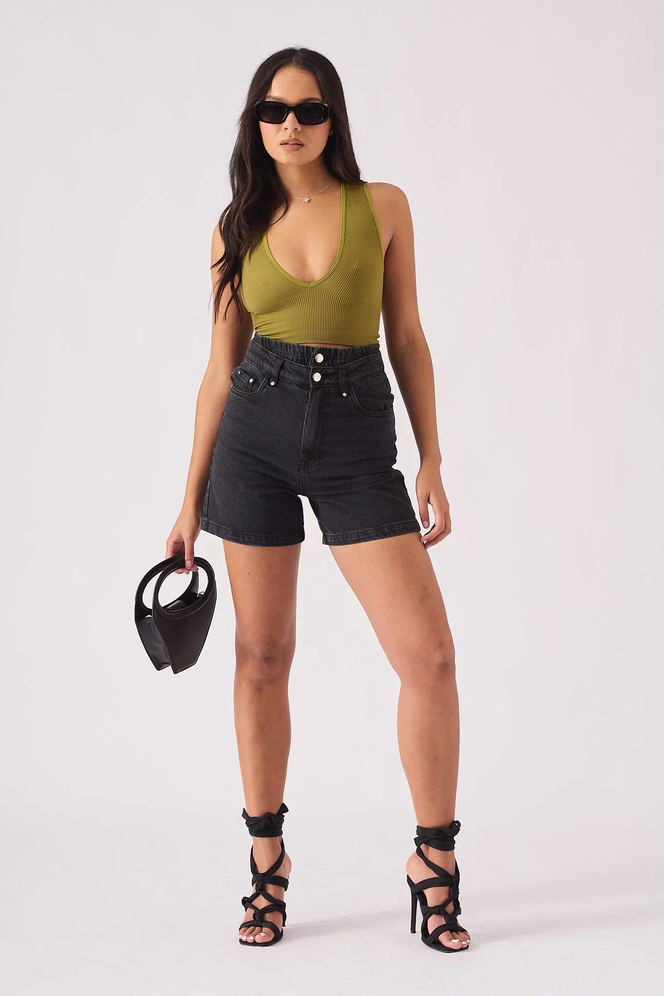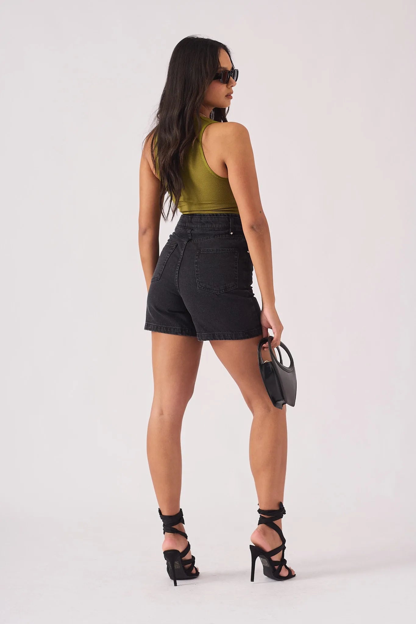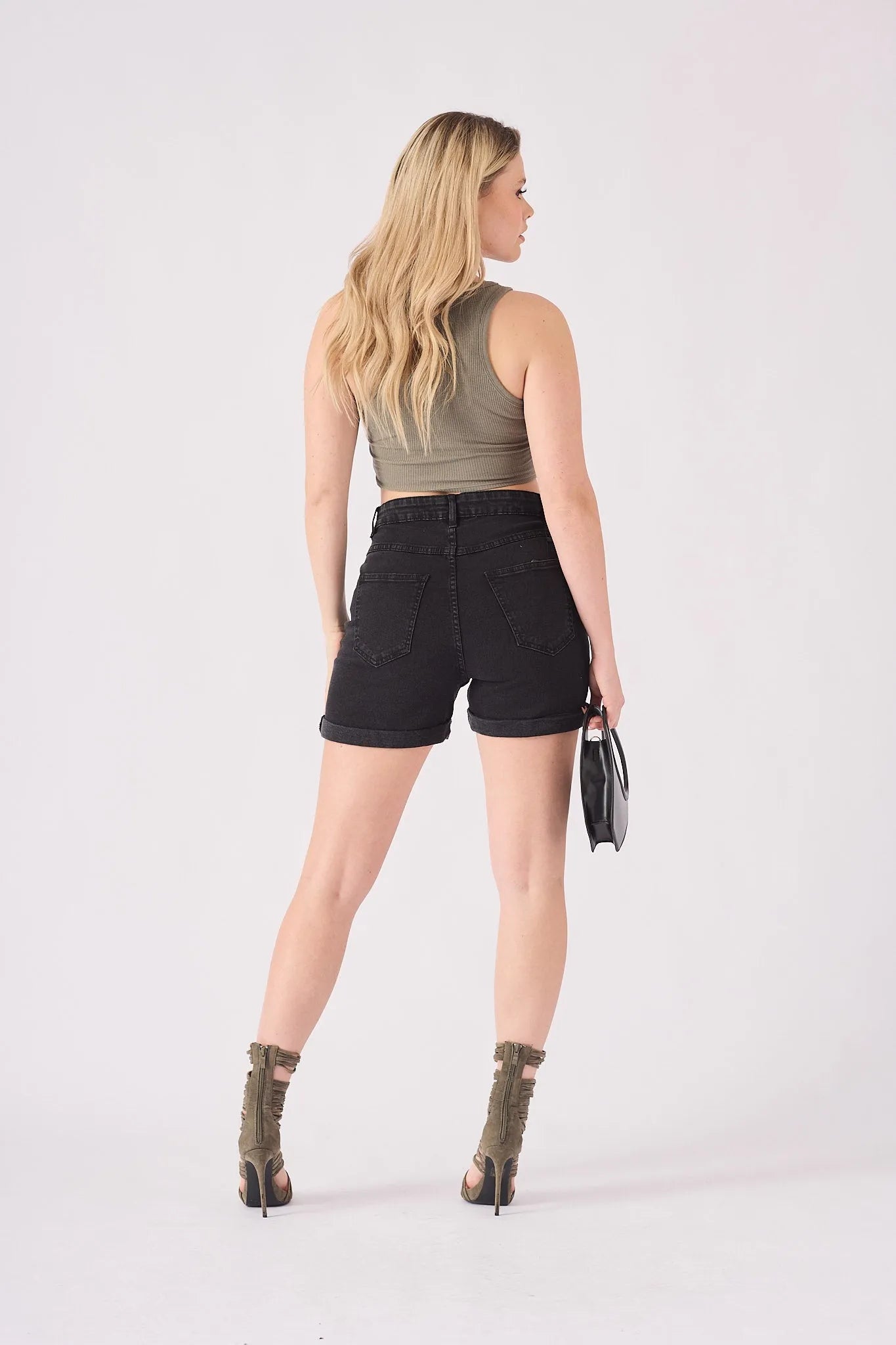 Solvi High Waisted Denim Shorts - Black