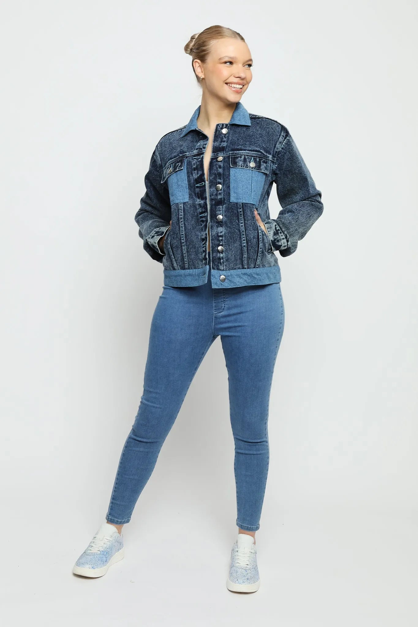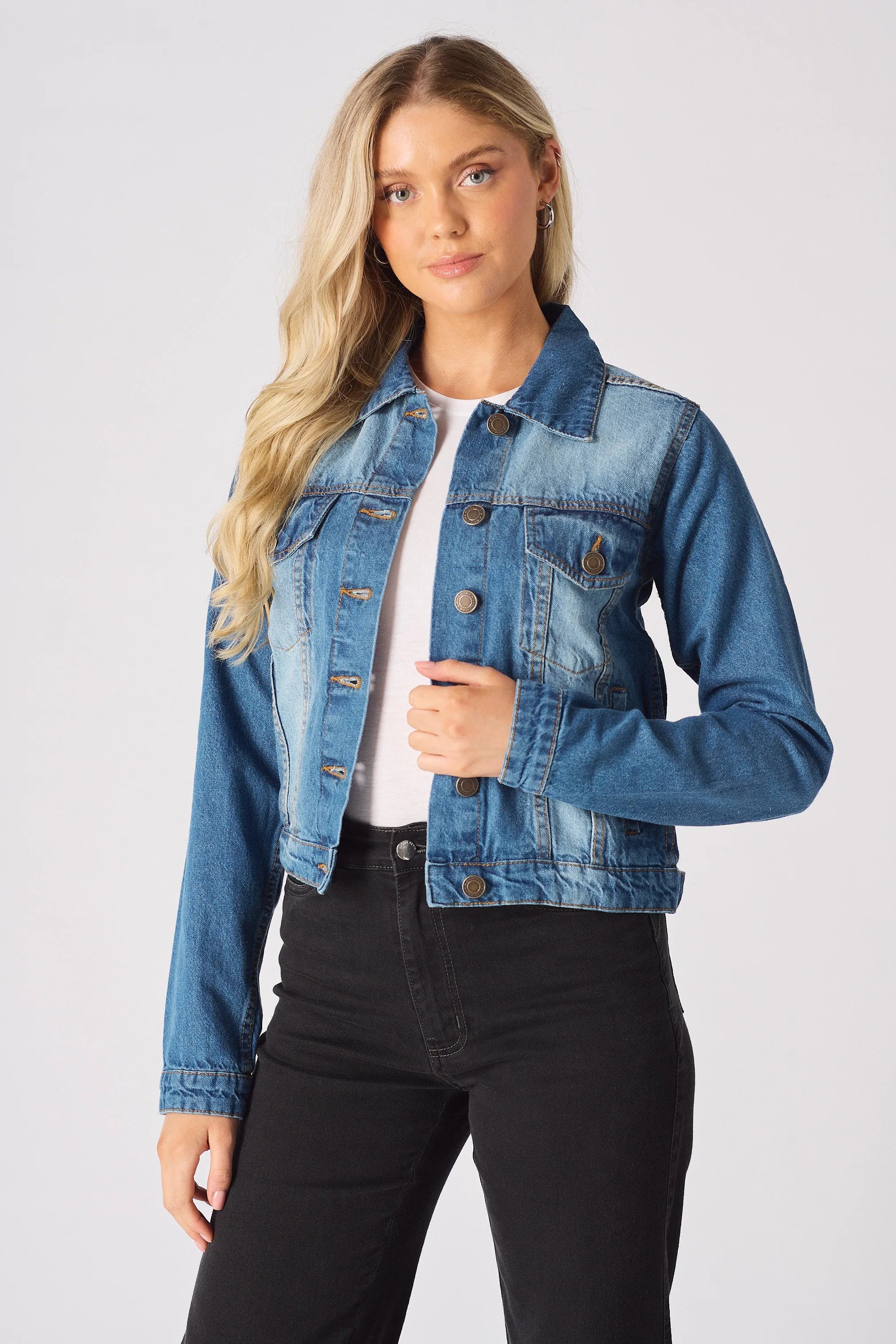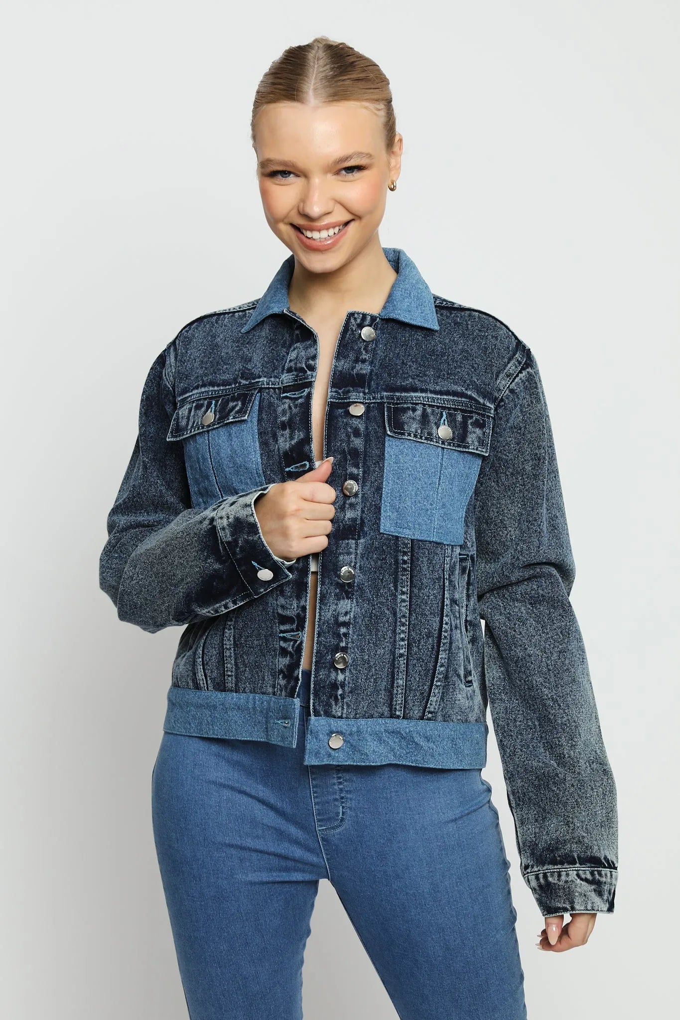Dusk Two-Tone Denim Jacket – Mid Blue Wash