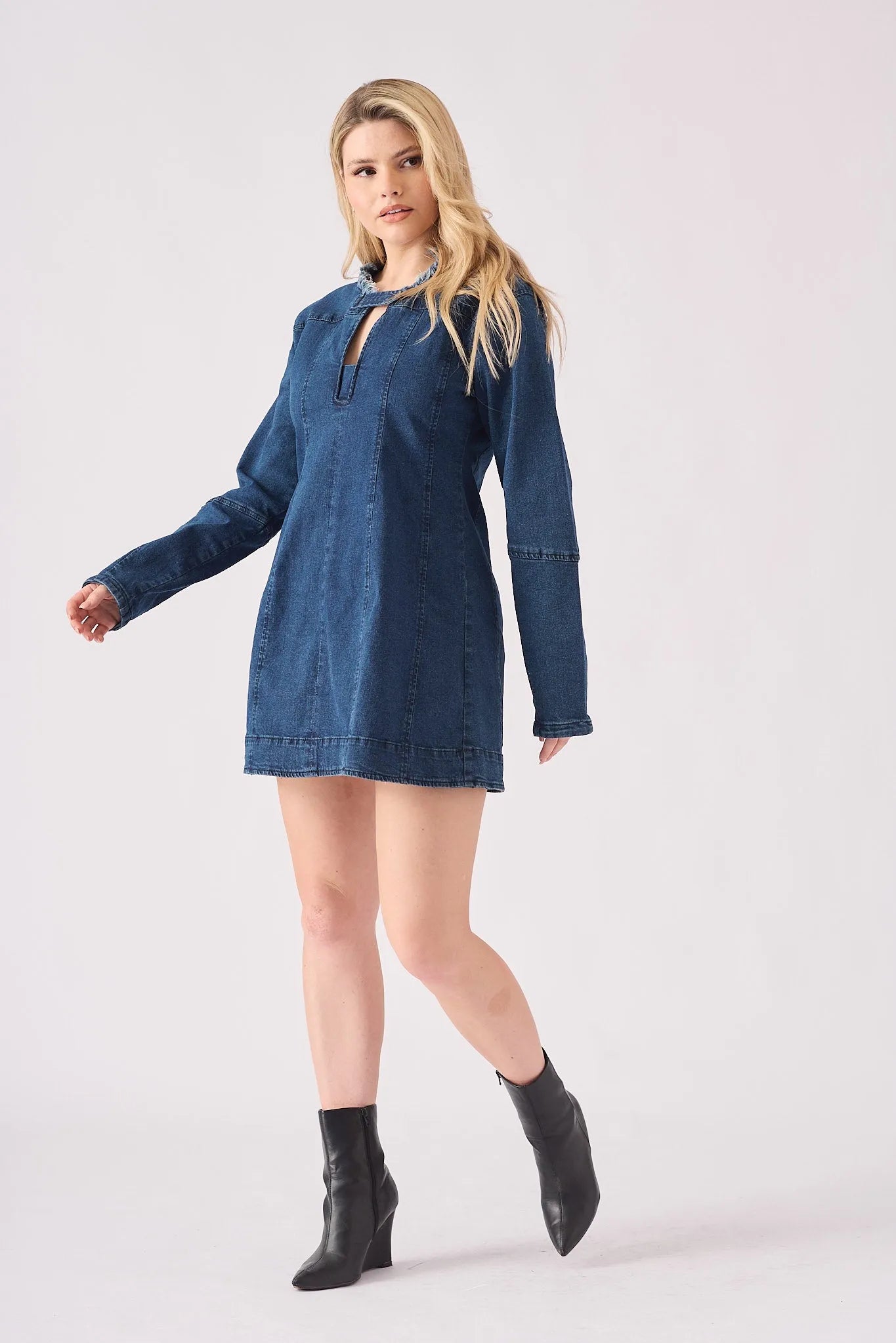 Rhea Denim Tunic Dress - Dark Blue