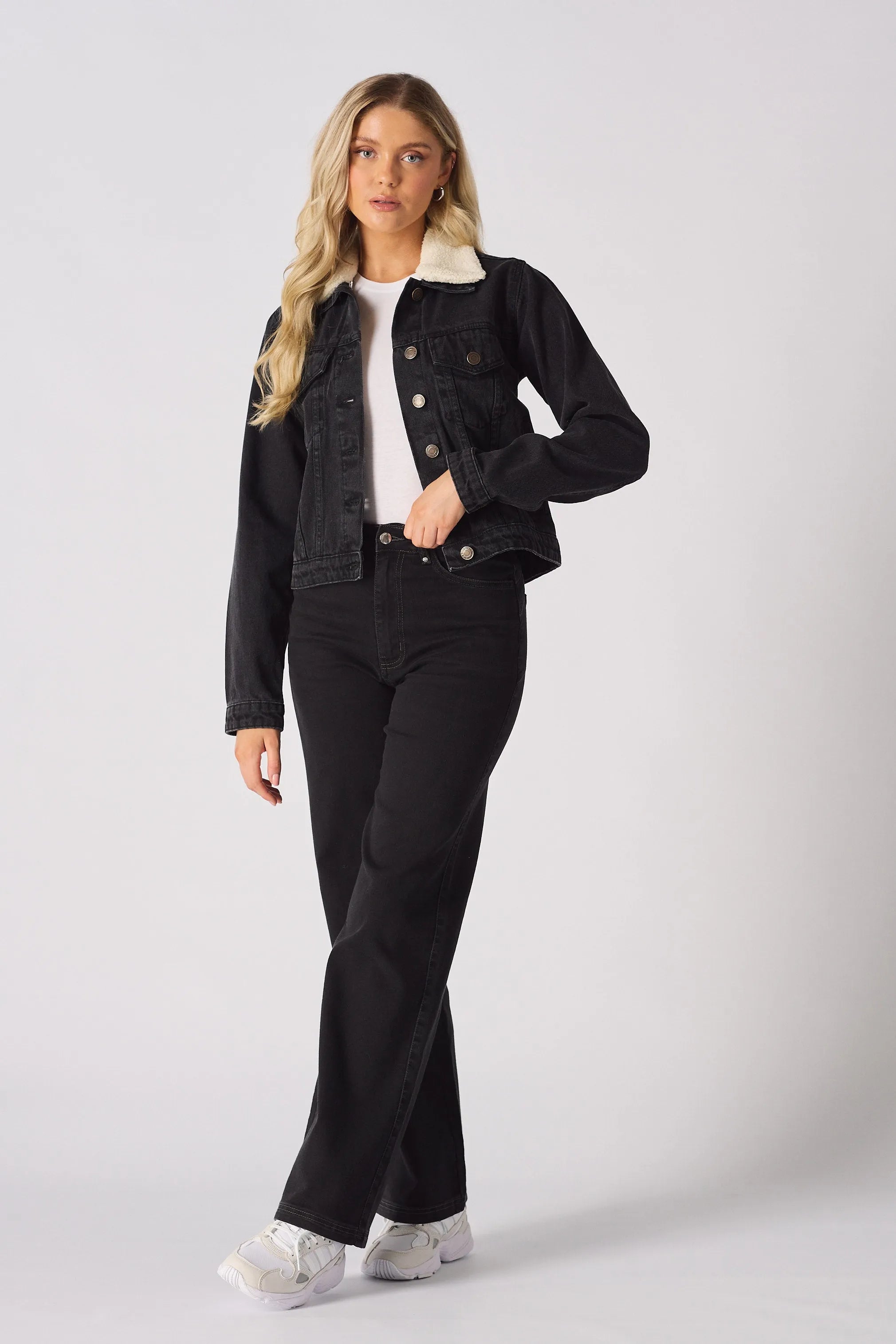 Drift Sherpa Collar Denim Jacket – Black