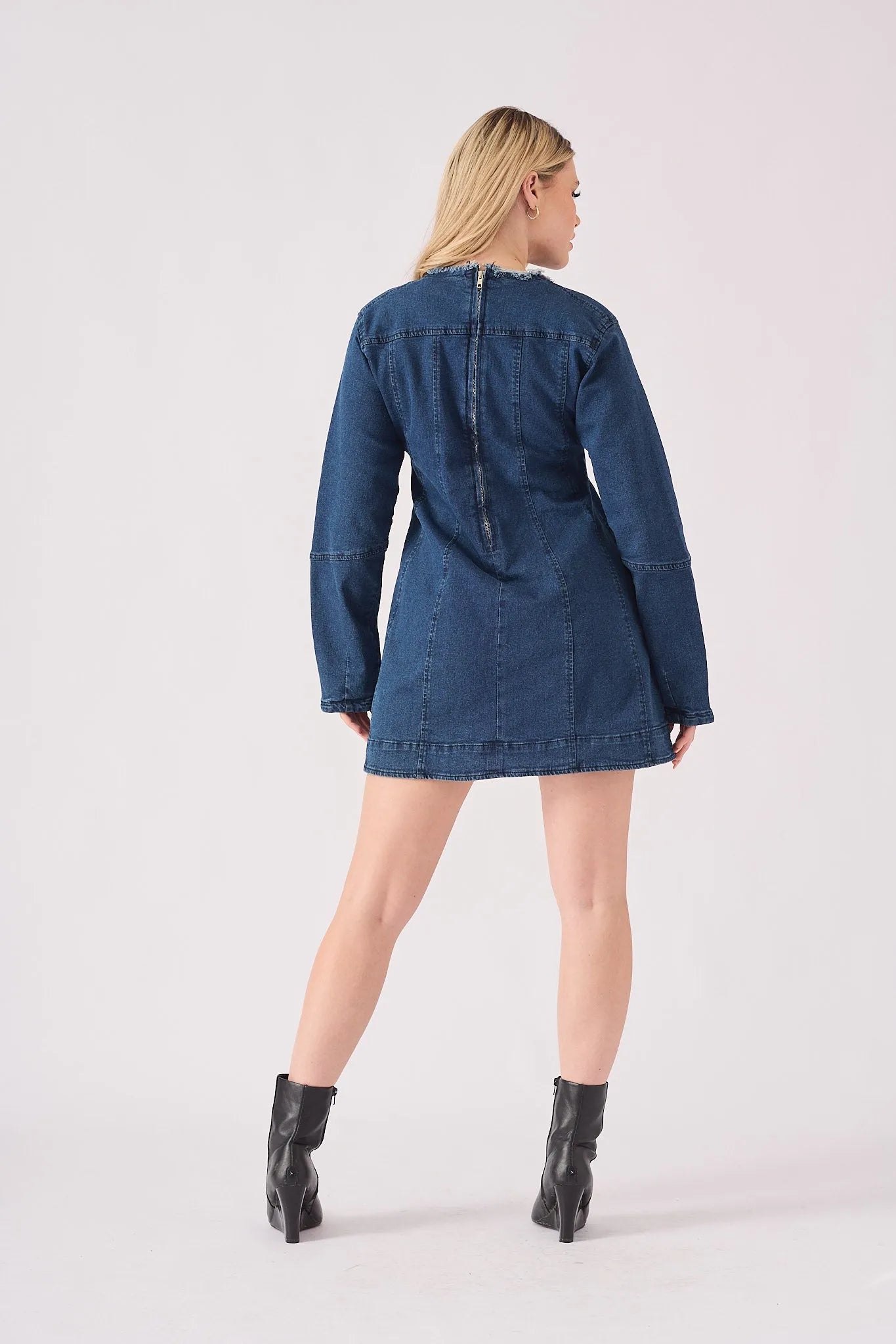 Sage Zip Up Denim Dress - Mid Blue
