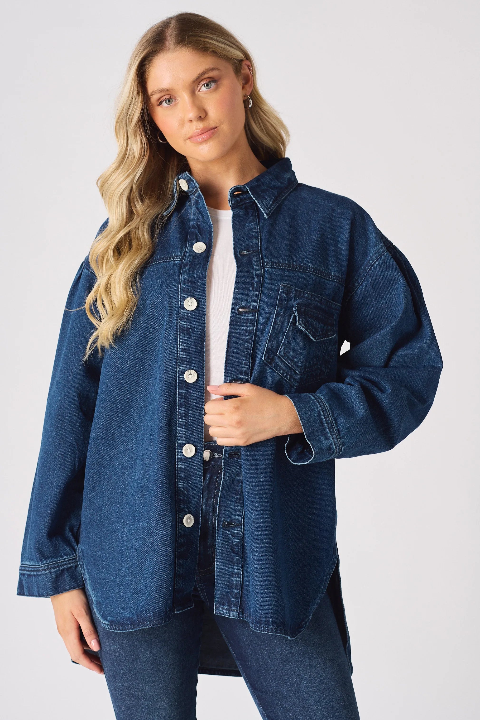 Frost Oversized Dark Blue Denim Shirt - Dark Blue