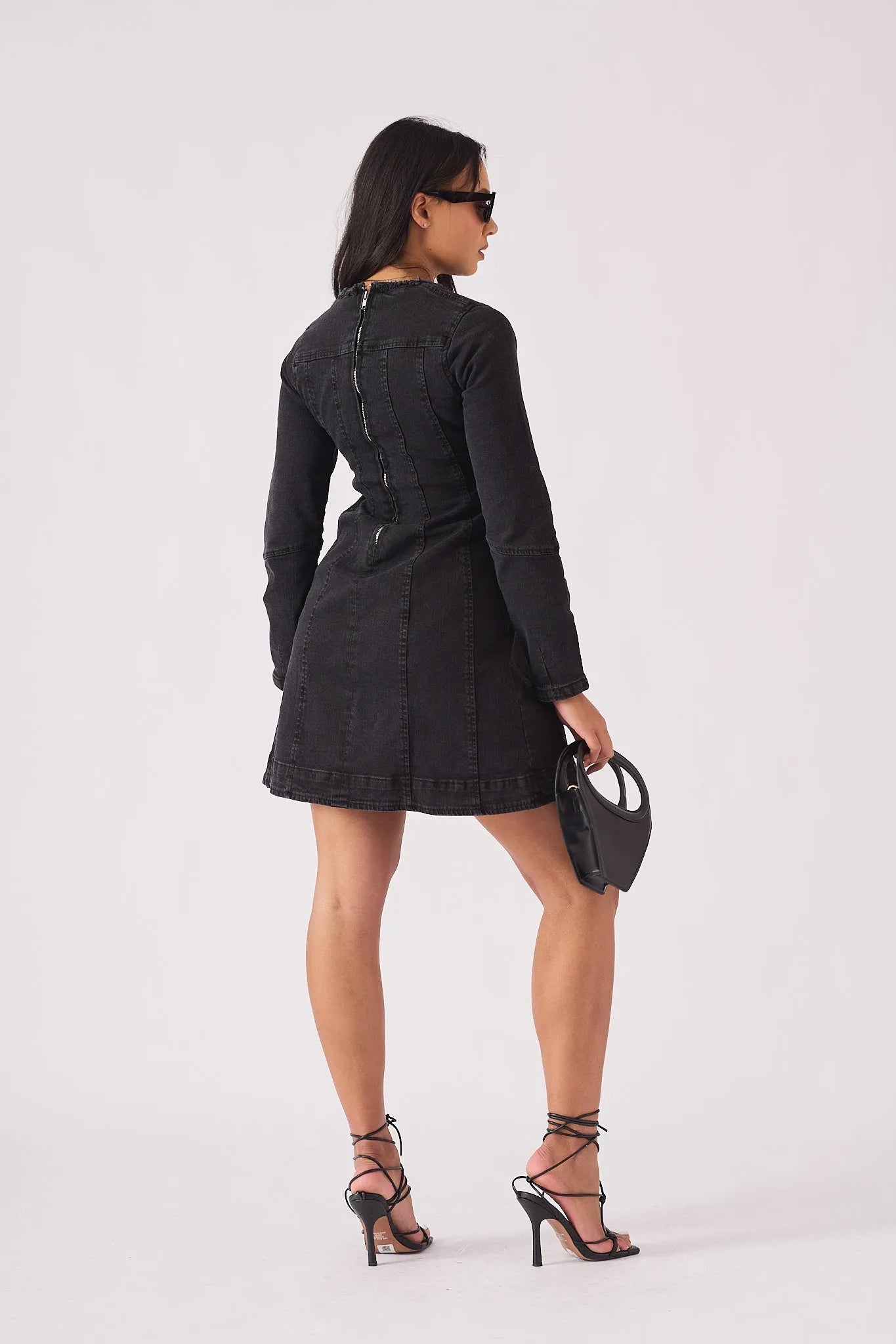 Isla Fit & Flare Denim Dress - Black