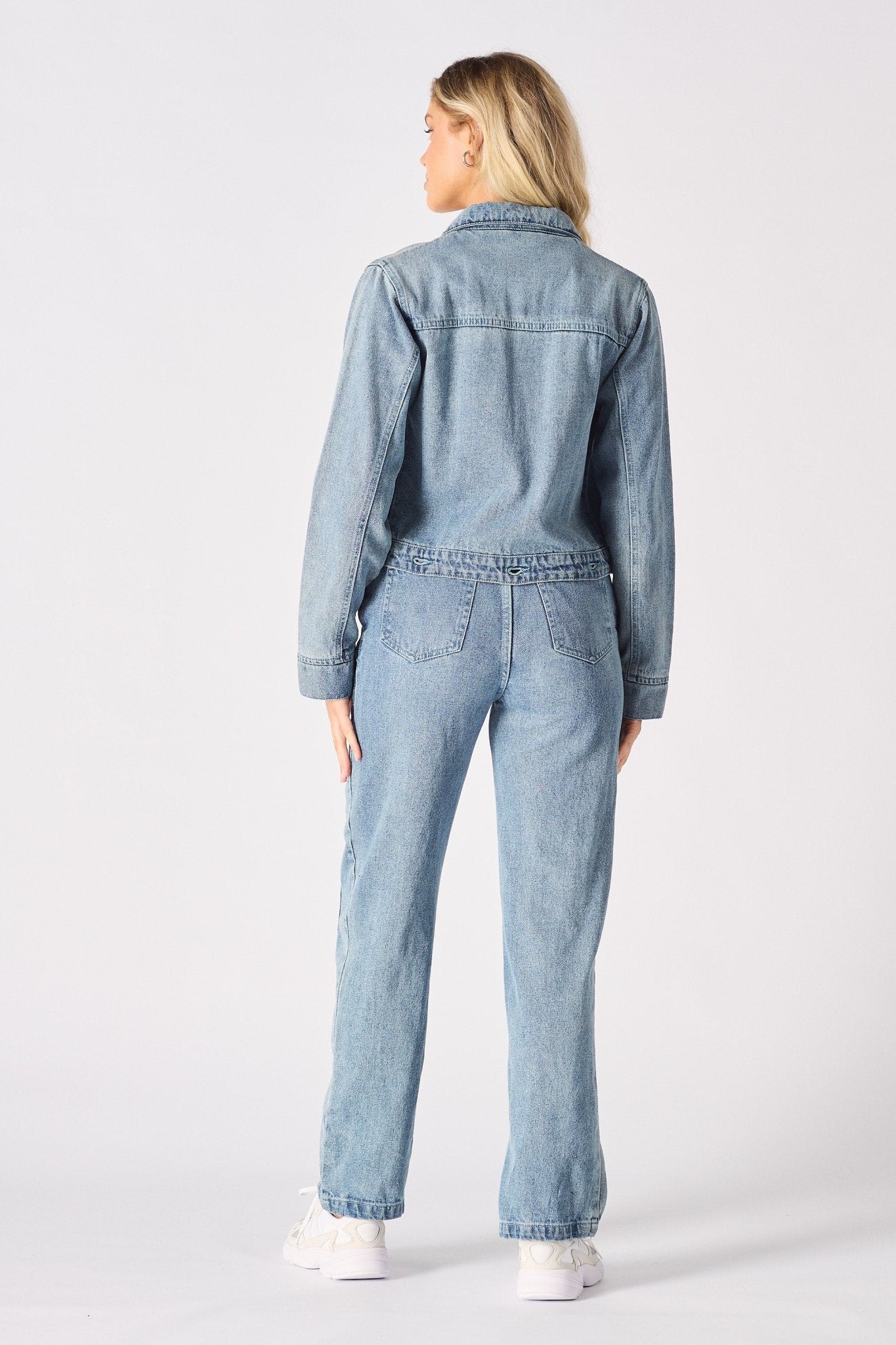 Nola Detachable Denim Jumpsuit - Blue Acid Wash