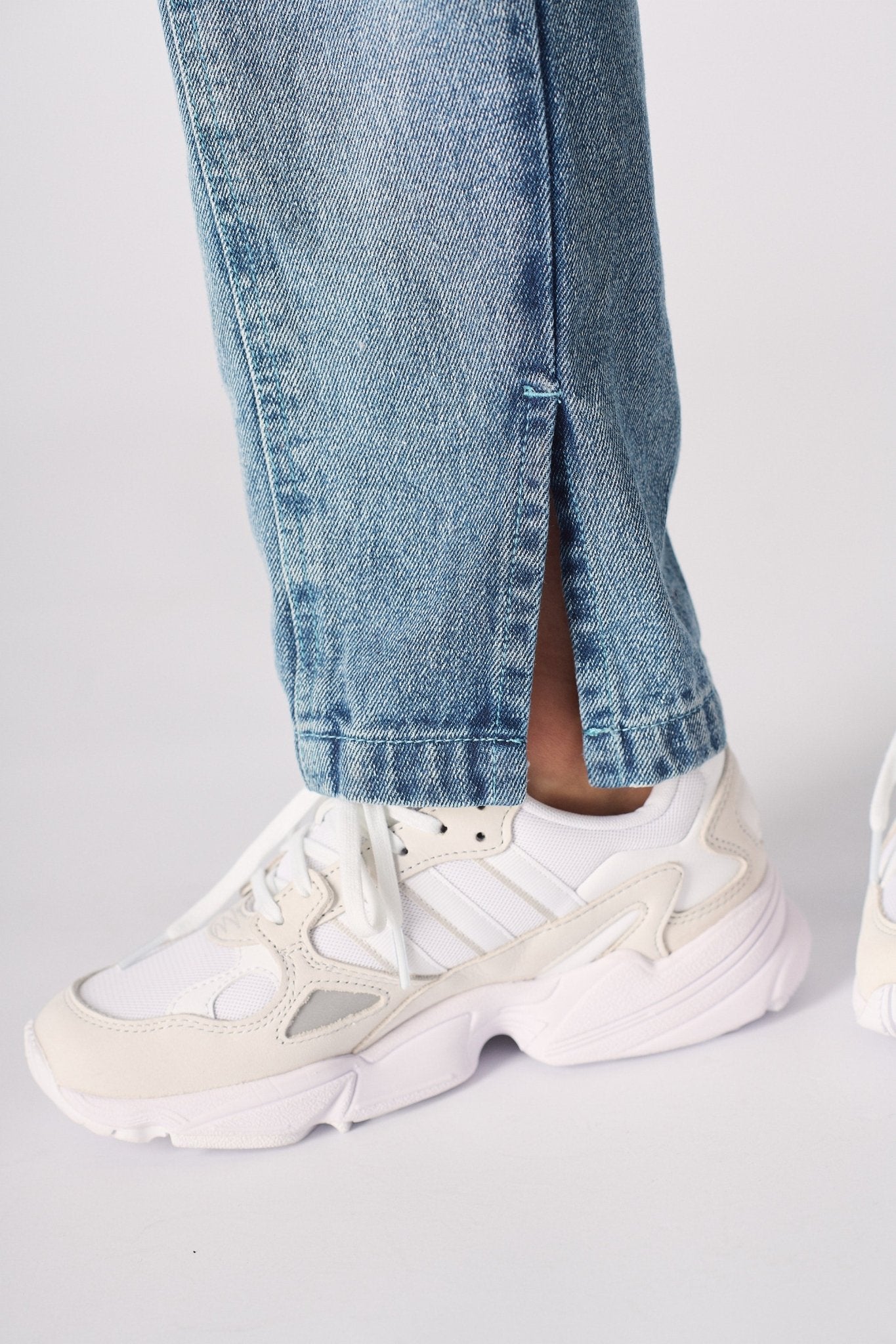 - Set includes a cropped jacket and relaxed-fit mom jeans