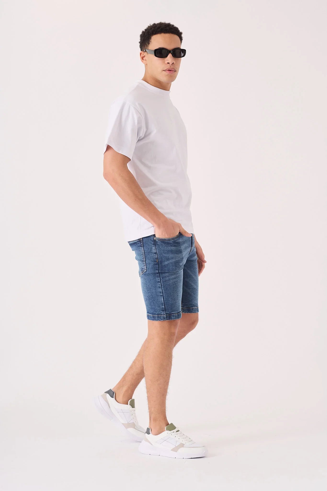 Cut for a skinny fit, these mid-blue jean shorts are a wardrobe essential. Made from stretch denim for comfort and a close fit, they feature a classic five-pocket design and a secure zip fly. Their versatile style makes them easy to pair with your favourite tees and trainers for a casual look.