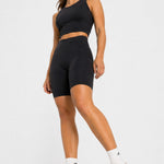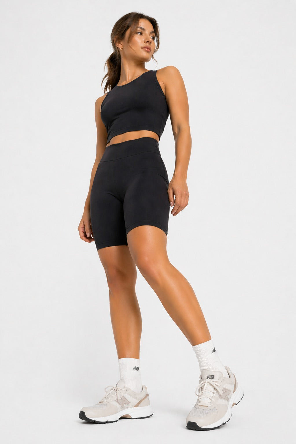 This black racer neck crop top is a versatile piece designed to keep you comfortable whether you are training or taking it easy. It's crafted from a soft, stretchy fabric for a comfortable, fitted silhouette that moves with you. The modern high-neck athleisure style makes it a versatile piece that you can pair with matching leggings or your favourite joggers for an easy, stylish look.