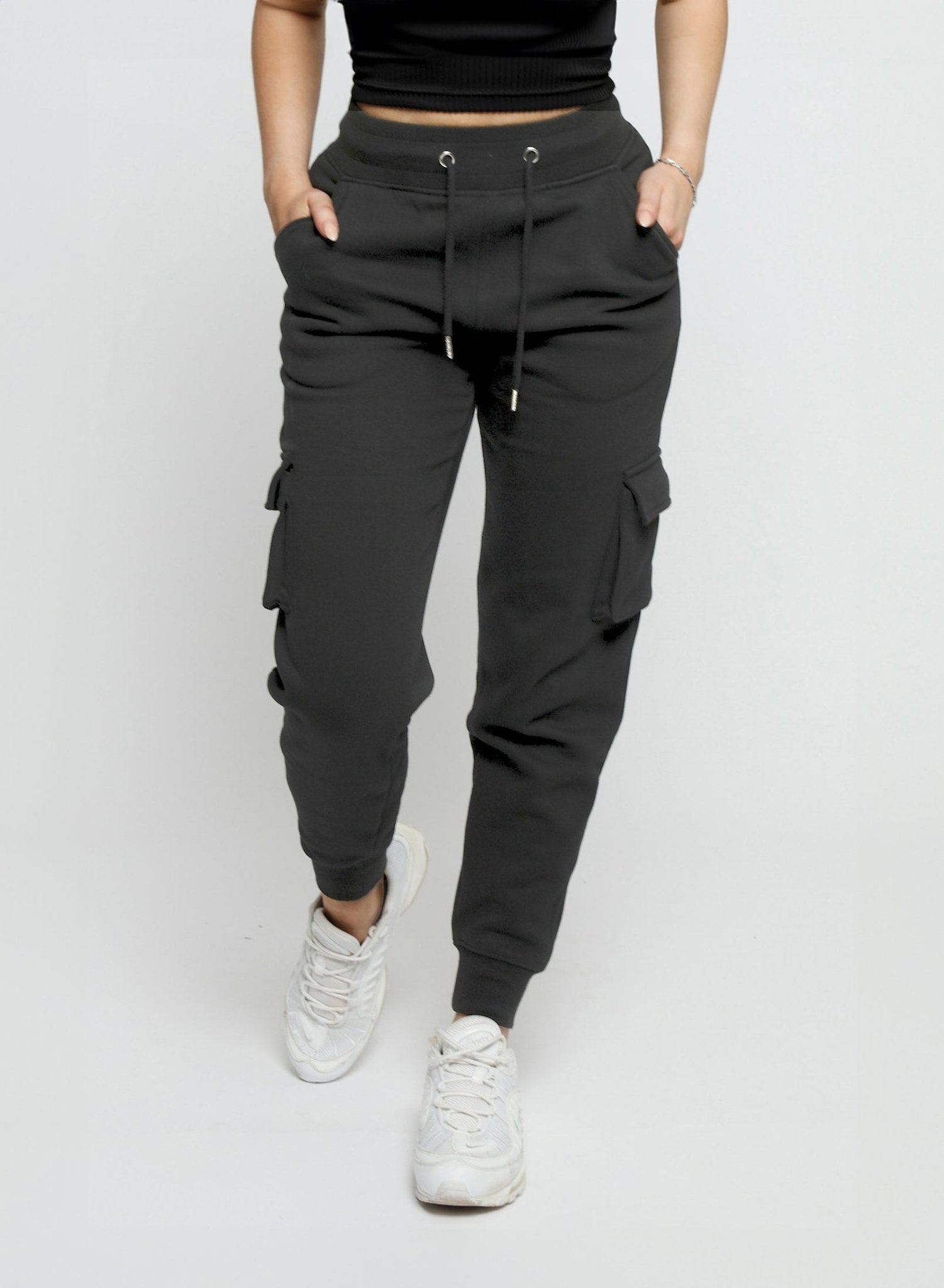 Refresh your wardrobe with these Jmojo black utility joggers womens, offering the perfect blend of comfort and modern style. Crafted from a soft cotton blend, they feature a relaxed tapered fit with an adjustable drawstring waist. The practical cargo pockets add a stylish, functional finish to these everyday essentials.