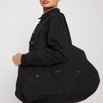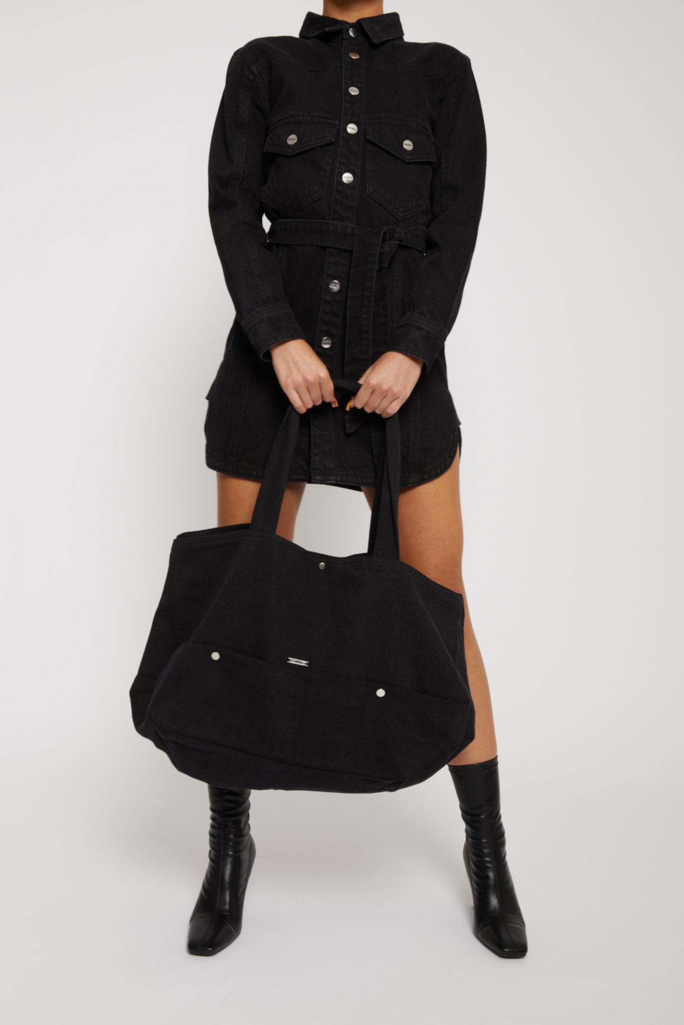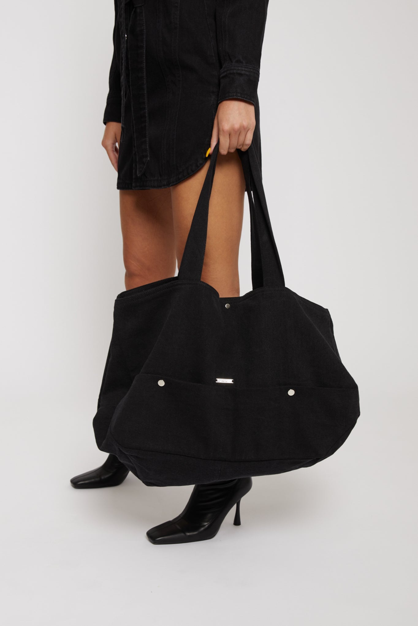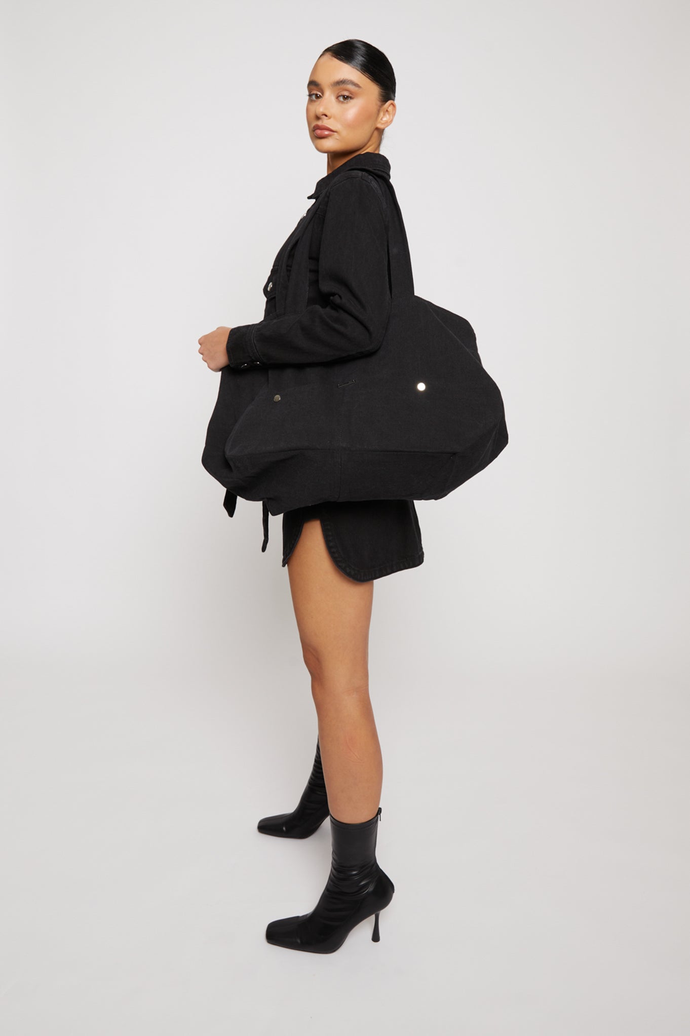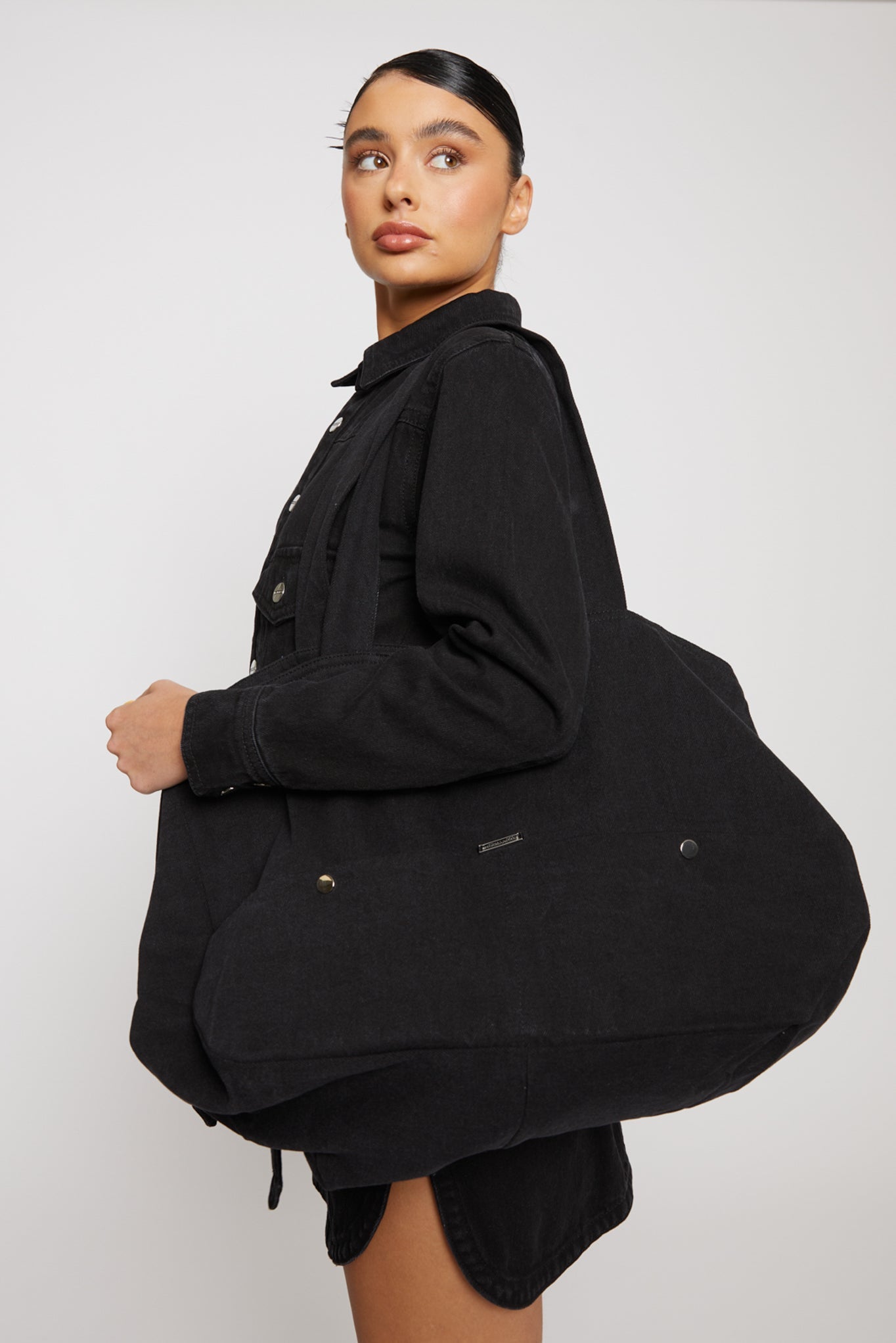 This black wash tote bag is the perfect way to add a little extra something to your outfit. Made from premium denim fabric, it's perfect for those off-duty days. The silver popper opening and expander to the side of each bag means you can easily grab your essentials and go.
