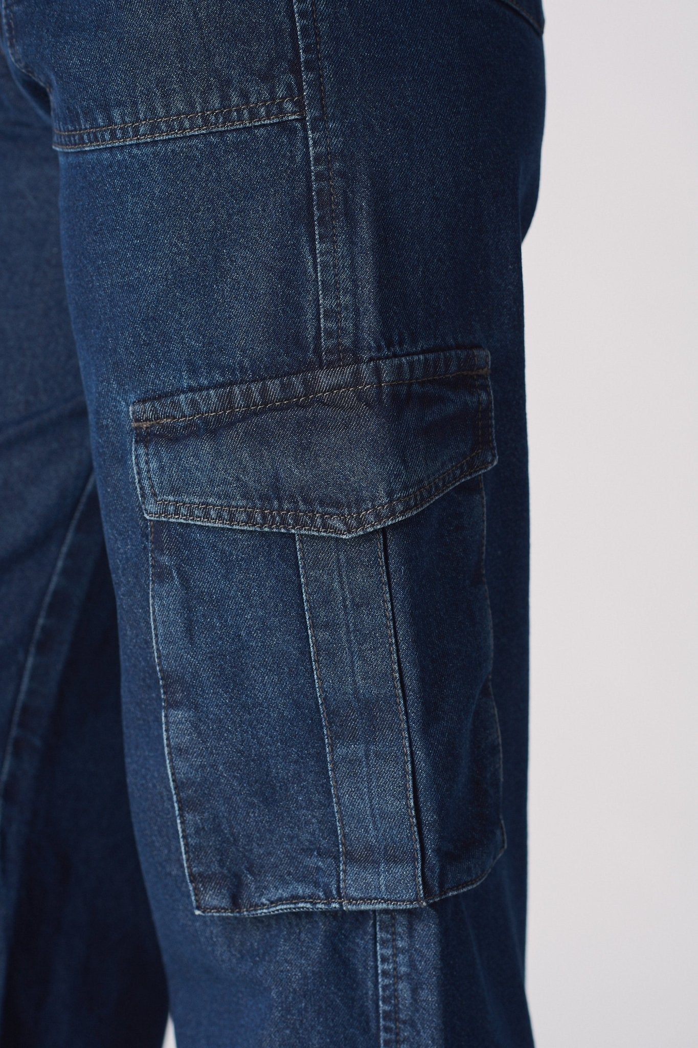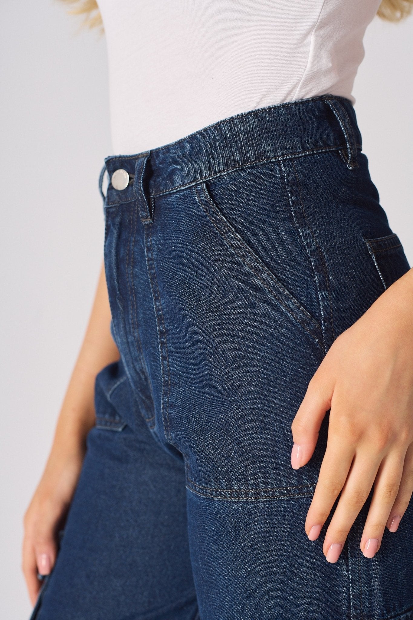 Luxzi High Waisted Wide Leg Cargo Jeans - Blue