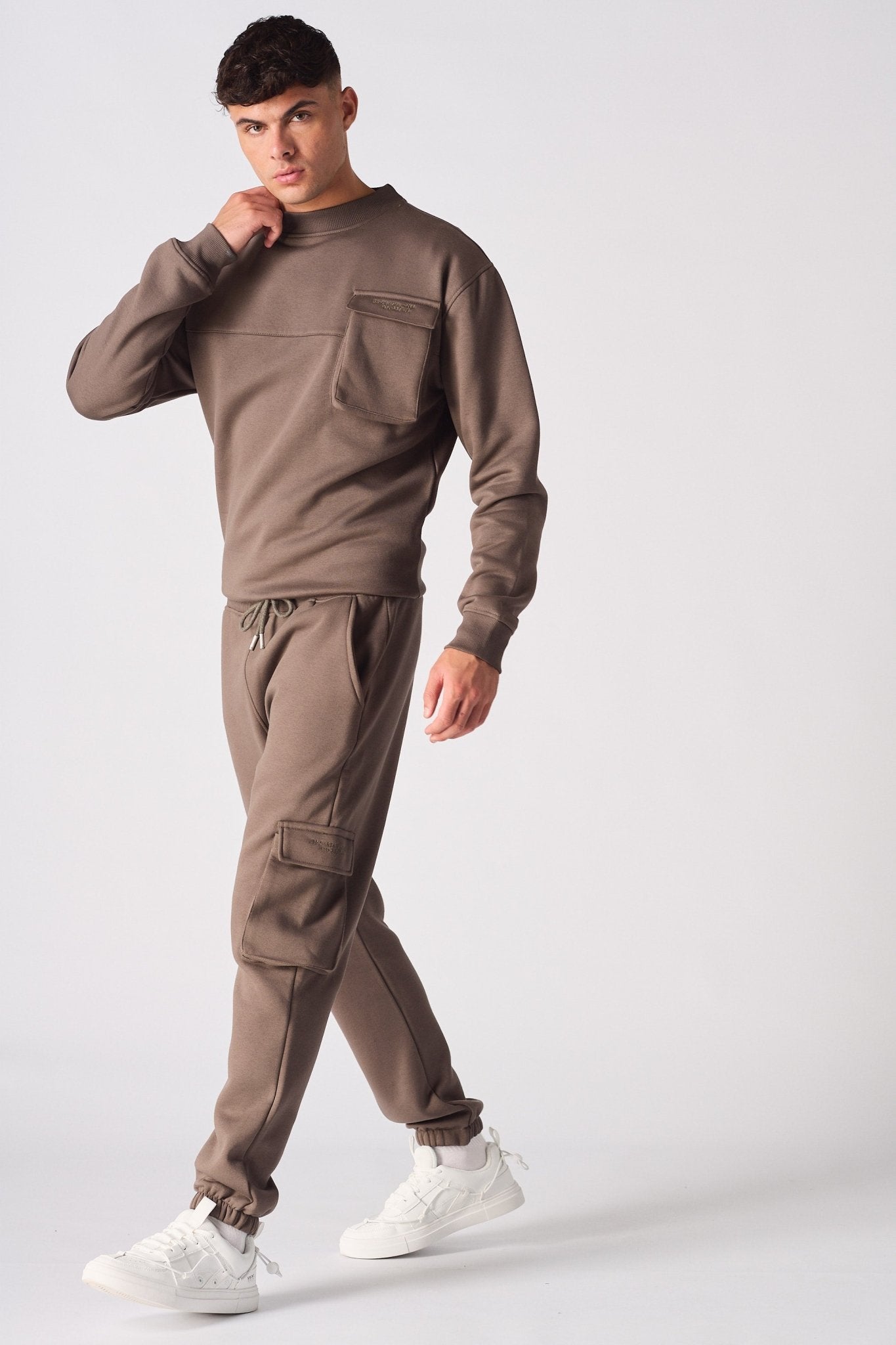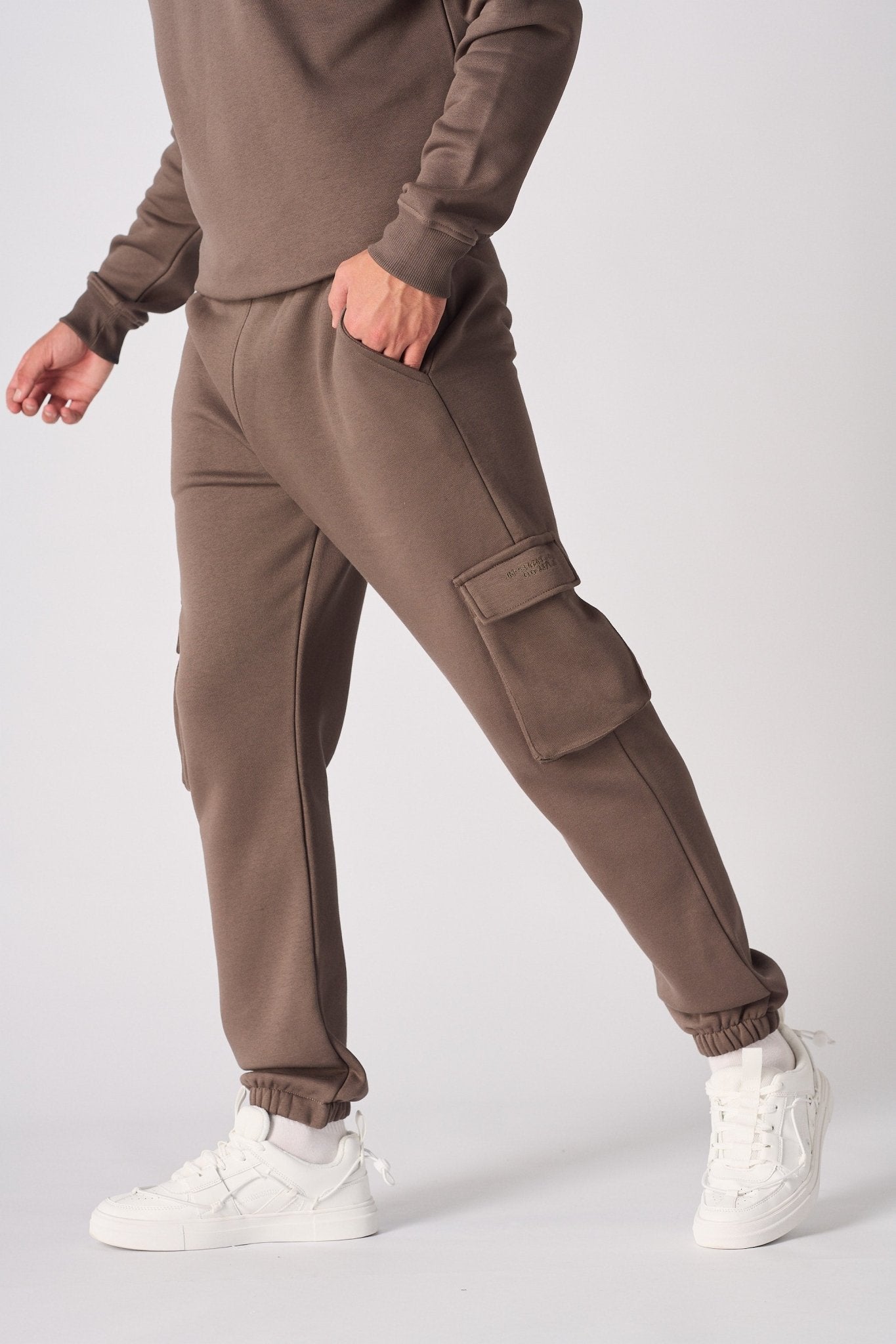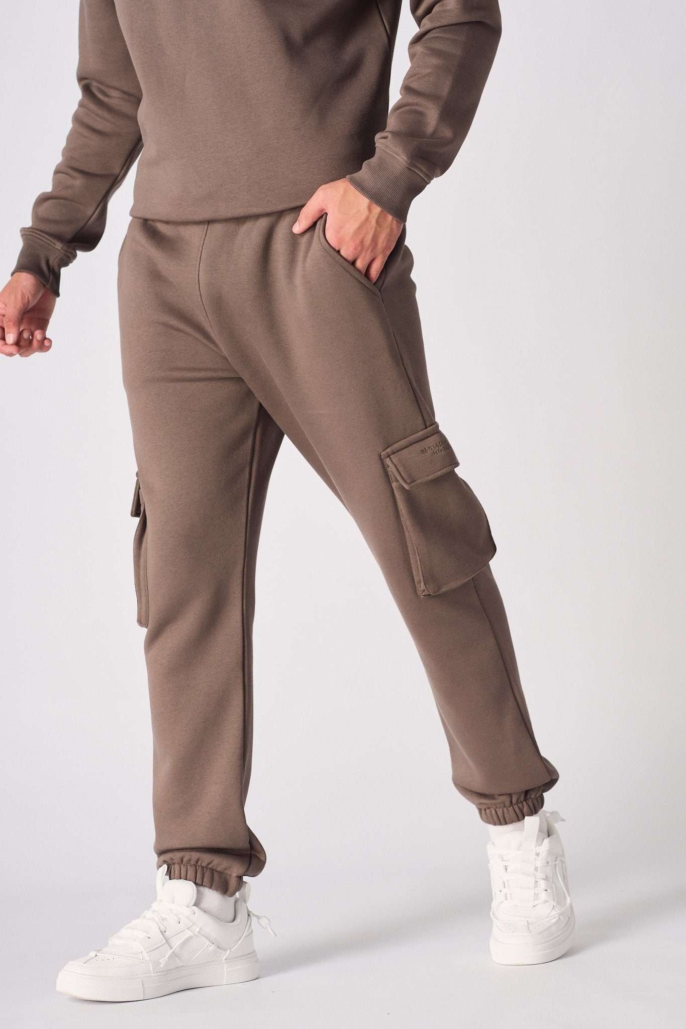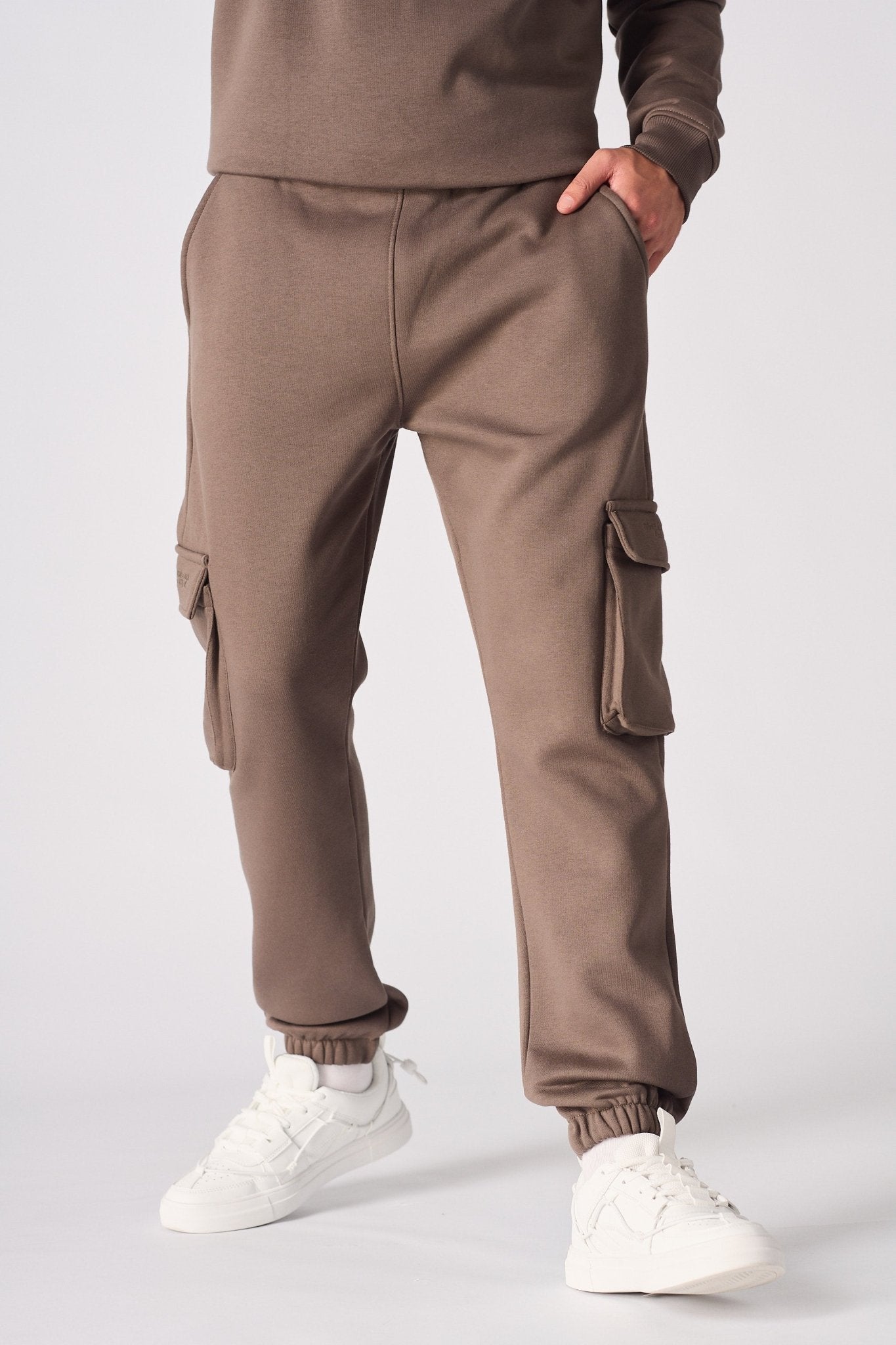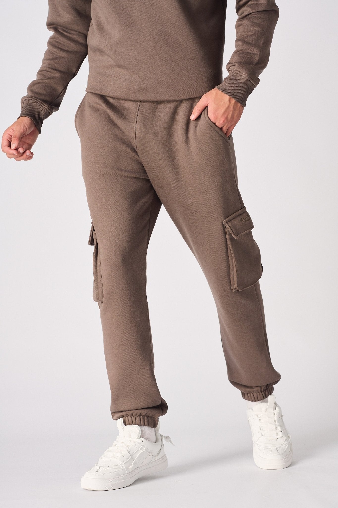 Modern utility meets essential comfort. Crafted from soft-touch, cotton-blend fleece in a versatile brown. Engineered with large cargo pockets for a functional, style-driven look and finished with a subtle embroidered detail.