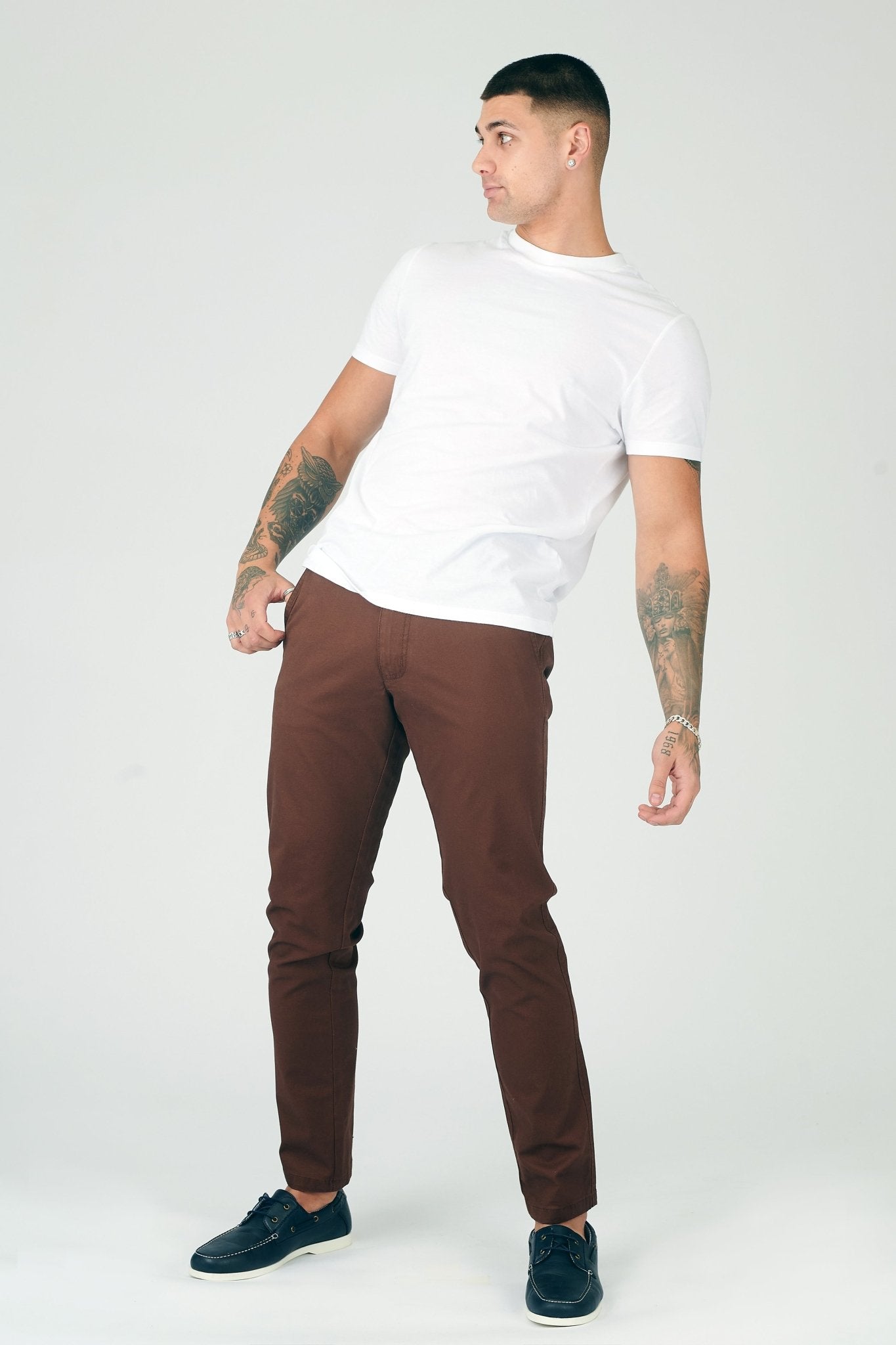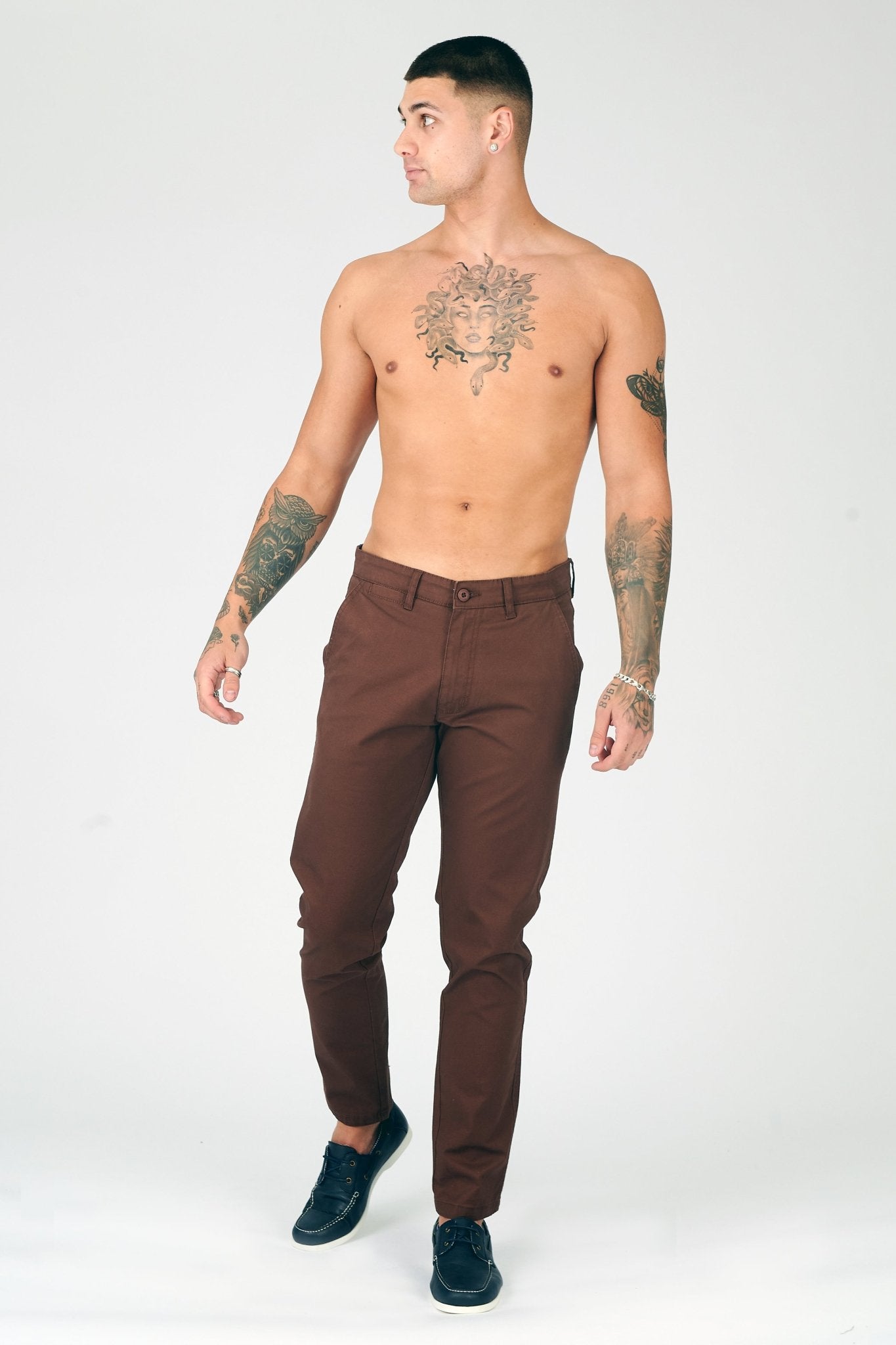 Zoom COLBORNE Stretch Slim Fit Chino Pants - Chocolate Brown - JMOJO - Men's Chino Trousers