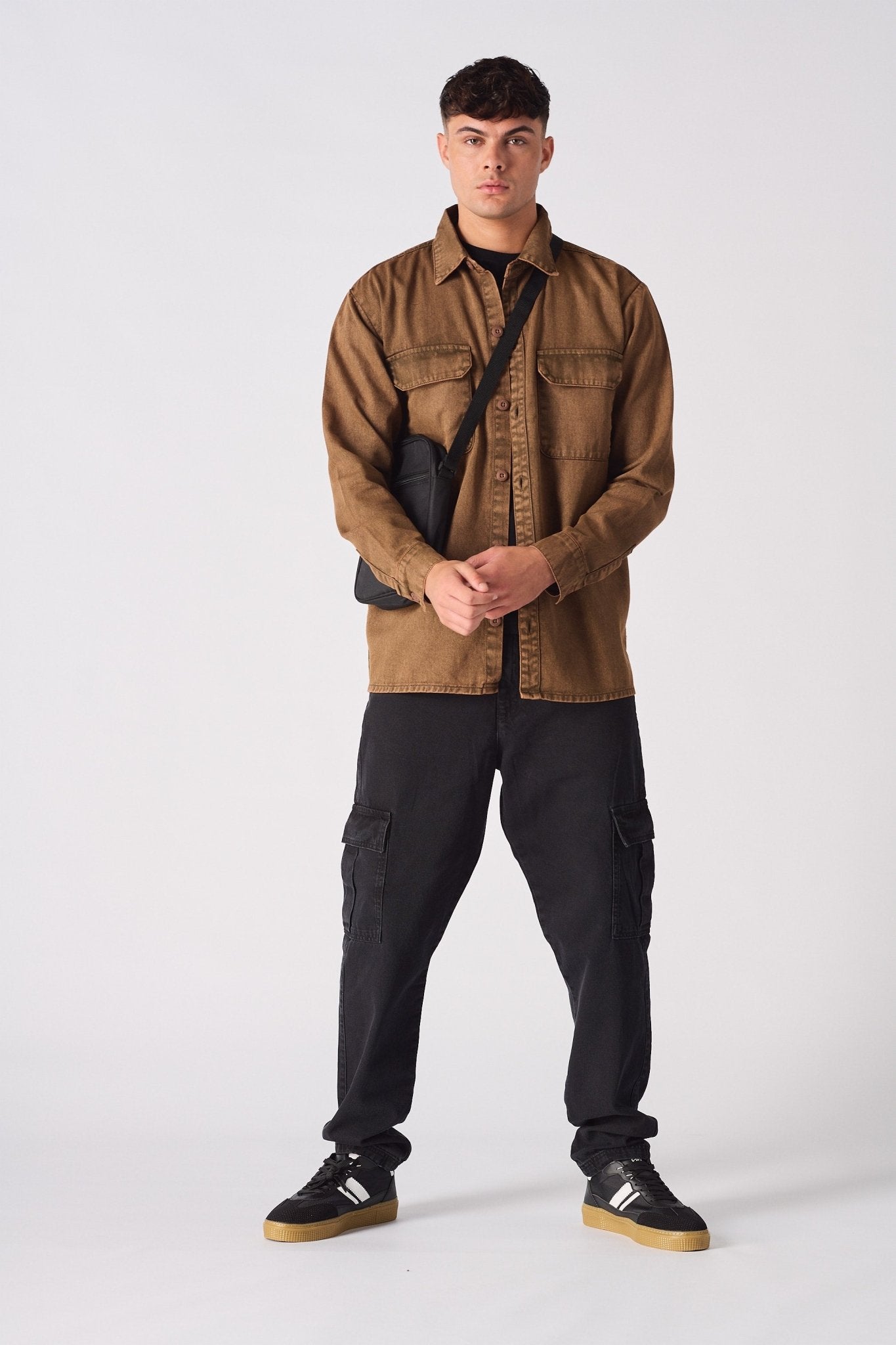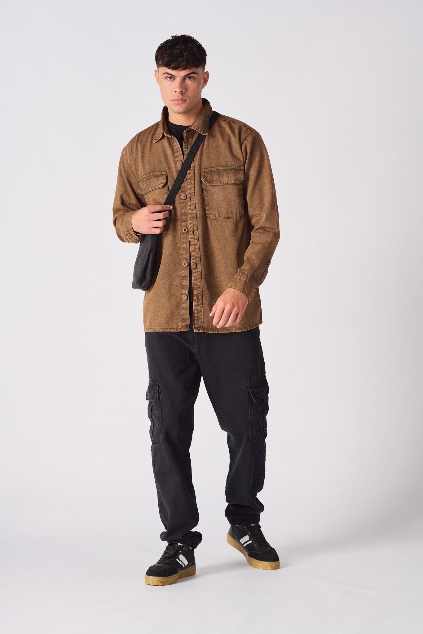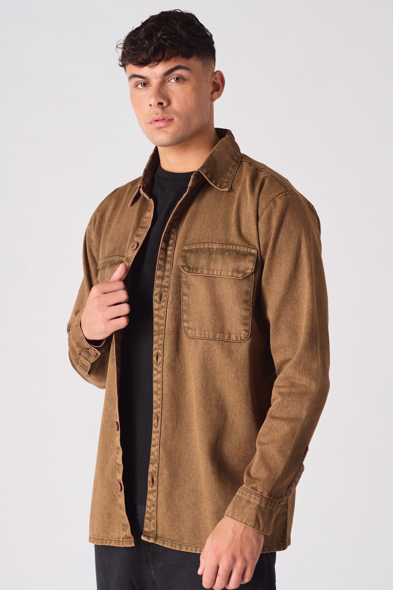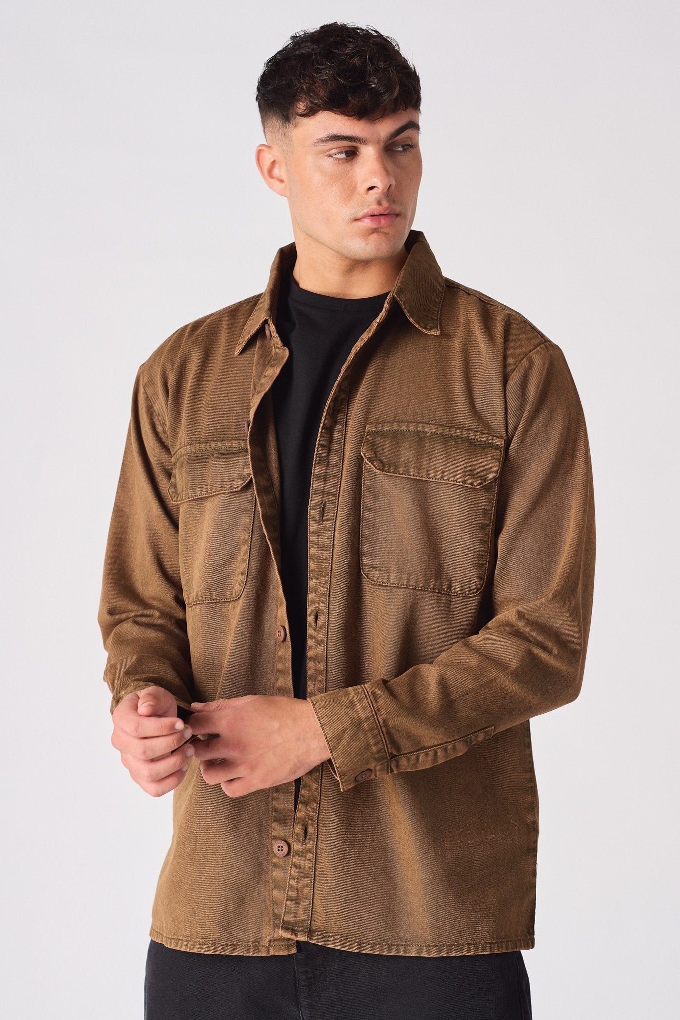 I have to give a shoutout for the brown acid wash denim cargo overshirt. It's a game-changer! The brown acid wash adds a warm, vintage vibe, and the cargo pockets are so functional. It's become my new favorite for a laid-back, cool look.