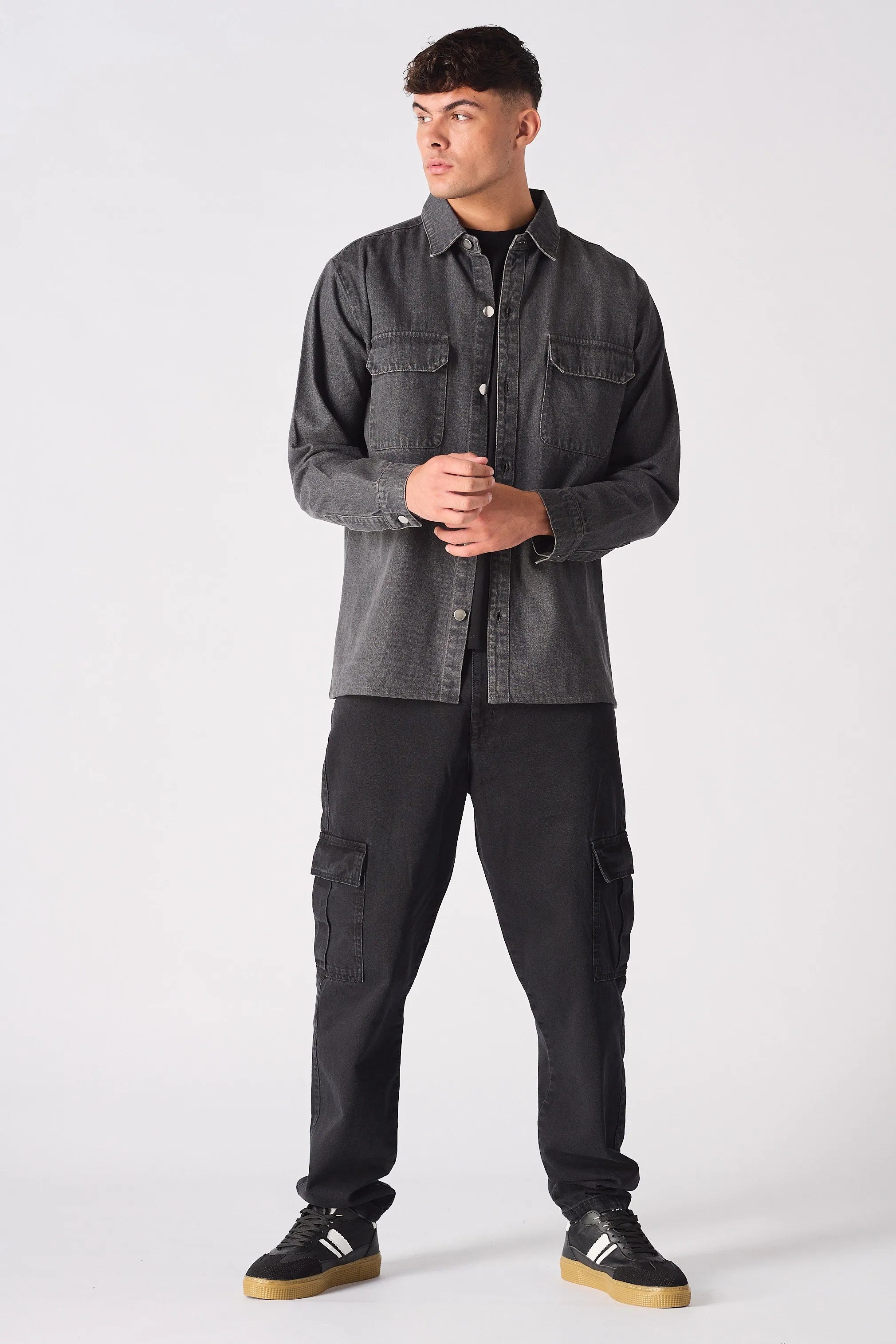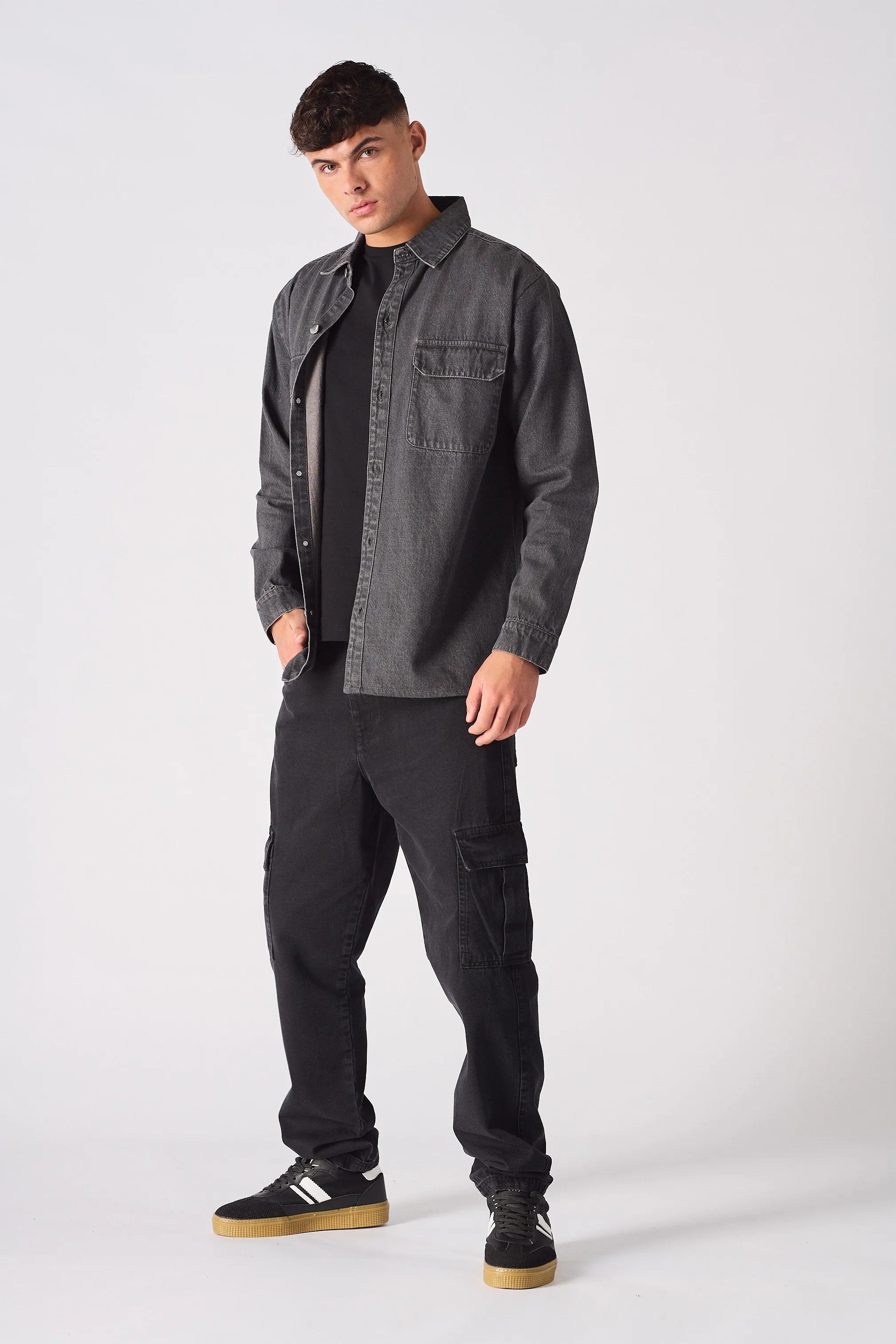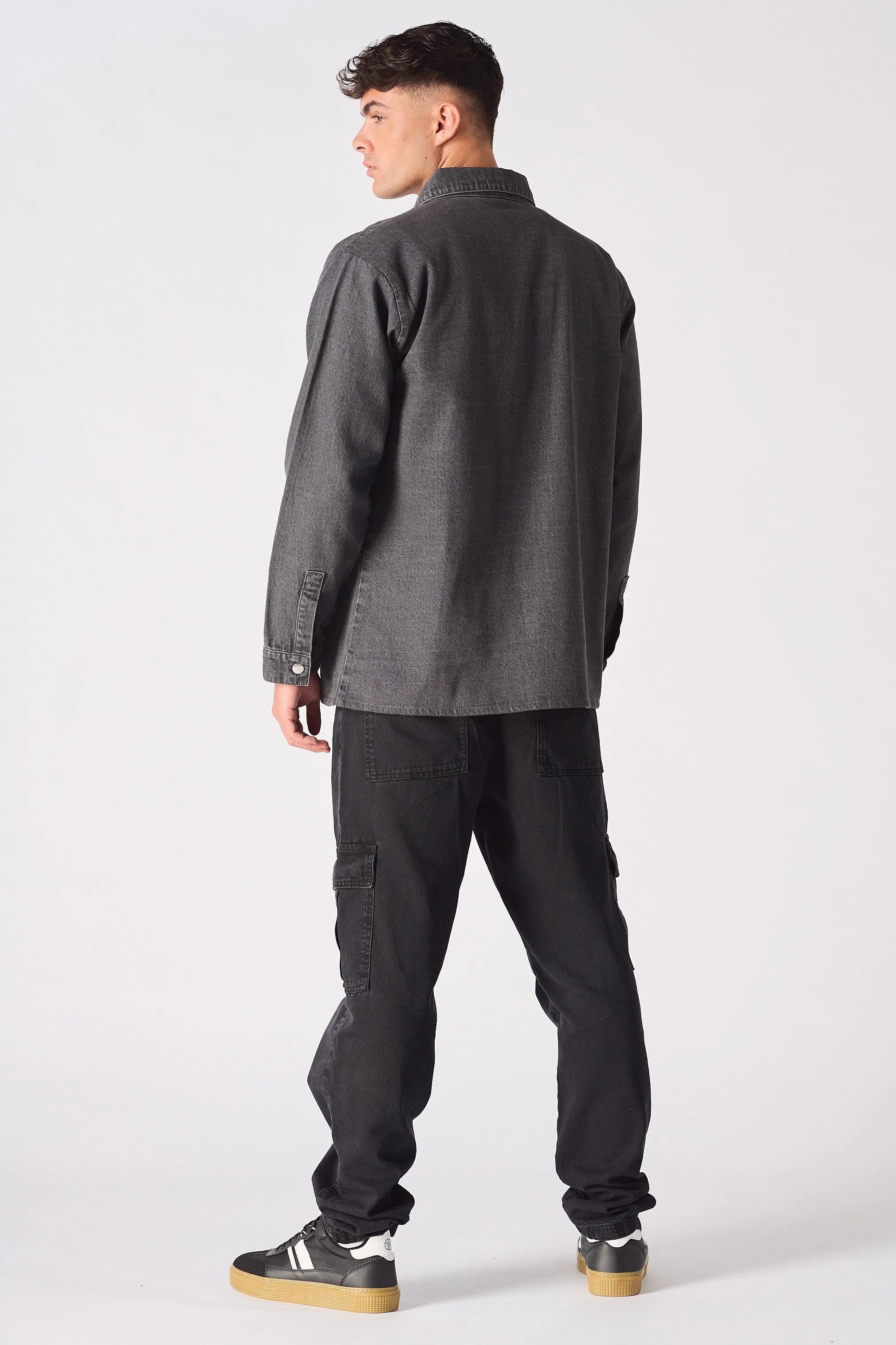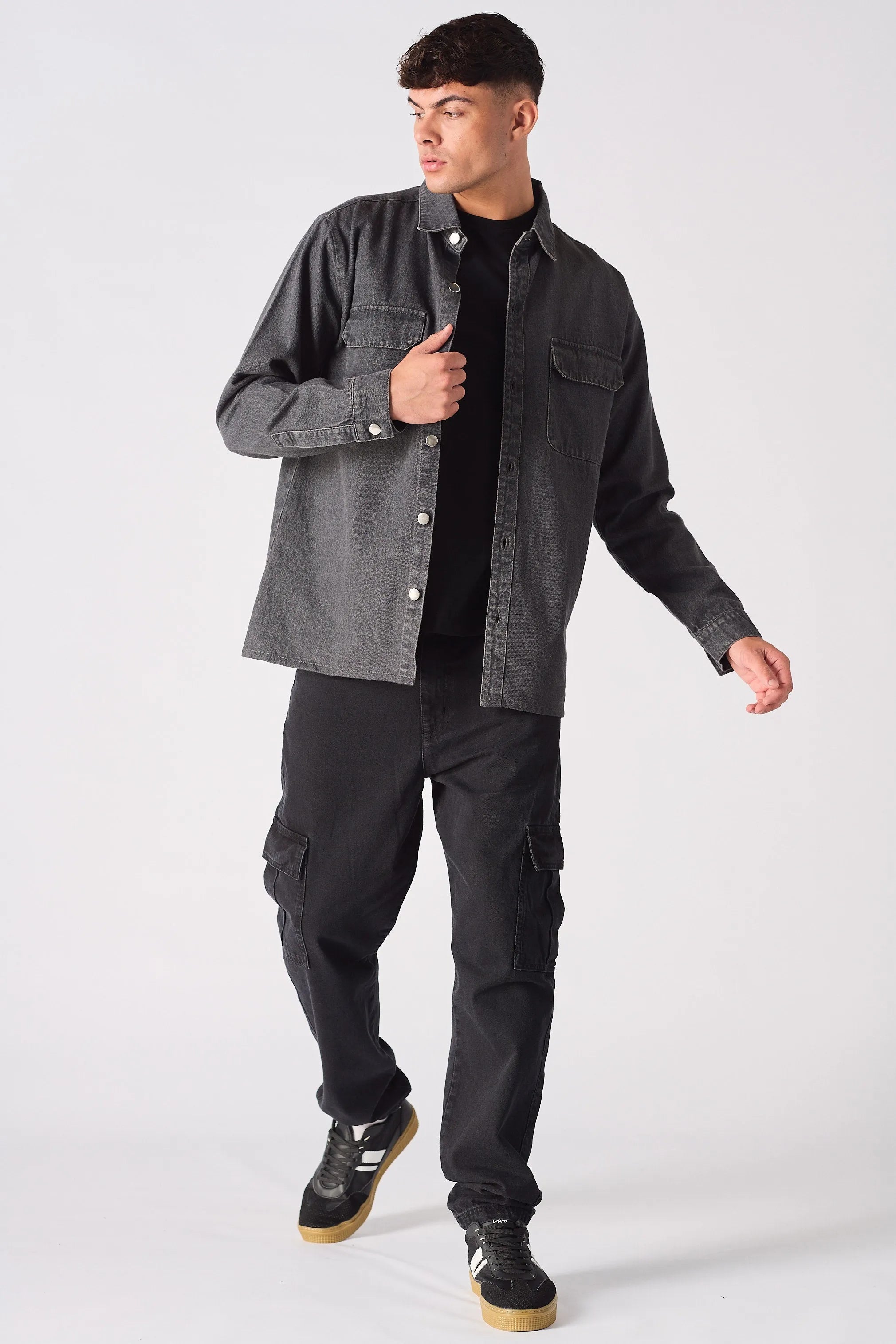 Ashfield CARGO DENIM SHIRT - GREY ACID WASH