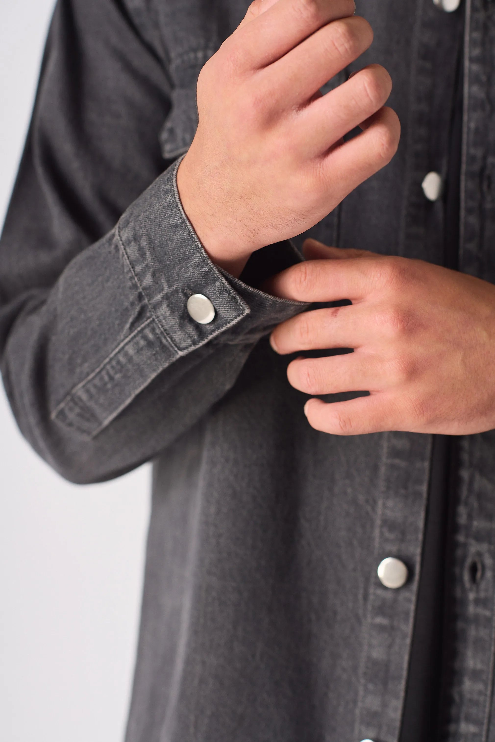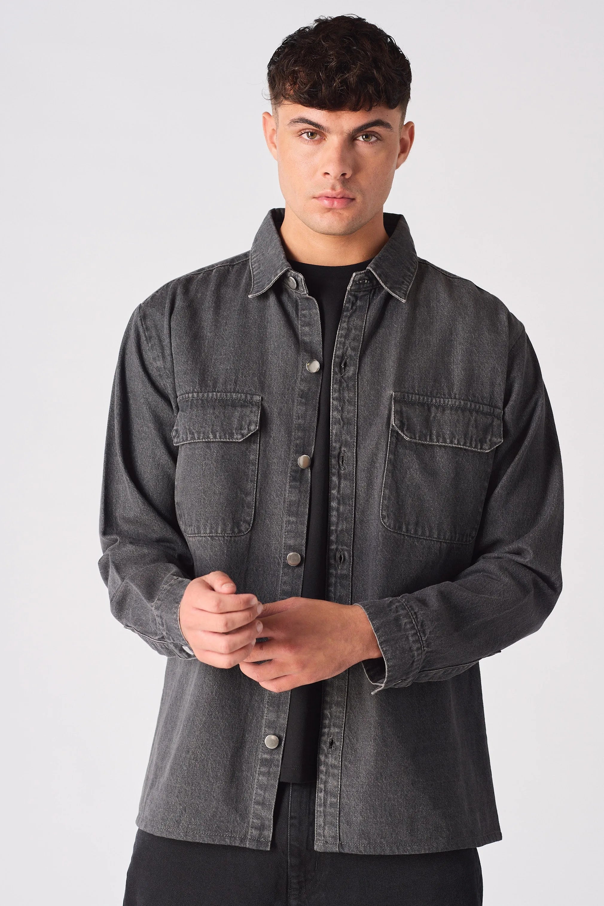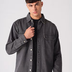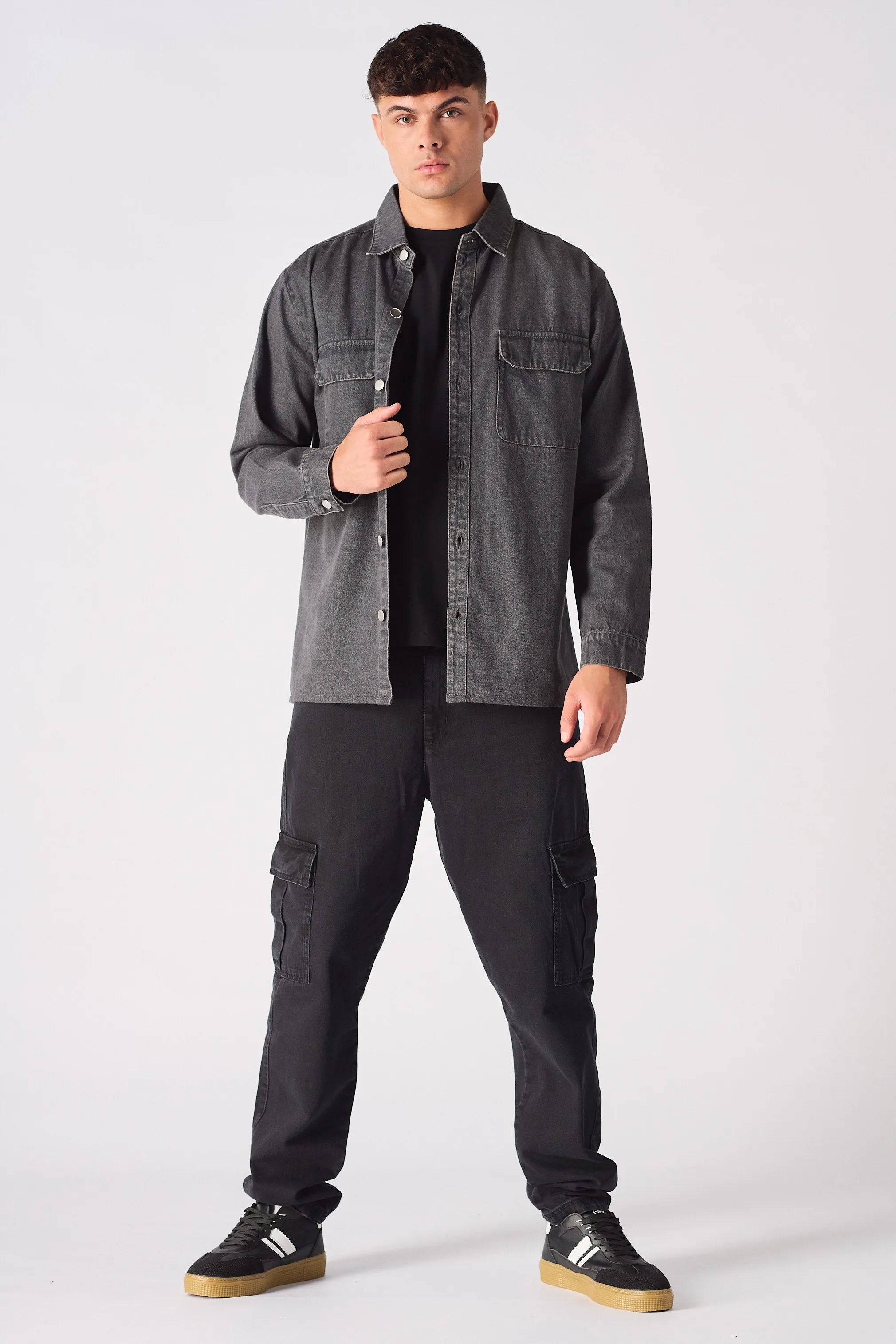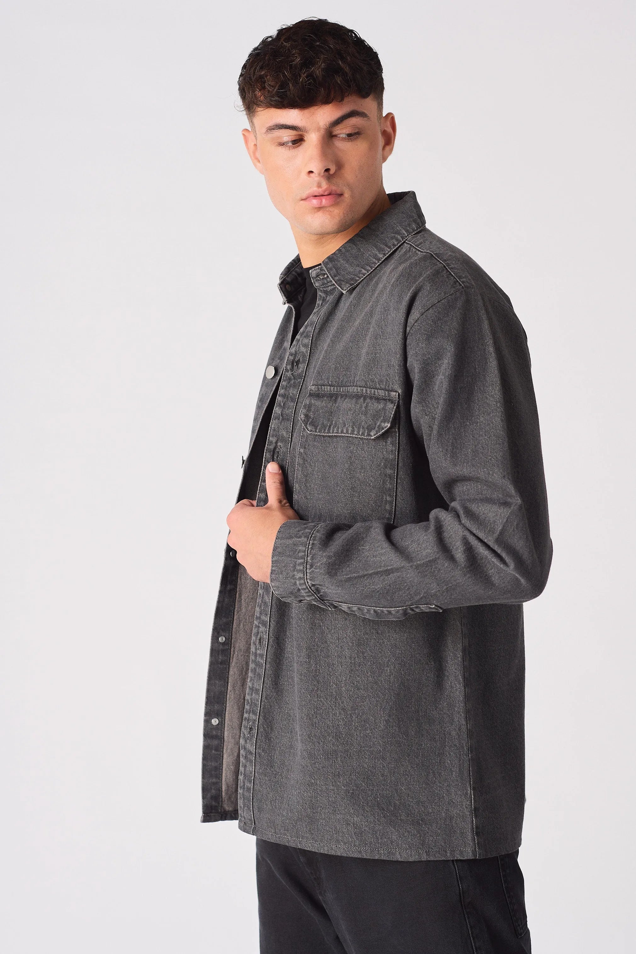 Ashfield CARGO DENIM SHIRT - GREY ACID WASH