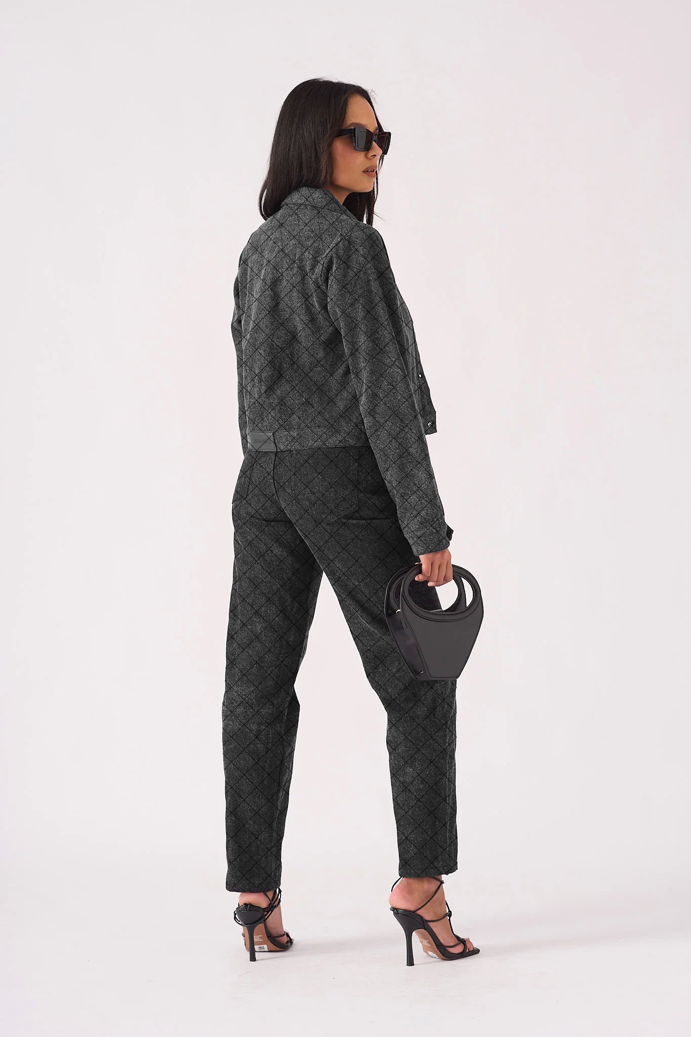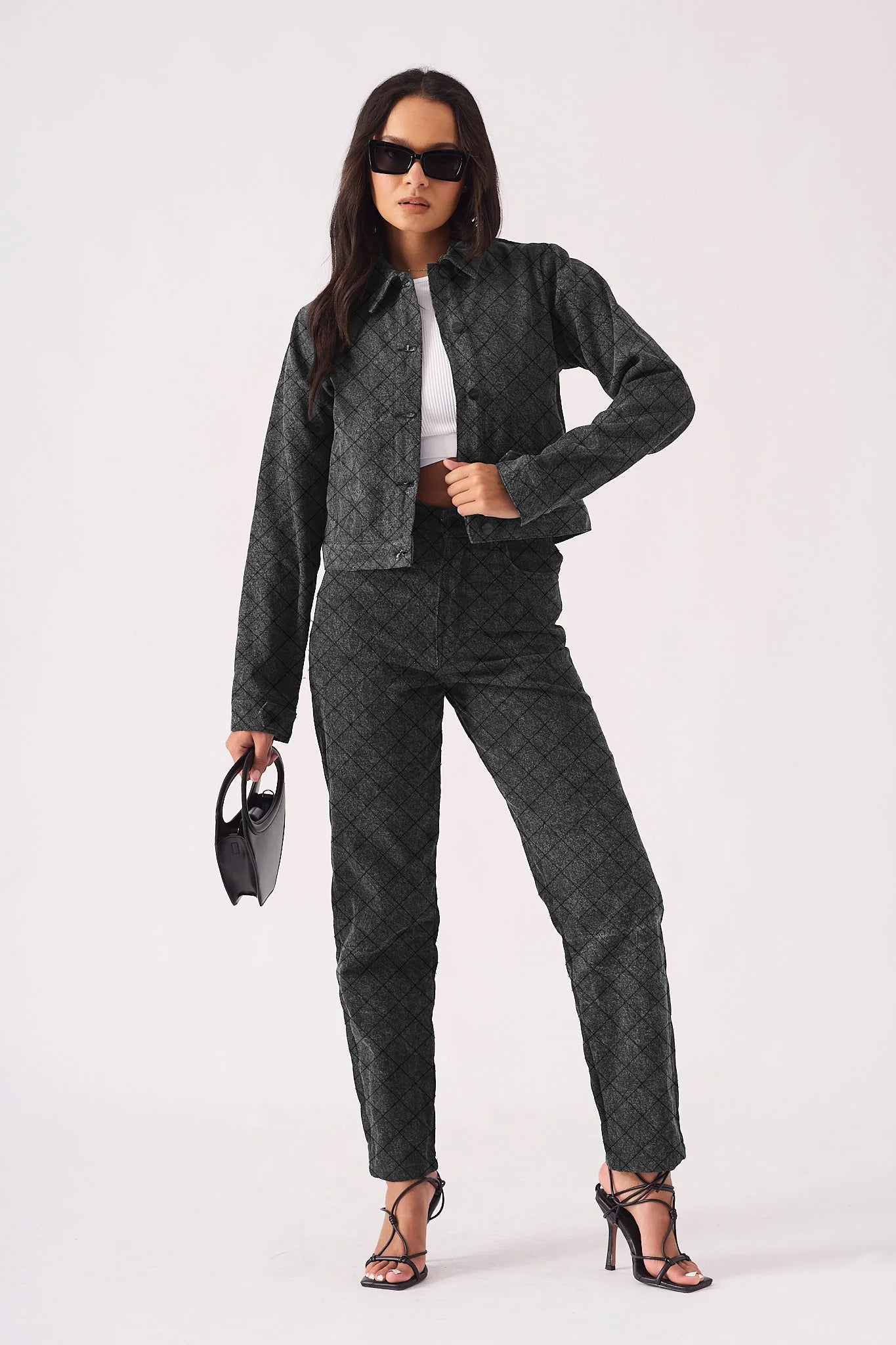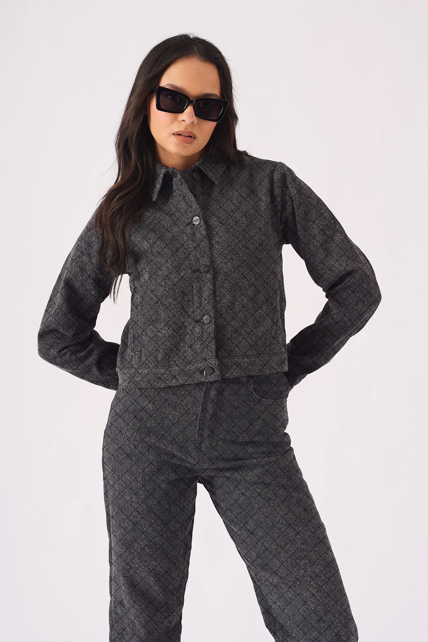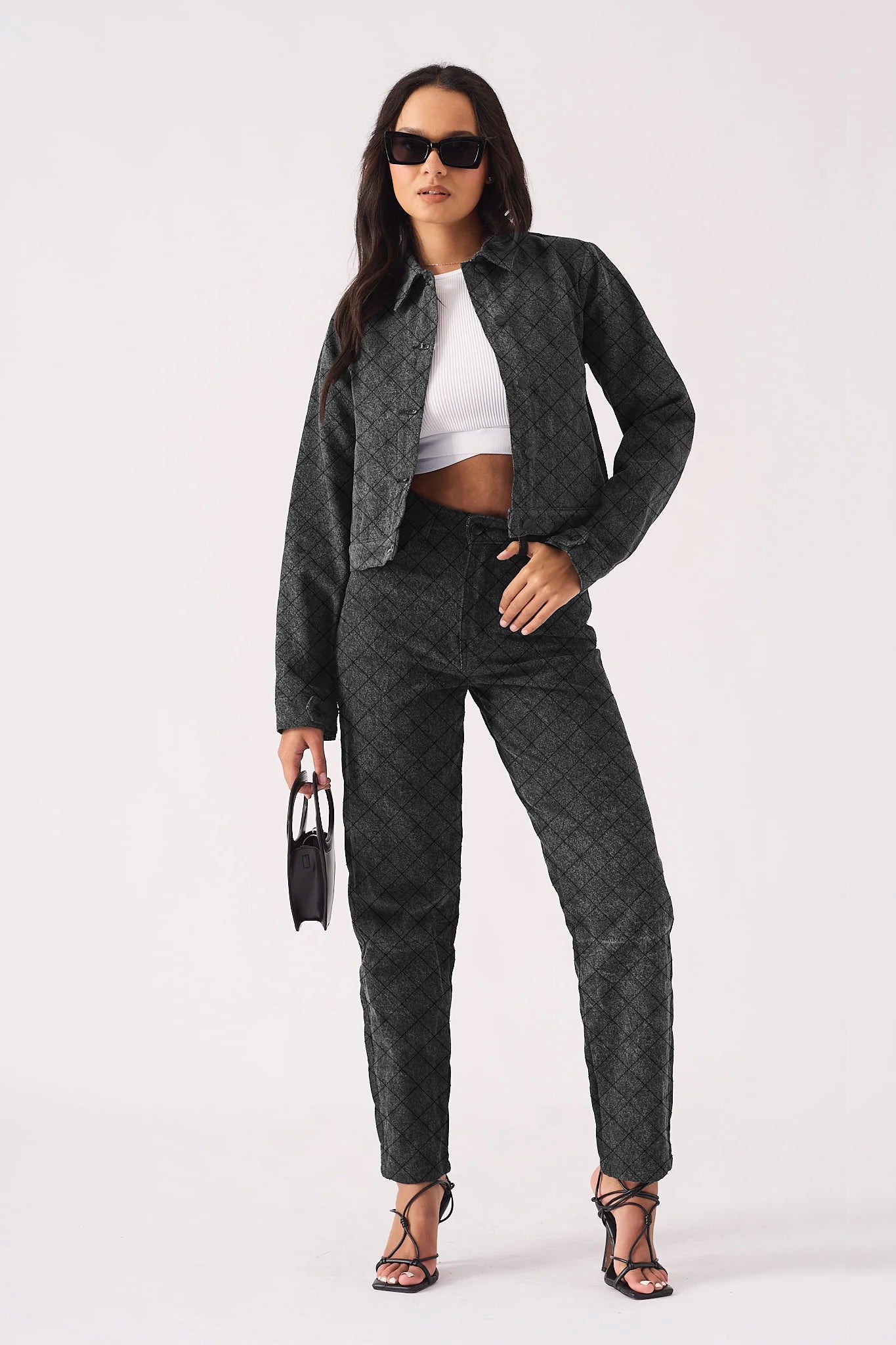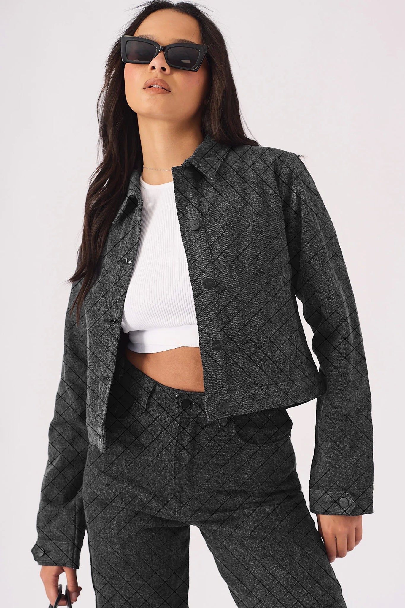 Bracken Diamond Stitch Crop Denim Jacket – Black Acid Wash