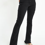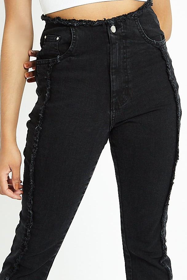 ZEPHYRA Frayed Seam Bootcut Jeans - Black