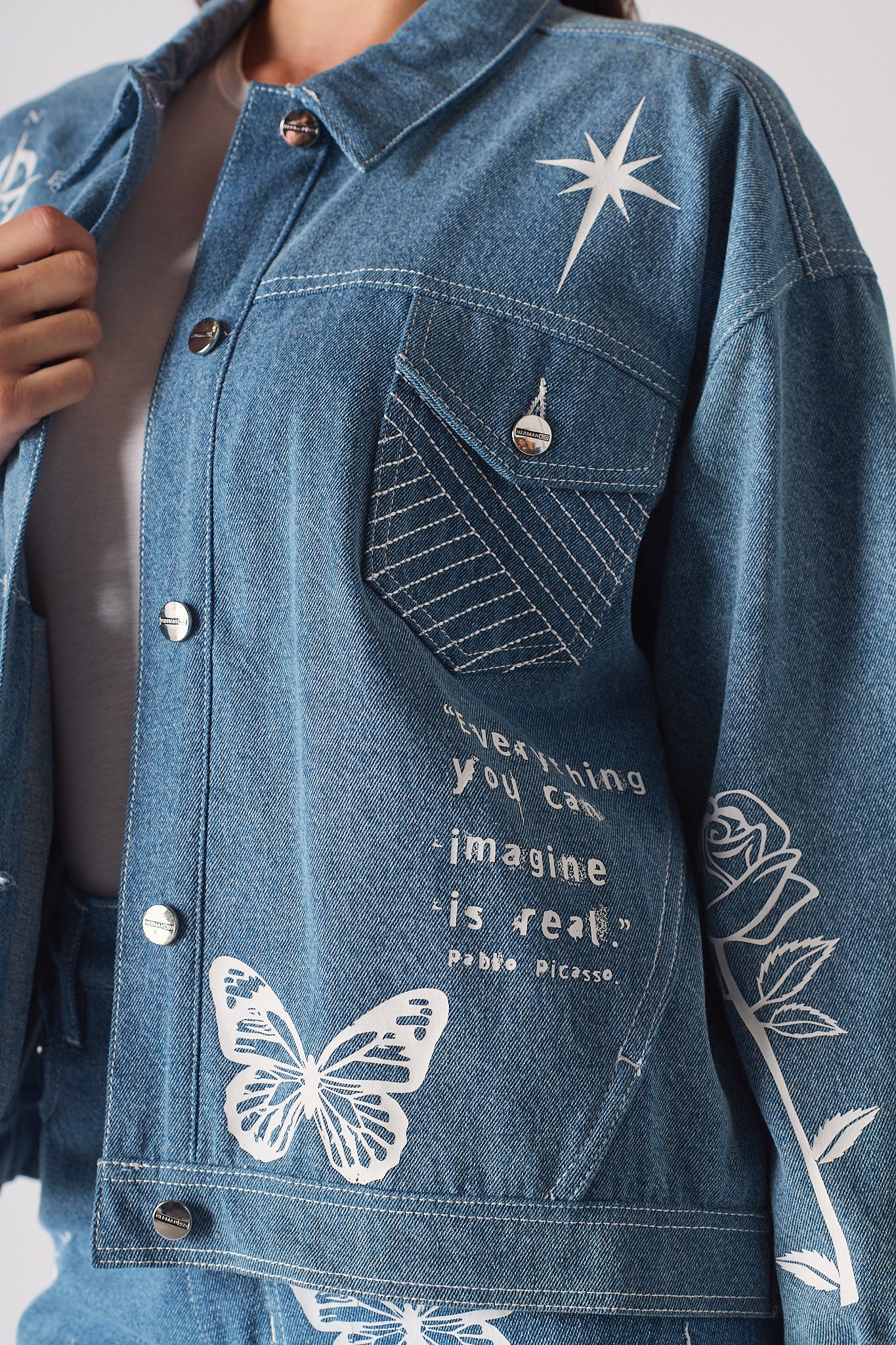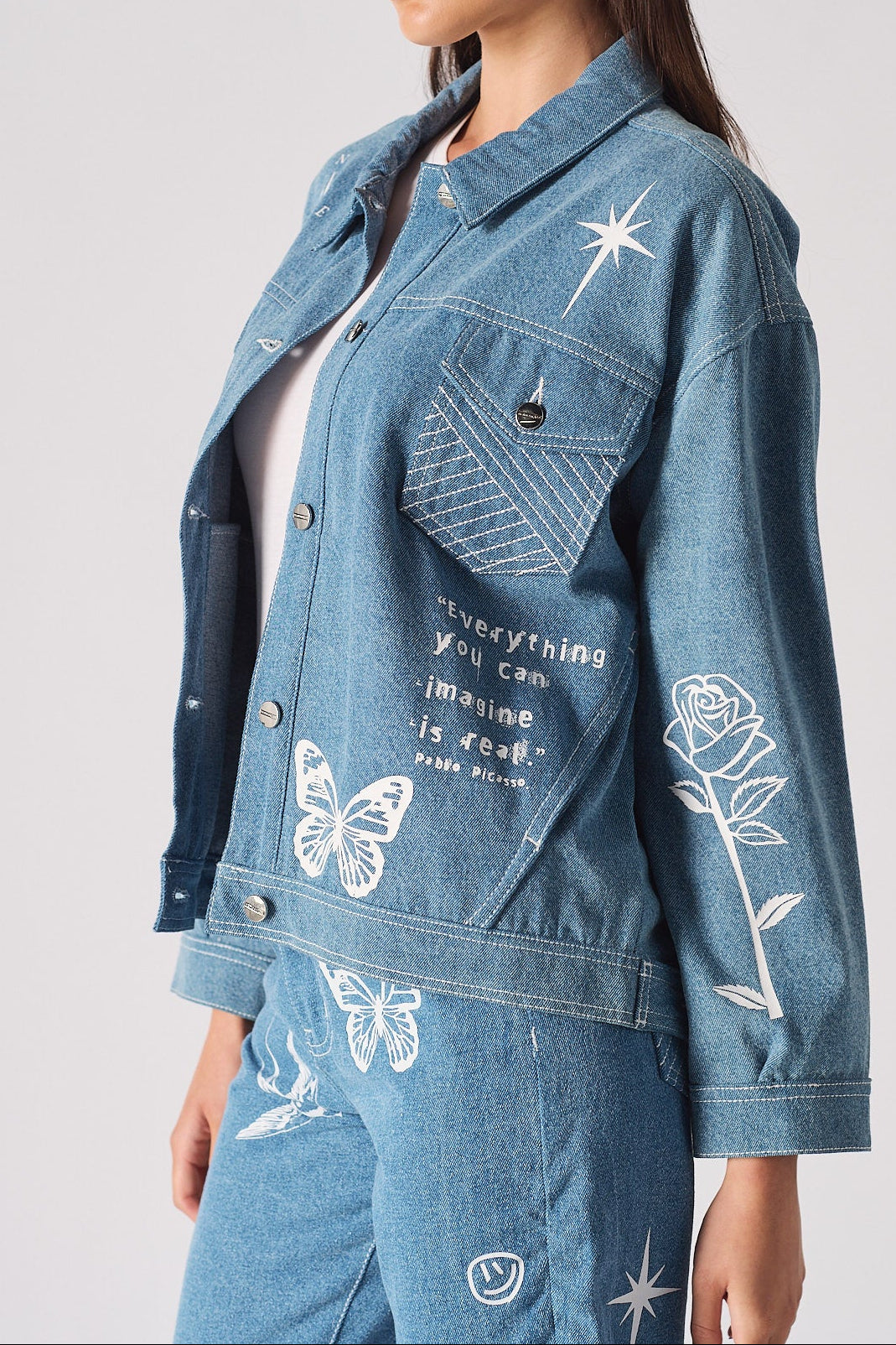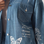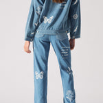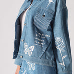 Tattoo Print Denim Jacket - Light Blue
