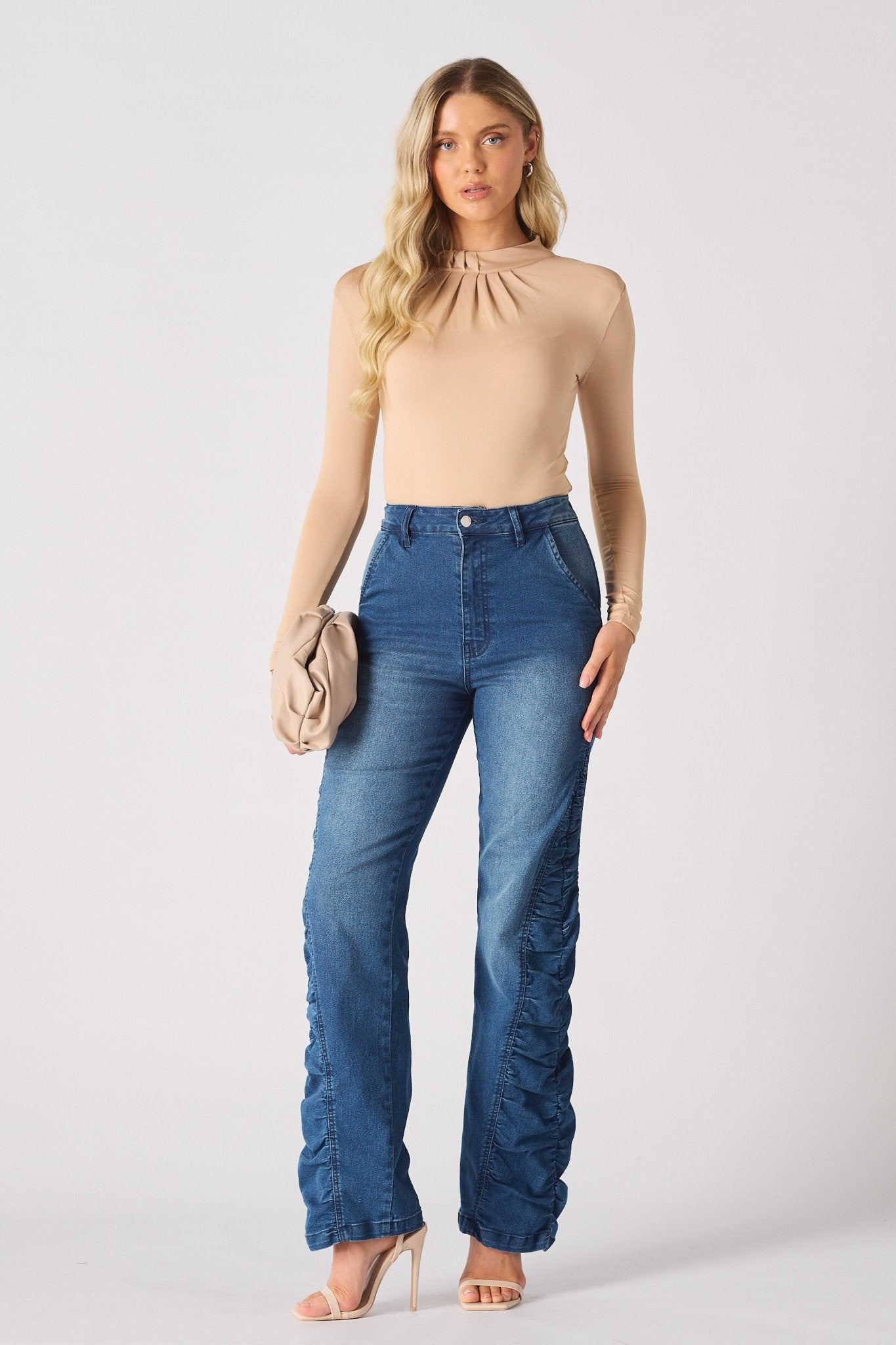 A versatile and elegant addition to your wardrobe, our beige high neck bodysuit is perfect for dressing up or down. It's crafted from a soft, stretchy fabric for a flattering, figure-hugging fit. The standout feature is the chic, gathered high neckline that adds a touch of sophistication. With long sleeves and a classic bodysuit design, it’s the perfect piece to pair with your favourite jeans or a skirt for a seamless look.