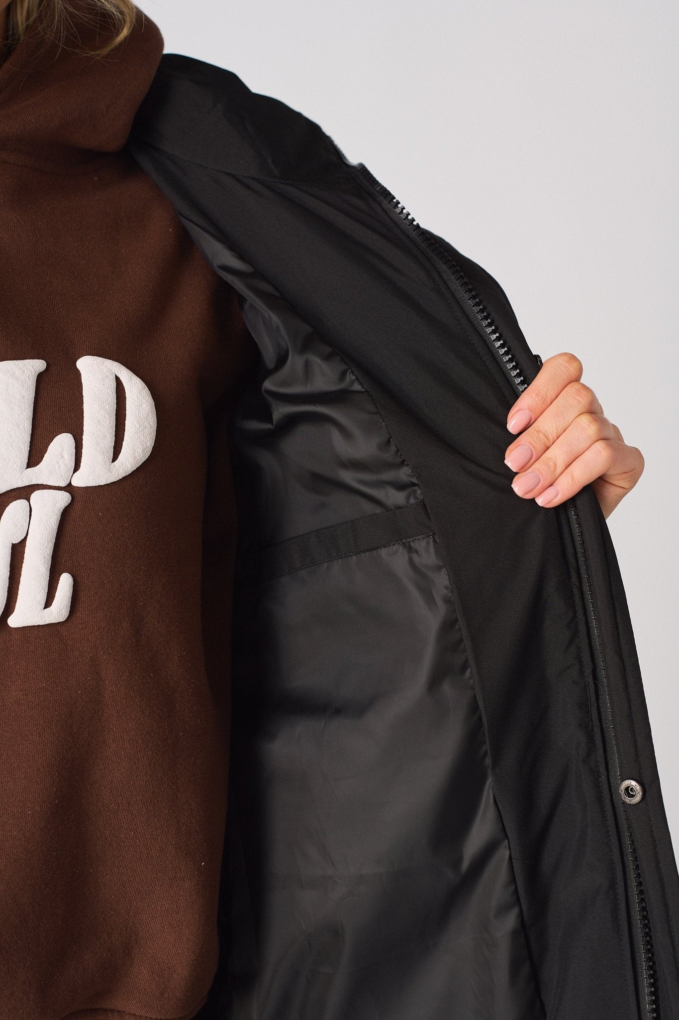 Zoom Longline Hooded Puffer Coat - BLACK - JMOJO - Women's puffer coat