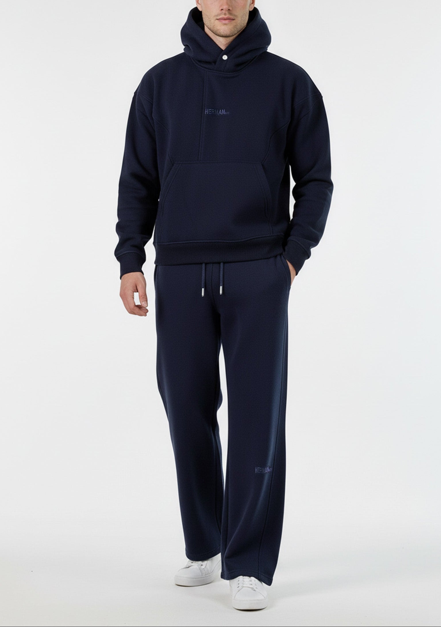 Herman Popper Neck Oversized Hoodie - Navy