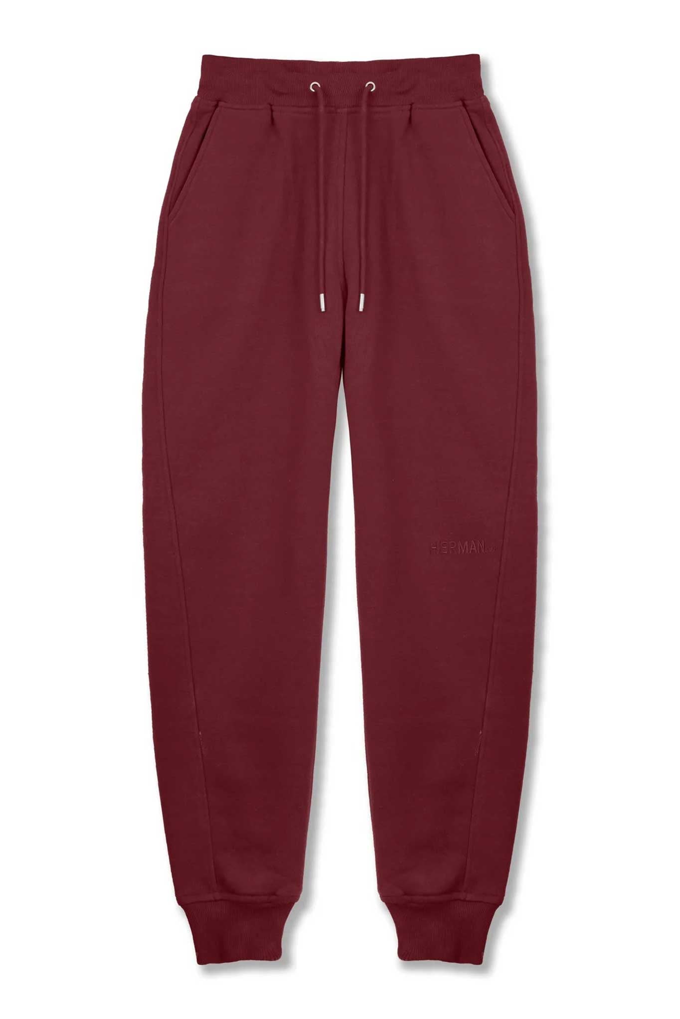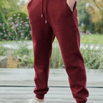 Lounge in style with our luxury men's dark burgundy tapered joggers with leg fit, made with quality polycotton fabric that delivers warmth and support for all physical activities. They provide a great fit with an adjustable waist and ribbed cuffs and waistband. Plus, the seam detailing adds a touch of luxury. And the patch pocket to the back is both practical and stylish. So why not add our dark red tapered joggers to your wardrobe today?