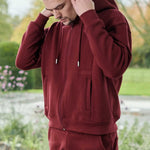 Elevate your casual wear collection with this premium Men Dark Burgundy Zip Up hoodie. It is perfect for chilly mornings or cool evenings and can be styled with your favourite jeans or joggers. Made from quality polycotton that's extra soft, and features tonal zipper opening, brushback quality, and seam detailing for a stylish look. Plus, its men fit design makes it an excellent option. With seam detailing and a drop shoulder design, this hoodie is sure to become a staple in your wardrobe.
