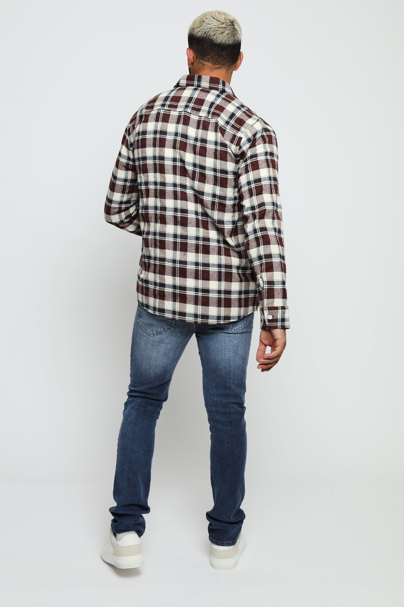 A timeless layer. Crafted from soft, brushed-cotton flannel in a rich maroon, navy, and cream check. Cut for a comfortable regular fit.