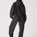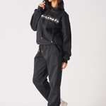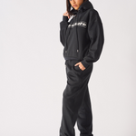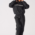 Effortlessly cool with a touch of sophistication, this modern take on a streetwear staple is crafted from premium cotton. It offers a relaxed, oversized fit that drapes over the body. The drop shoulder sleeves and drawstring hood contribute to a slouchy silhouette while providing warmth and style. A tonal slogan on the chest adds subtle branding. This versatile piece pairs well with tailored trousers for a refined look or denim for casual wear, transitioning seamlessly from day to night.