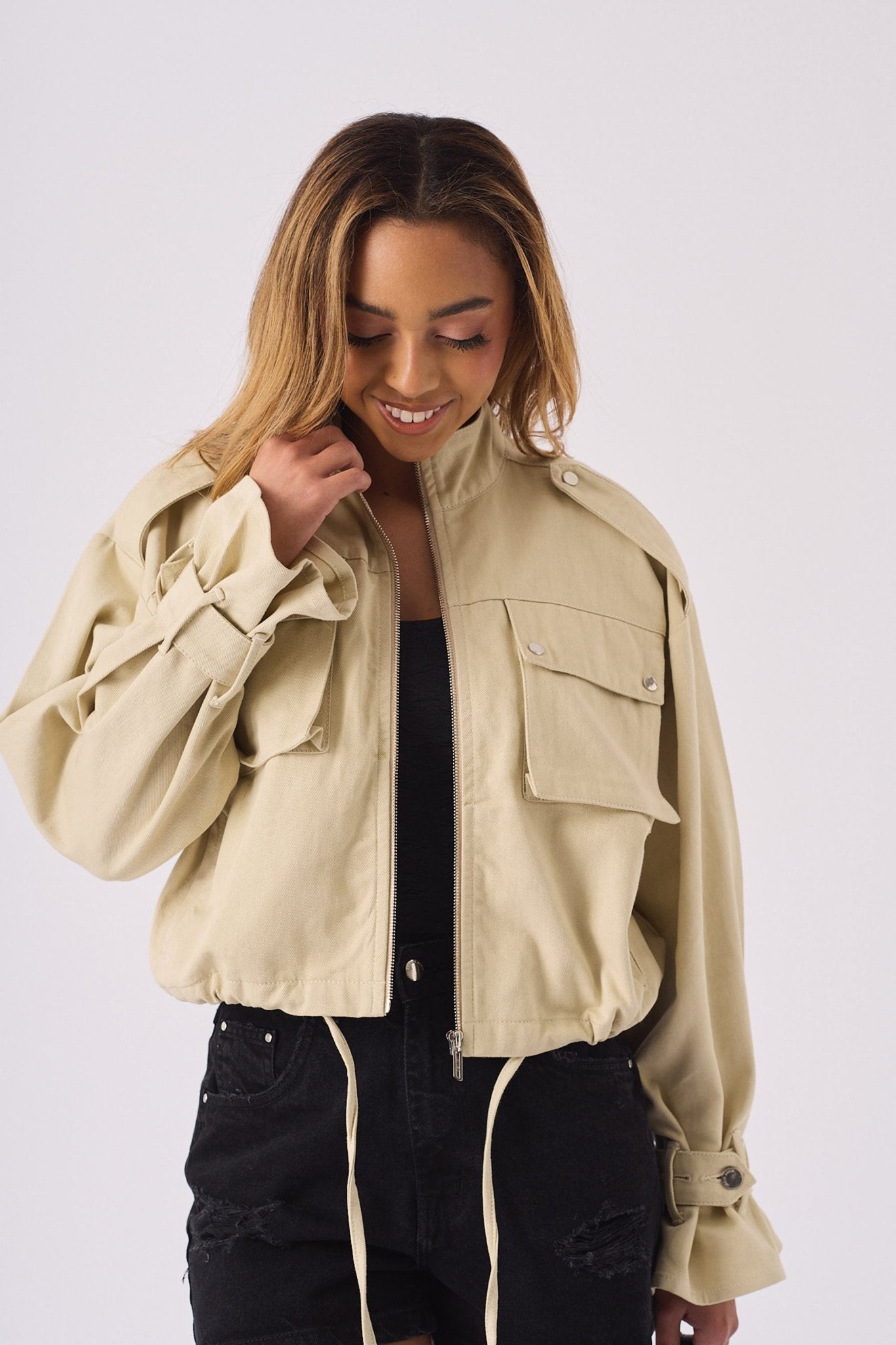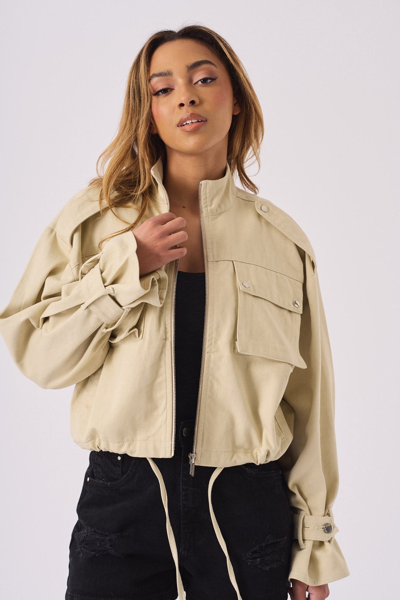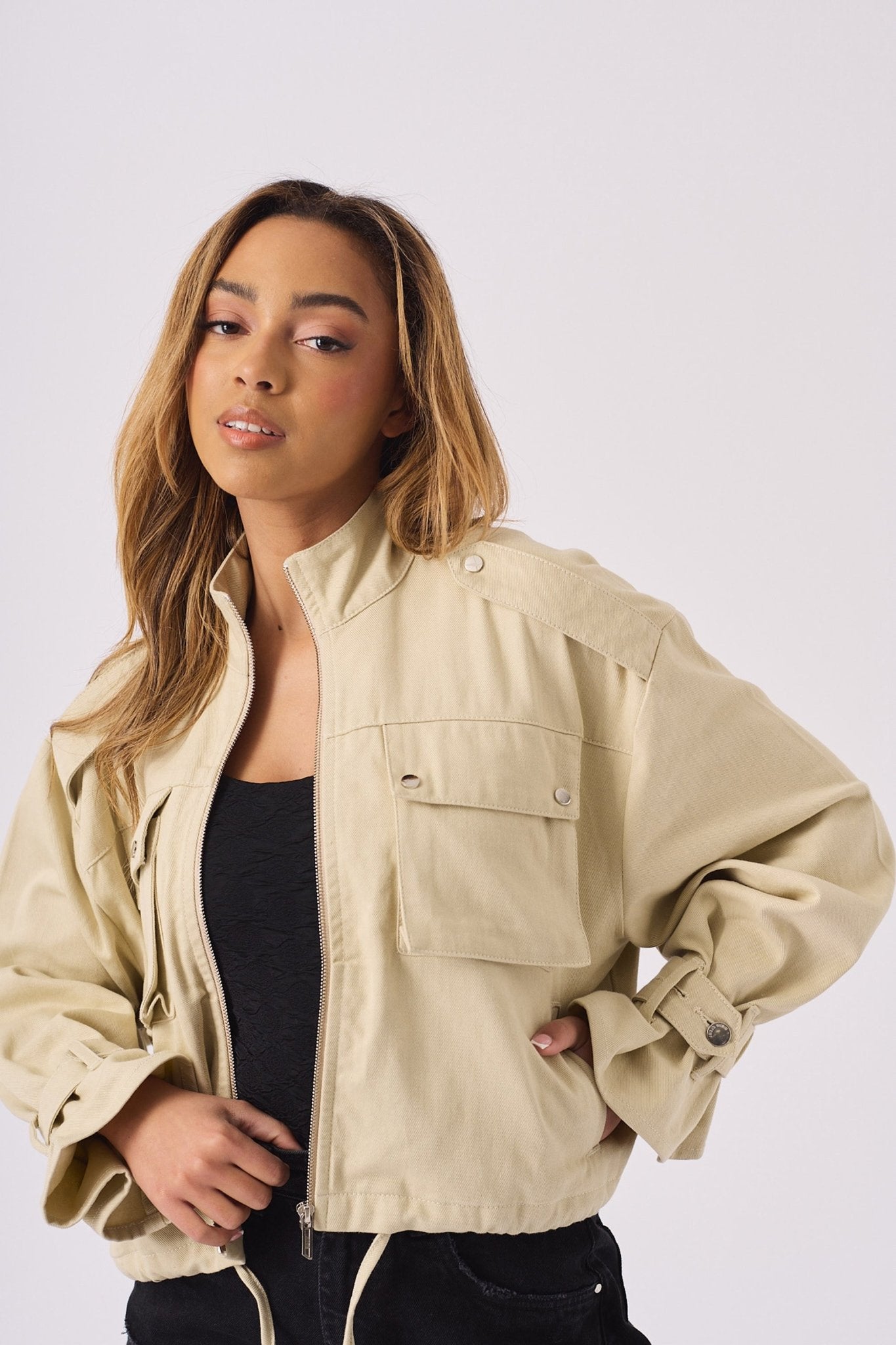 - Cropped utility jacket style