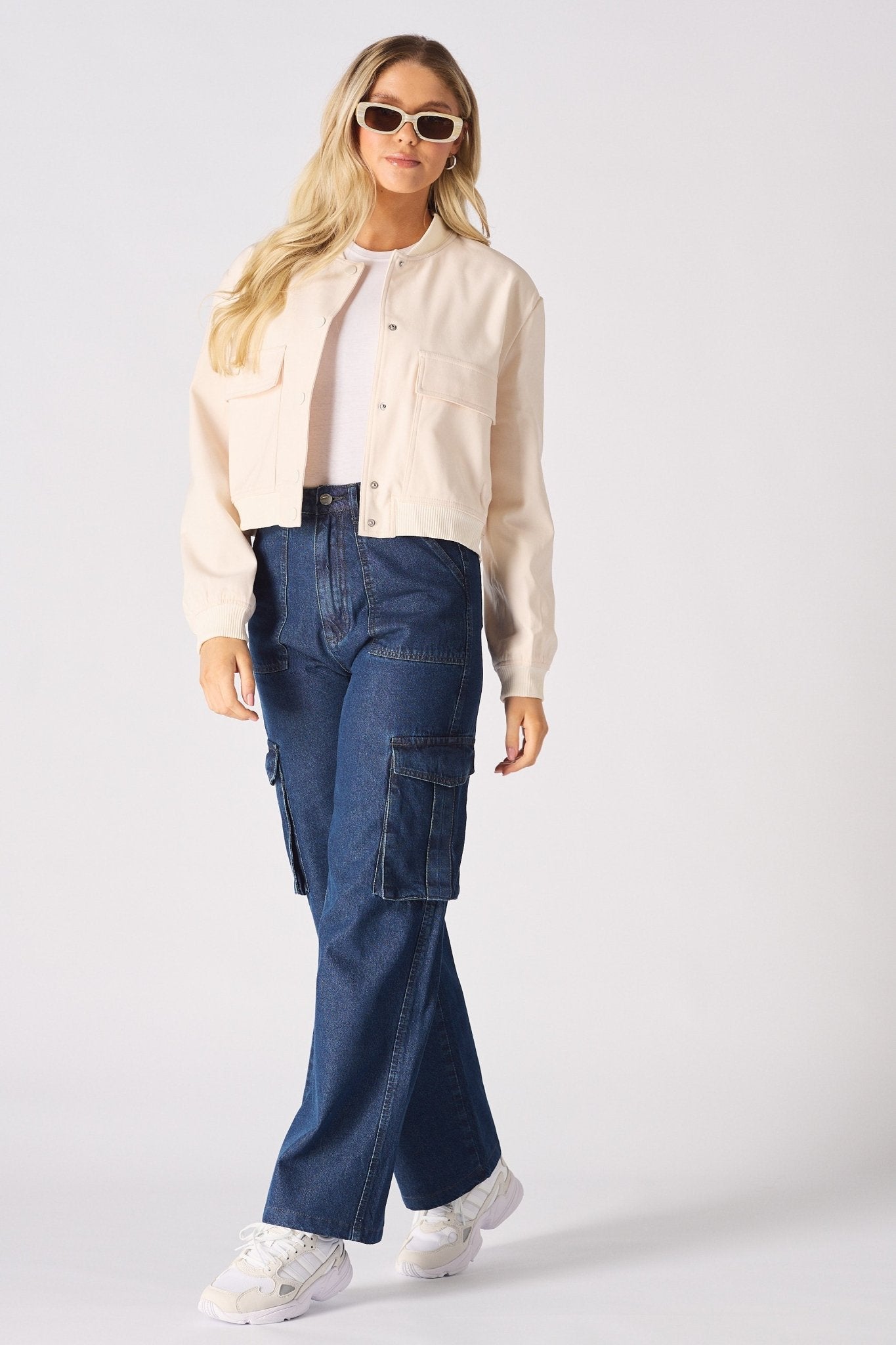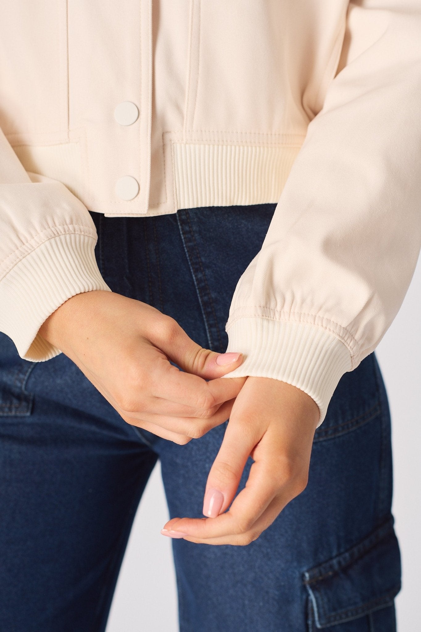 Our beige bomber jacket is the epitome of style and comfort. With a regular fit and a baseball collar, it offers a flattering silhouette. The jacket features a button front fastening, two practical front chest pockets, and long cuffed sleeves for a tailored finish. Crafted to be durable and lightweight, this versatile jacket is the perfect addition to any outfit. Experience elegance and sophistication with our Bomber Jacket today.