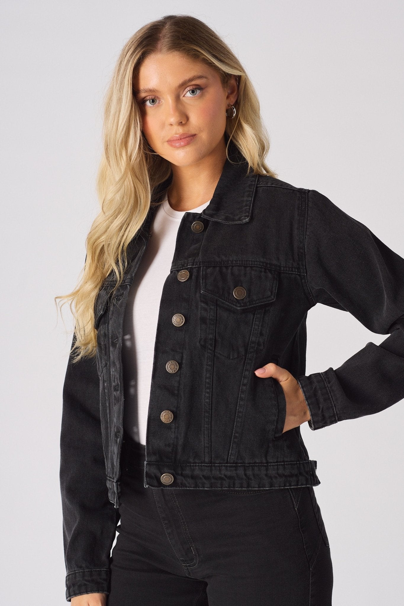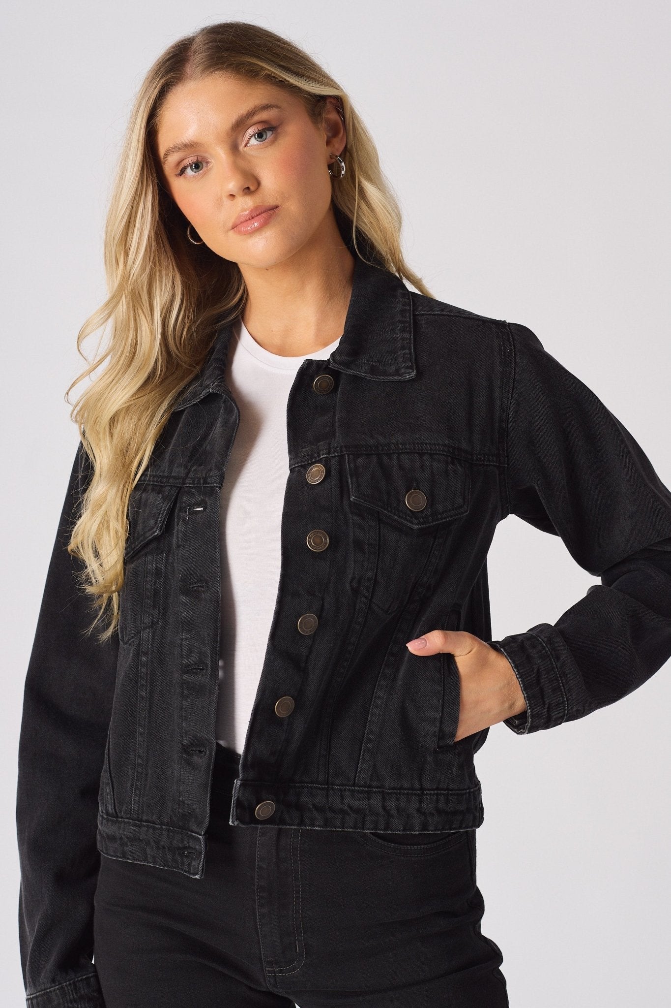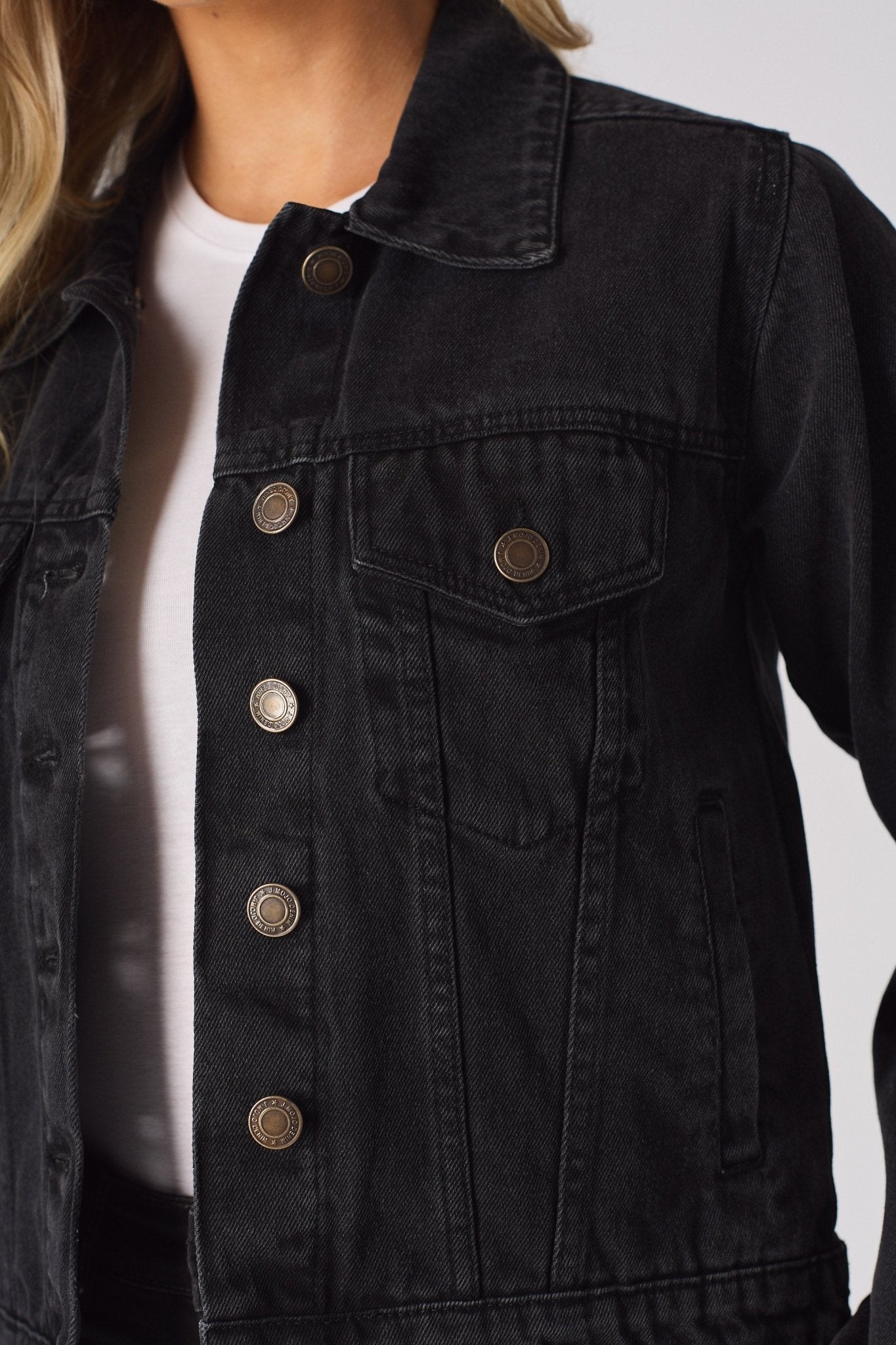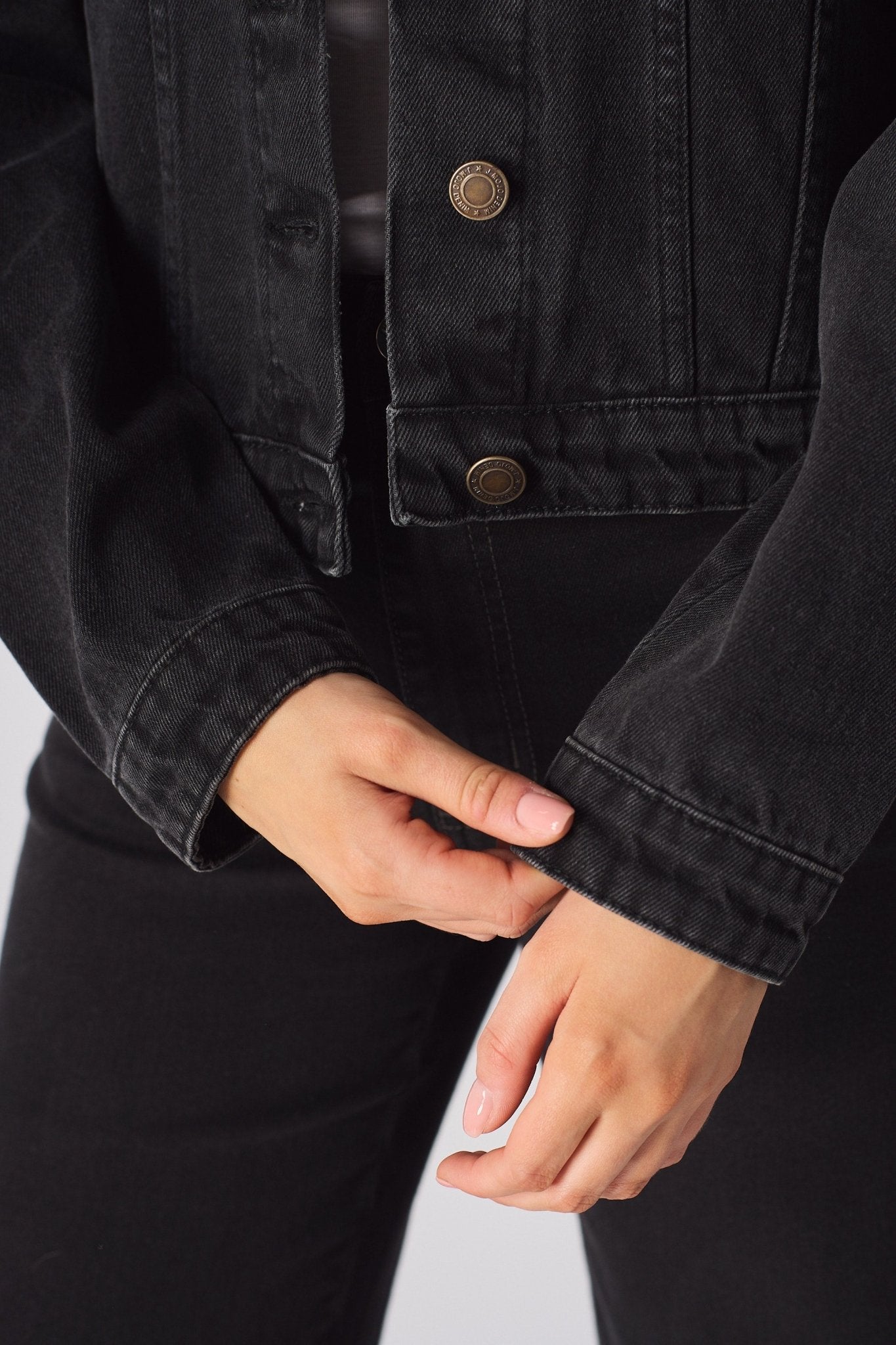 Zoom Drift Sherpa Collar Denim Jacket – Black - JMOJO - Women's Denim Jackets Sherpa