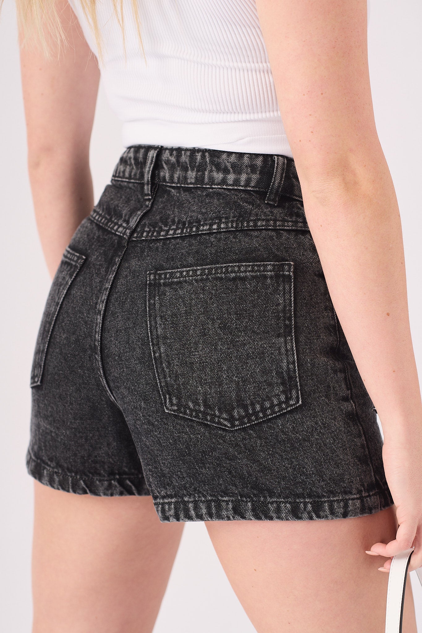 Add some edge to your casual collection with these black acid wash shorts. Crafted from non-stretch cotton denim, they feature a flattering high-waisted fit and classic ripped detailing for a perfectly worn-in look. A versatile staple for effortless style.