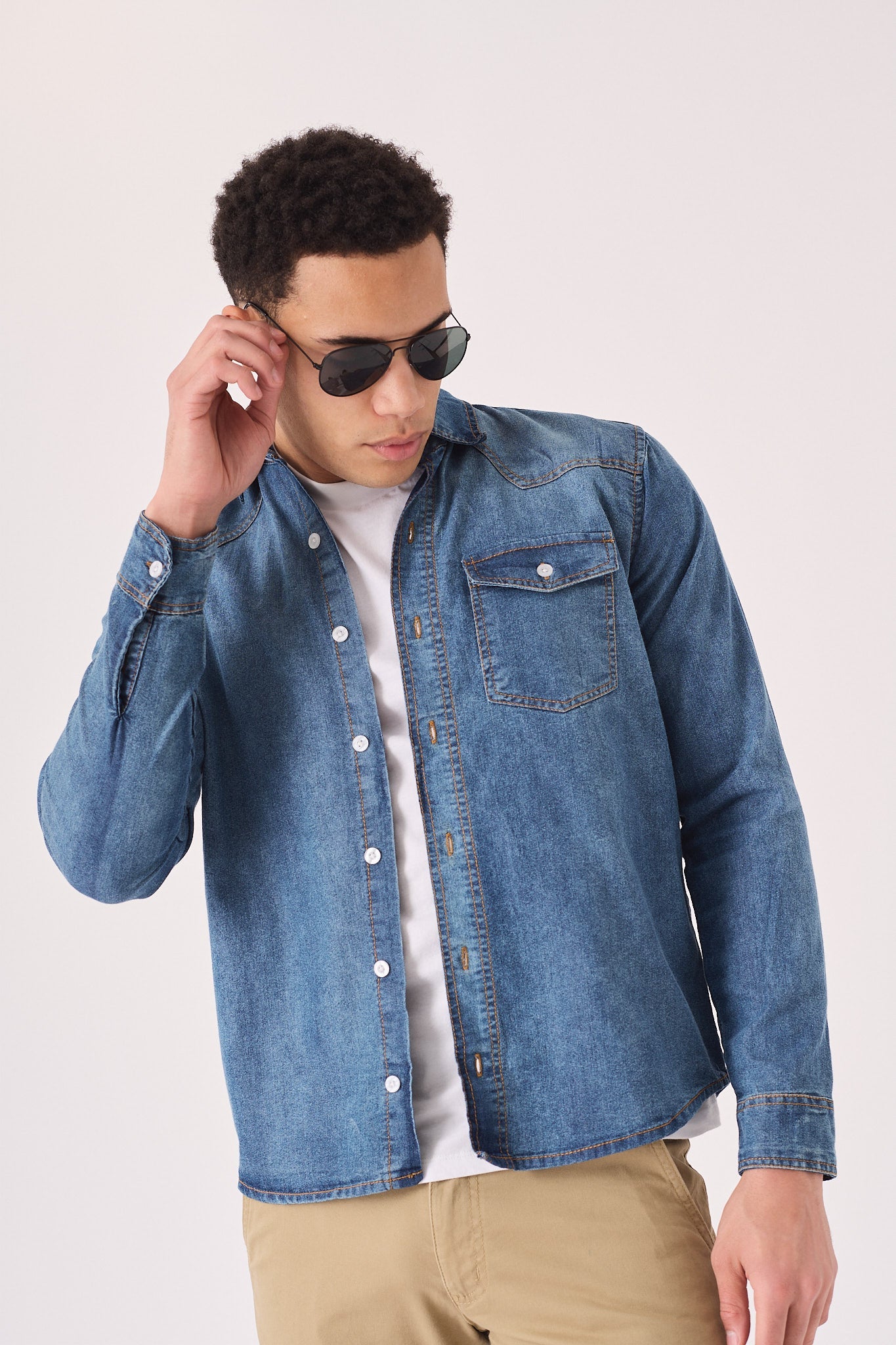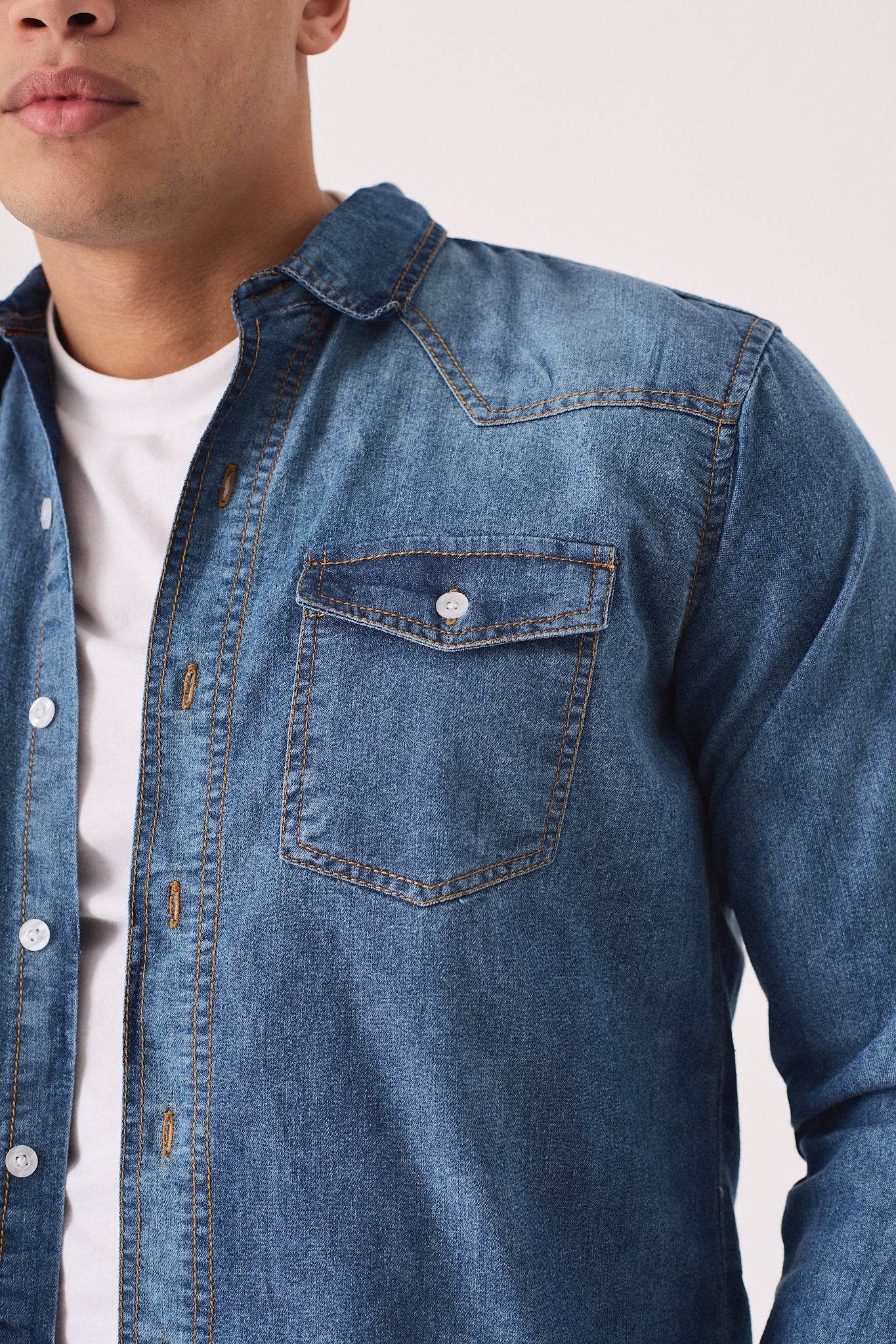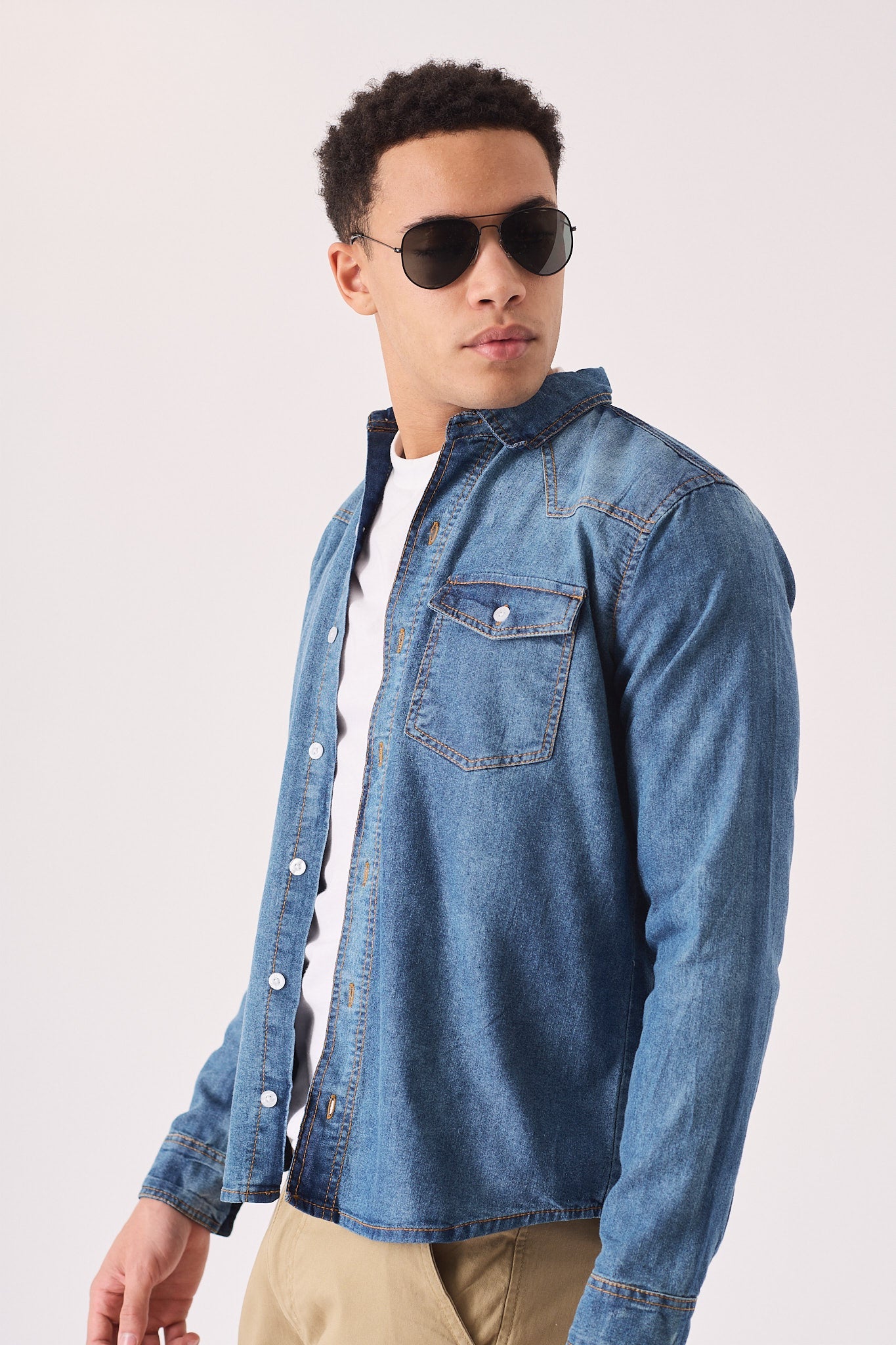 Ocean SLIM FIT DENIM SHIRT - MID BLUE WASH