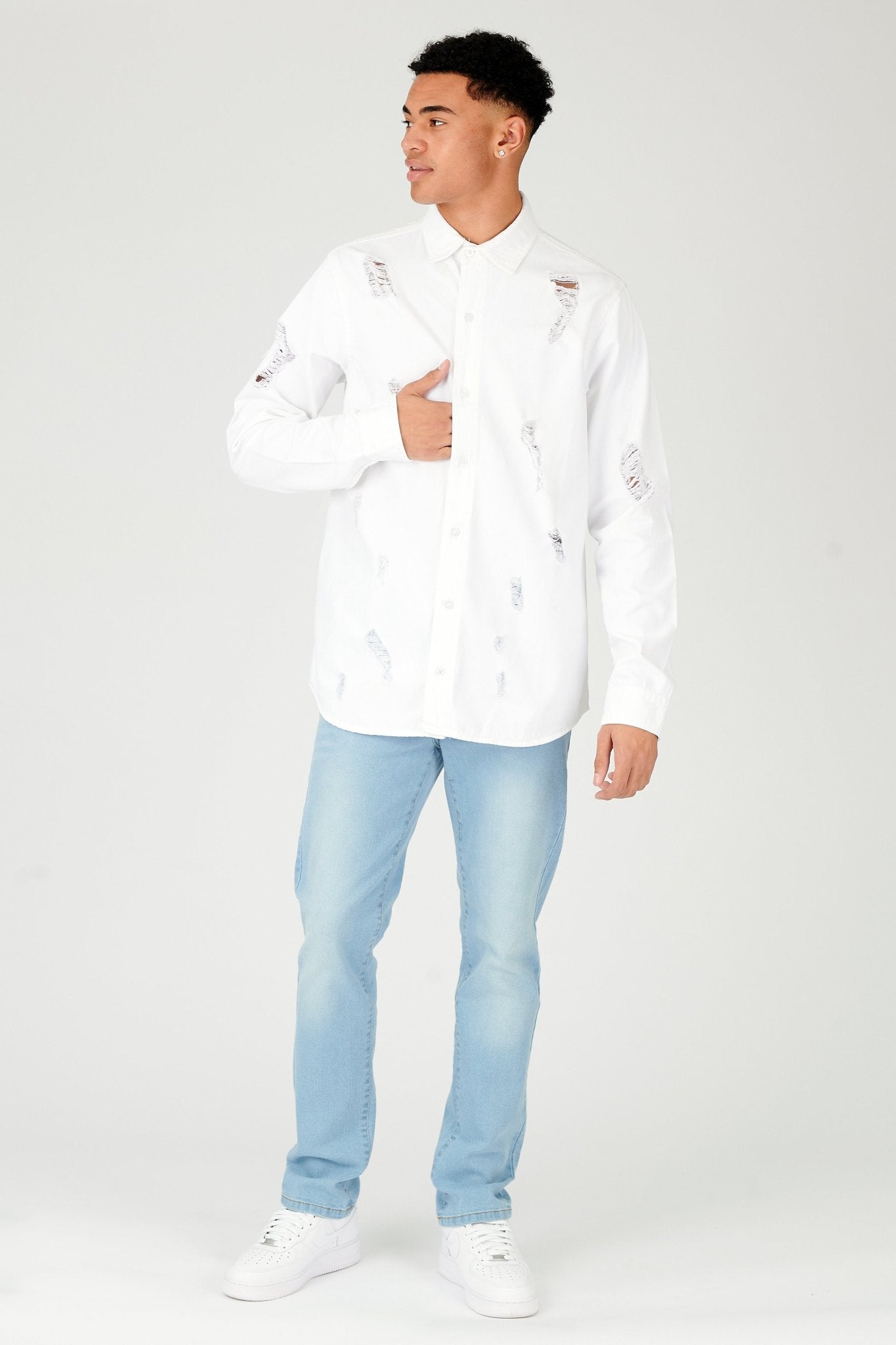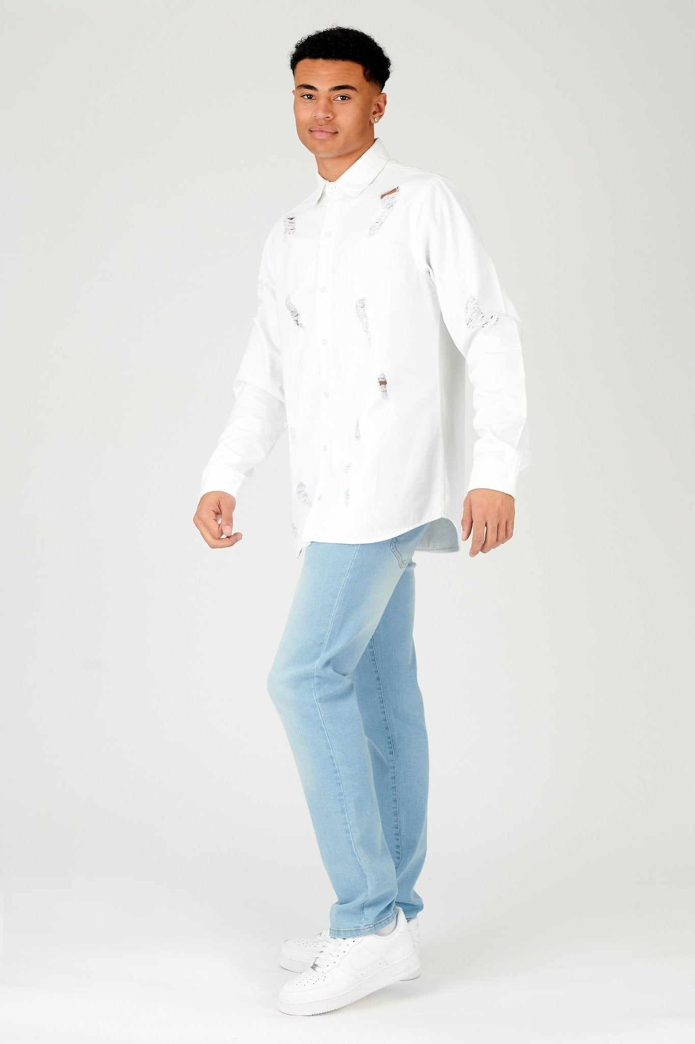 Introducing JMOJO's ripped denim shirt, the perfect choice for everyone who appreciates quality clothes that stand up to daily wear and tear. This classic piece of clothing is made from 100% cotton denim fabric, ensuring both comfort and style. A point collar offers a smart look, while button front fastening makes it easy to wear. The regular fit of this shirt is flattering and will keep your look timeless. Whether you're dressing up for work or a special occasion, JMOJO's men's shirt will bring sophistication and class to any outfit. It can be easily matched with trousers or jeans and looks great paired with leather shoes or sneakers. Make a statement with this shirt and dress to impress - you won't regret it. Order now!