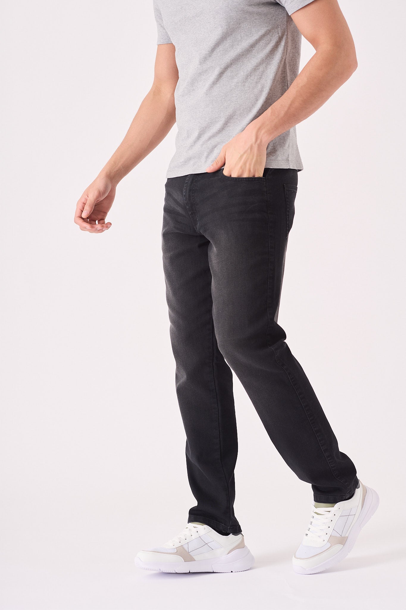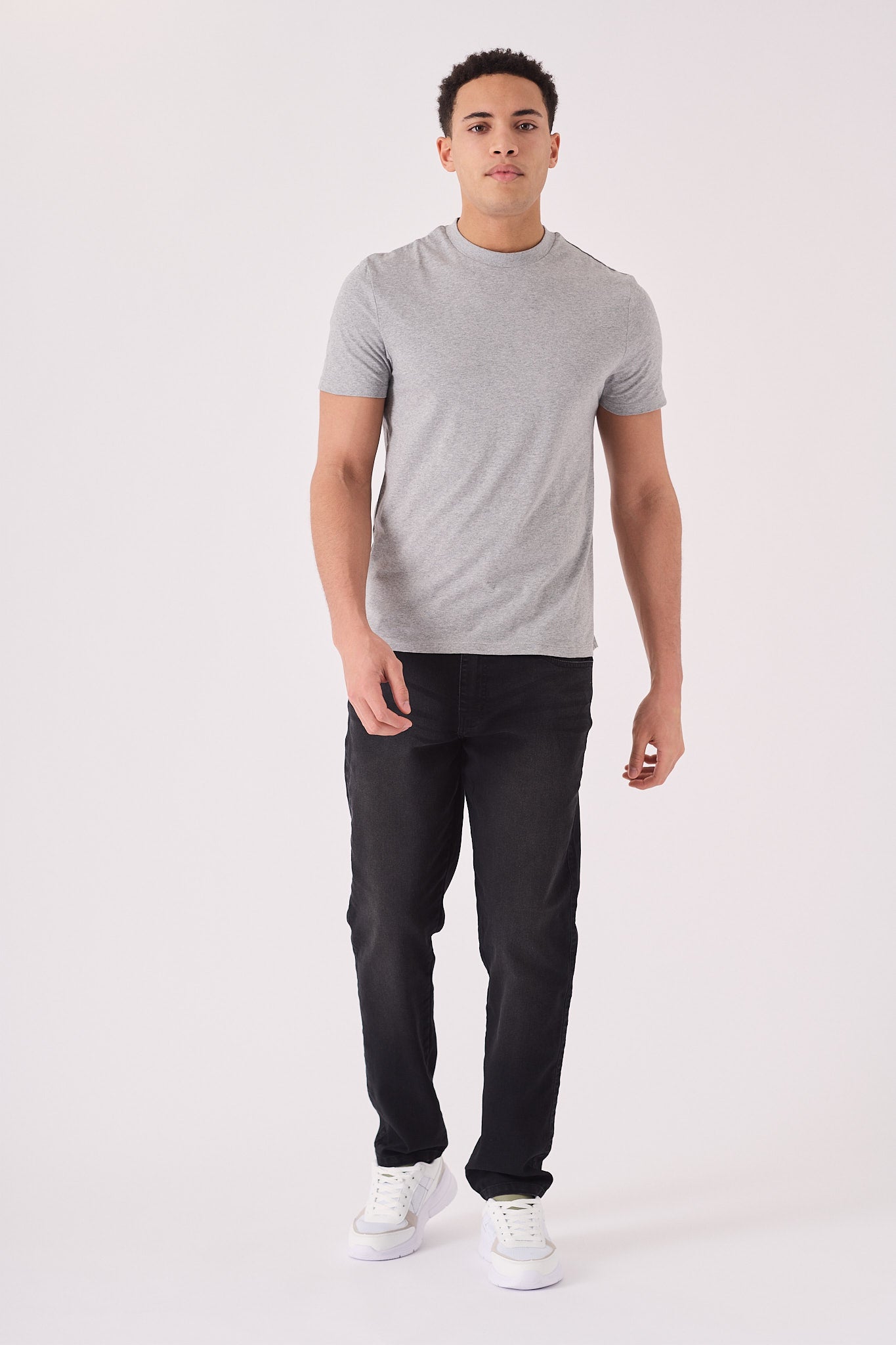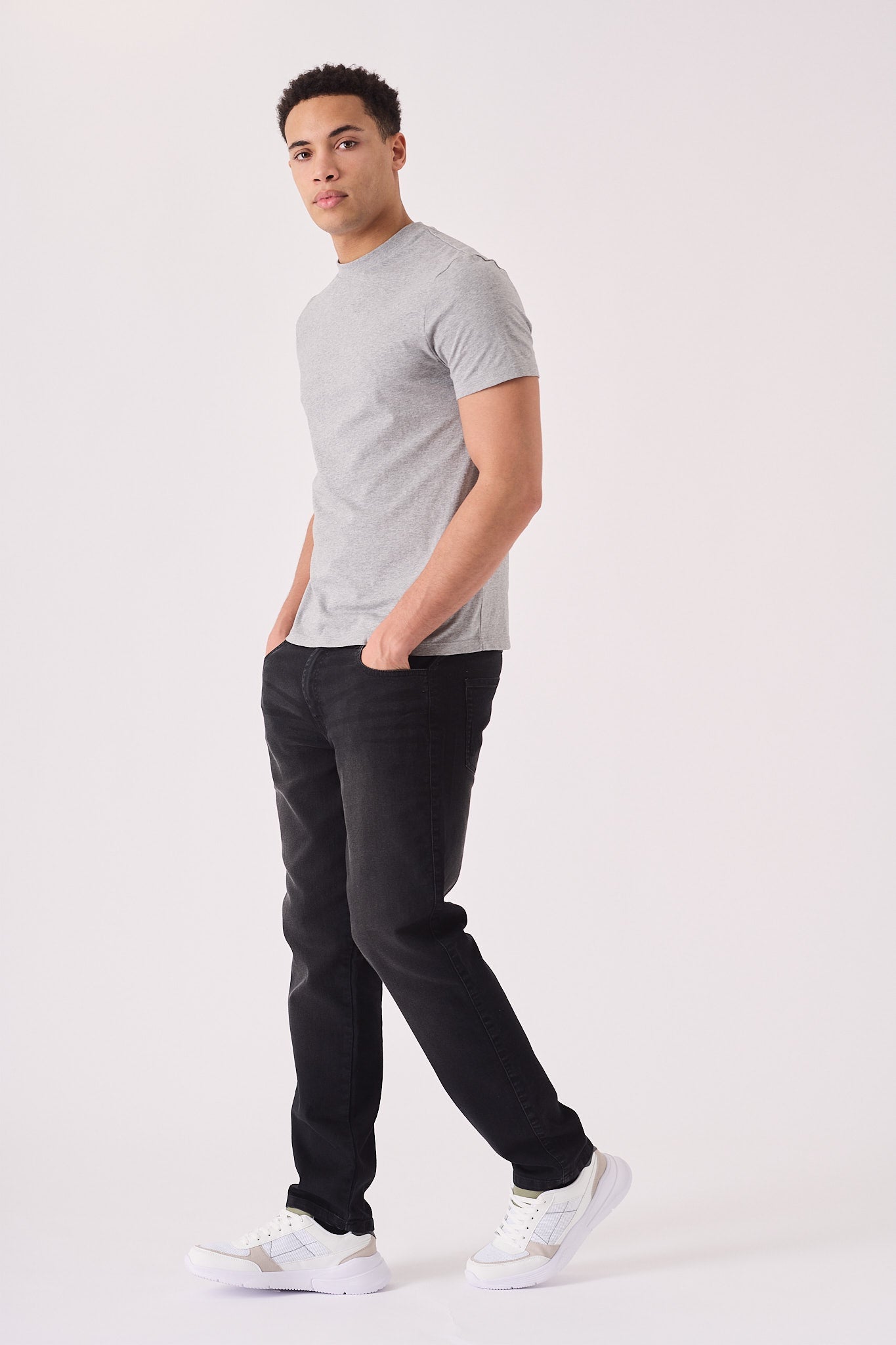 A timeless straight-leg silhouette in a sharp, washed black. Crafted from soft stretch denim for a clean aesthetic and essential, all-day comfort.