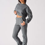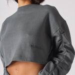 Step up your style game and update your wardrobe with our luxe crew neck cropped jumper. Made from soft and cosy brushback cotton, this jumper is perfect for relaxing in style. With a slightly oversized fit, tacking detail to the sleeves and grey colouring, this jumper is a must-have this season. Our versatile jumper will have you looking your best whether you're dressing down or dressing up.