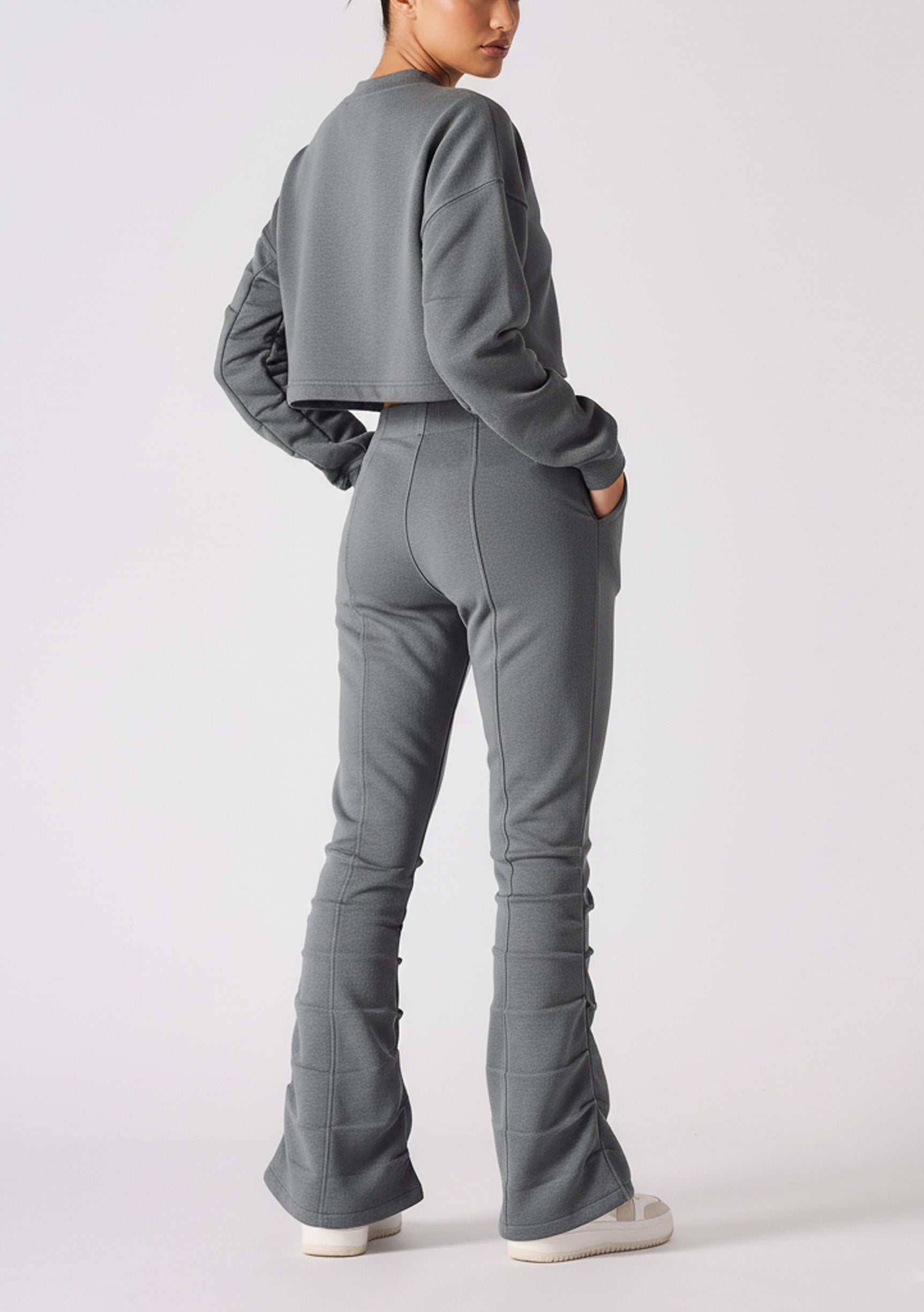 A garment of audacious artistry, these trousers are conceived for the woman who commands a unique sartorial presence. Their formidable silhouette, rendered in a sublime charcoal grey, is distinguished by dramatic ruching that cascades down the leg, creating a profile of regal texture and volume. Crafted for moments of refined leisure, they are a testament to avant garde design and sovereign comfort, redefining the boundaries of casual opulence.
