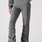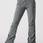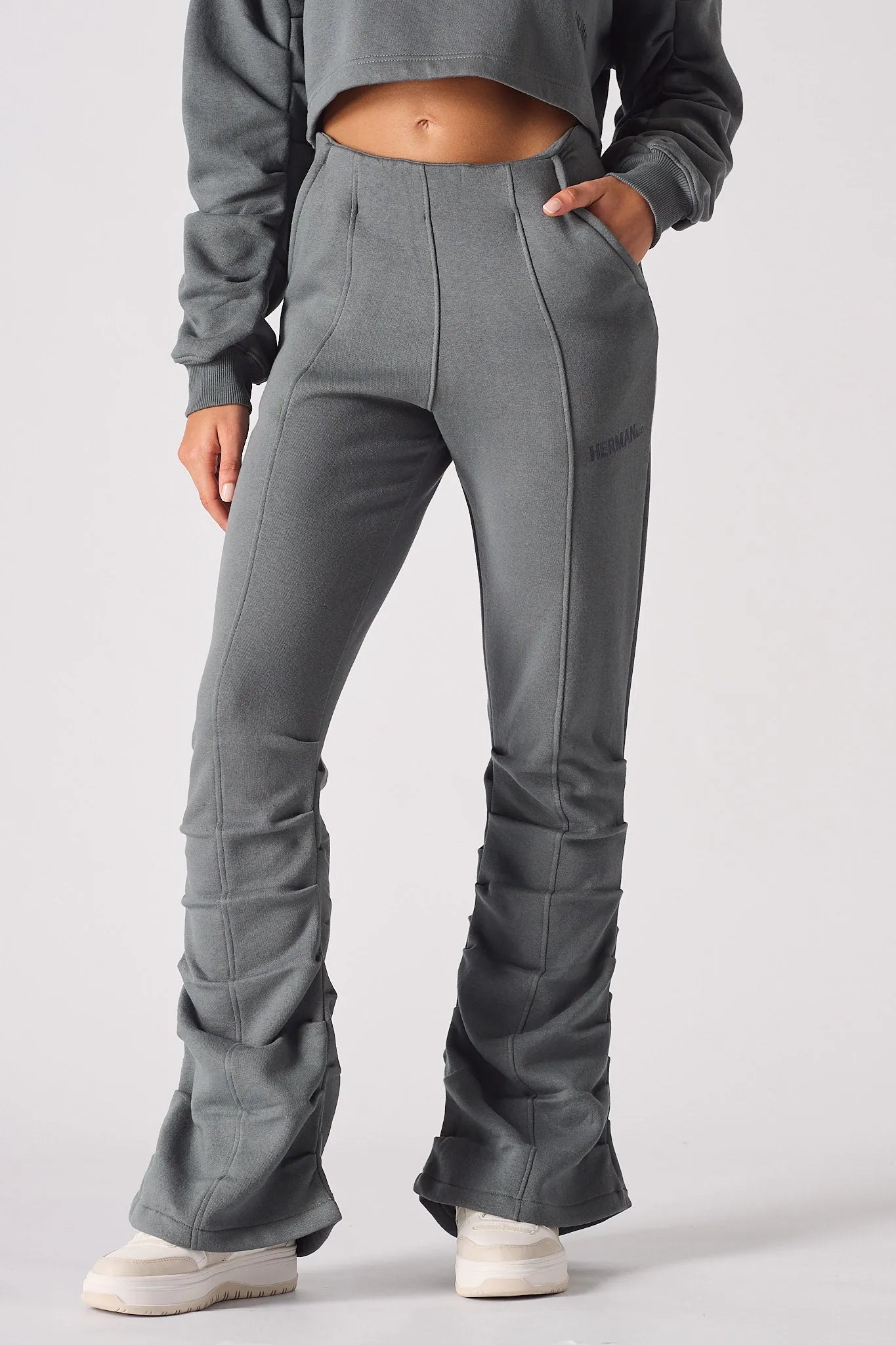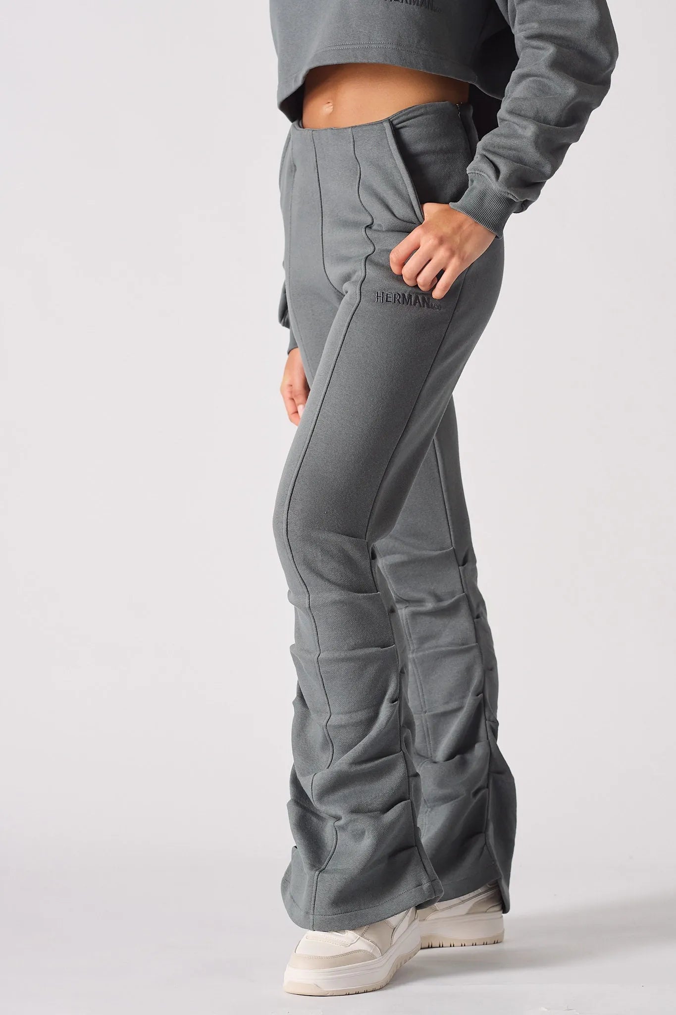 Herman Womens Ruched Leg Wide Flare Trousers - Charcoal Grey