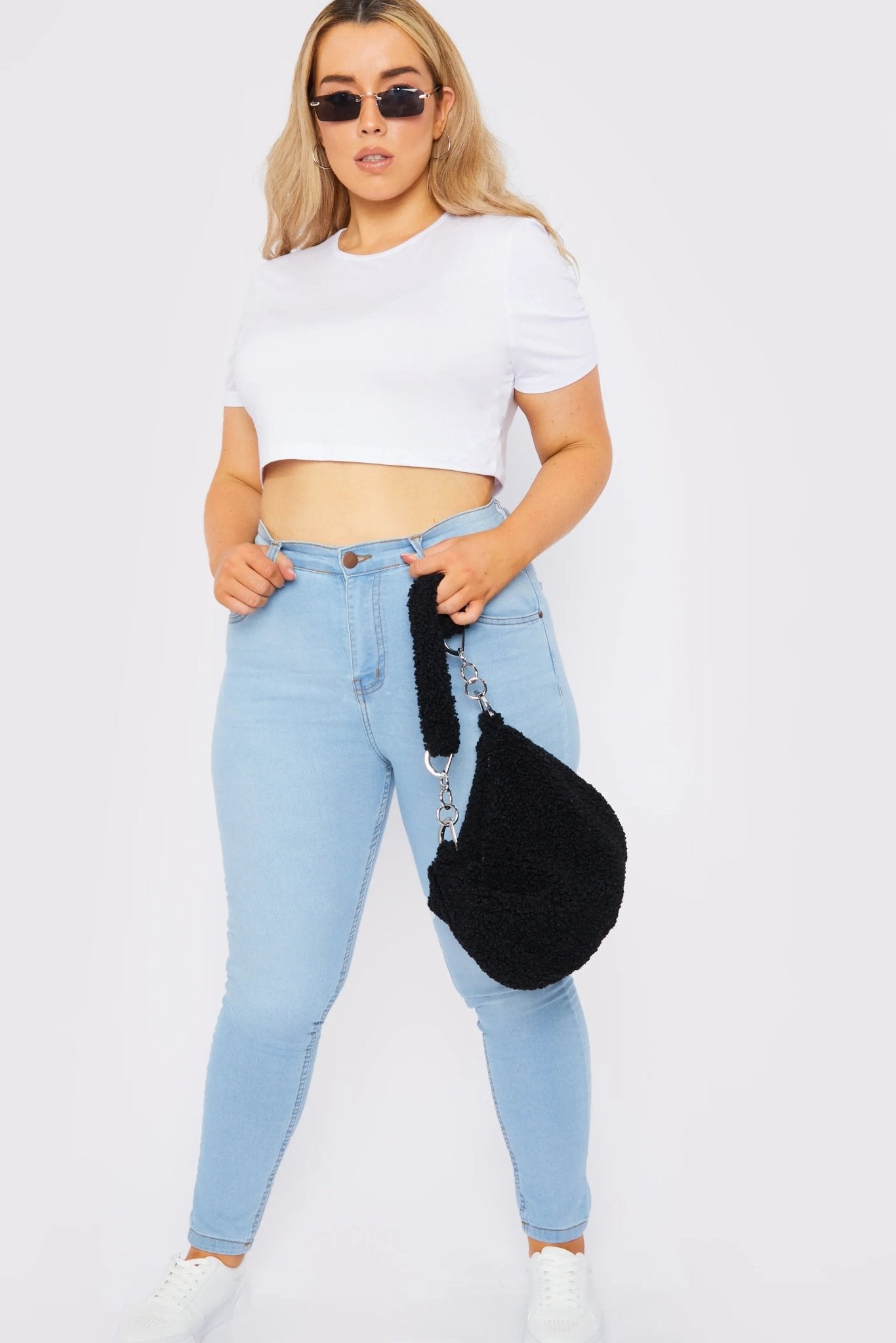 Crafted from premium stretch denim, the Taffy Plus Size High Rise Skinny Jeans in light blue deliver the perfect blend of comfort and contemporary style. The high-waisted design creates a flattering silhouette while the stretch fabric ensures all-day comfort. Style these versatile jeans with everything from casual tees to dressy blouses for effortless outfit transitions. Available in sizes 16 - 28 in Plus.