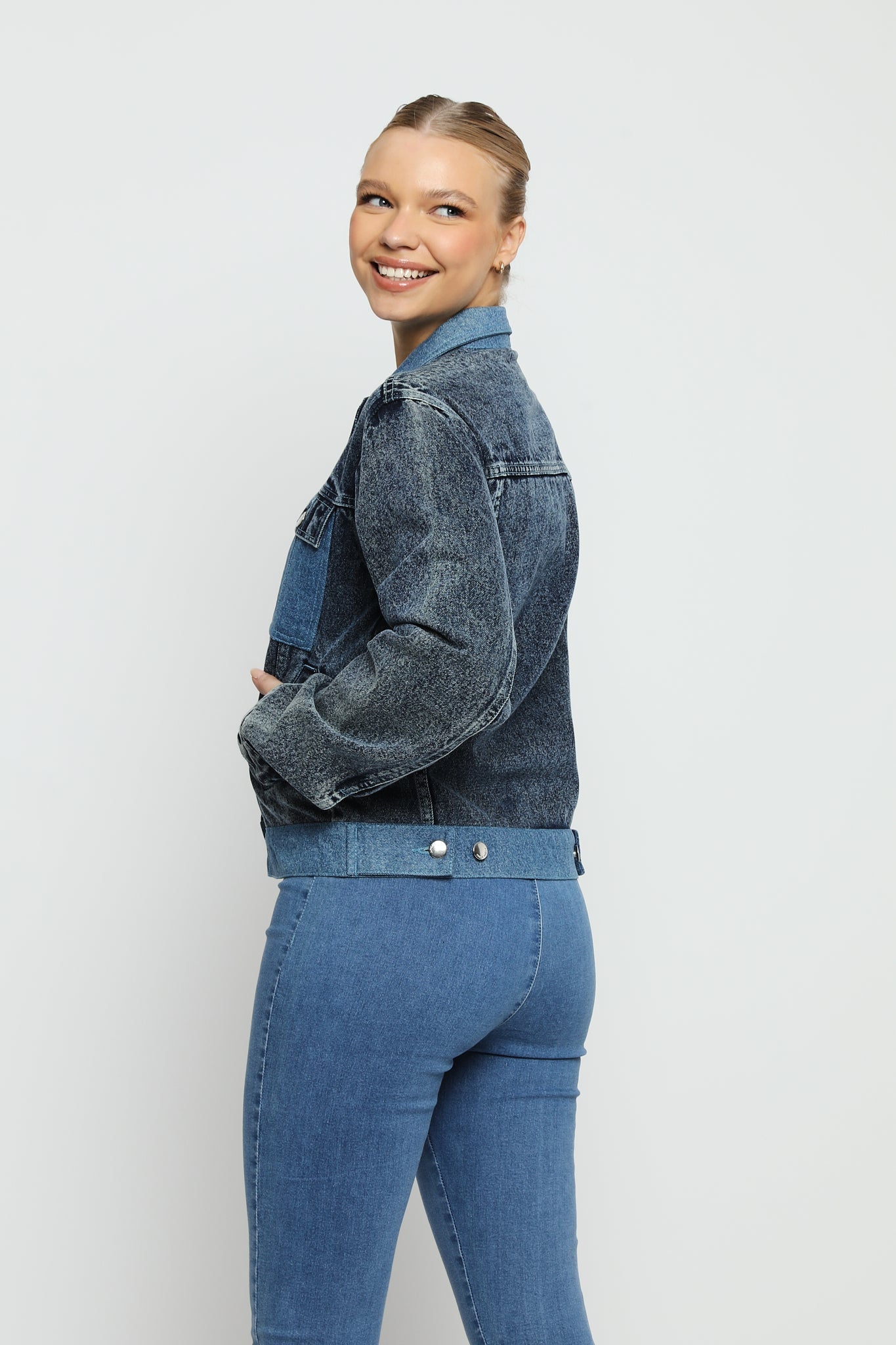 Zoom Dusk Two - Tone Denim Jacket – Mid Blue Wash - JMOJO - Women's Denim Jacket
