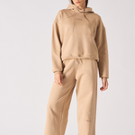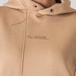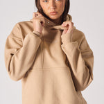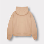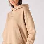 Step up your layering game with this luxury women's hoodie in beige colour. Made from super soft polycotton fabric, perfect for cold winter days or lazy weekends spent relaxing at home. With seam detailing, and an oversized fit, it's sure to become a staple in your wardrobe. The drop shoulder design, silver popper opening to the hood and kangaroo pocket to the front gives it a stylish edge. Try styling it with your favourite bottoms for a dapper look.