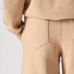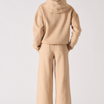 Our women's wide leg joggers is a true wardrobe staple and perfect for lounging in style. It has been designed to be cozy but stylish enough that you can wear them out on the town too! The wide-leg fit means it will stay put while giving your legs some breathing room. We've added patch pockets to the back, side slip pockets to the front, and seam detailing for an added touch of luxury. Whether you're hitting the gym or just running errands, this beige joggers will make you look sharp.