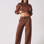 Our Women's wide leg joggers is perfect for lounging in style. Made with super soft polycotton, these joggers are super cozy and look great when paired with a hoodie for casual weekend vibes. With a wide-leg fit and relaxed feel, they're essential for kicking back and taking it easy. Plus, they come in a versatile brown colour and seam detailing that looks great on everyone. So go ahead and elevate your lounge game with our brown wide leg joggers.