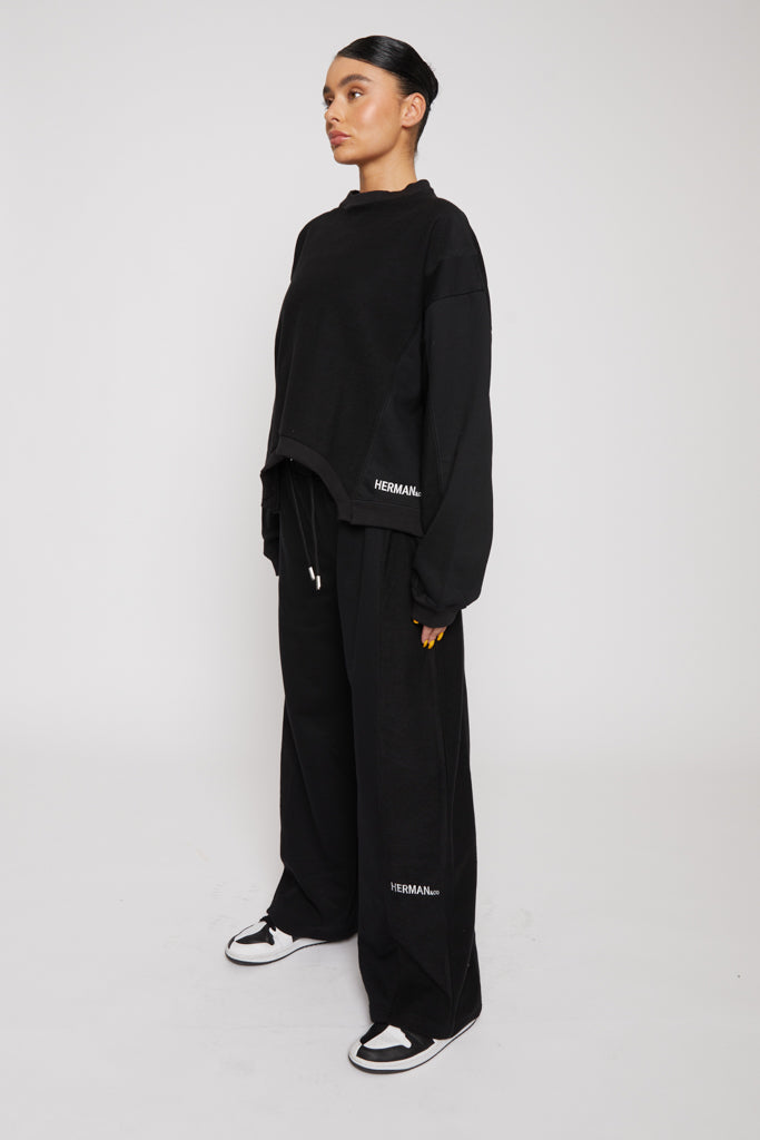 CROP CREW NECK JUMPER - BLACK
