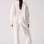 Architectural panel detailing elevates this cropped sweatshirt. Presented in a serene off-white hue, it redefines the essential staple for a contemporary, minimalist wardrobe.