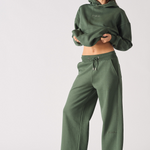 Comfortable, relaxed, and looking good - our women's wide leg joggers is perfect for any activity, whether you're taking a stroll or going for a full-on run. Made with high-quality polycotton, they're extra soft and come in a wide leg fit for ultimate comfort. We've added patch pockets to the back, side slip pockets to the front, and seam detailing for an added touch of luxury. Our dark green joggers ensure that you'll look good no matter what you're doing.