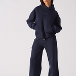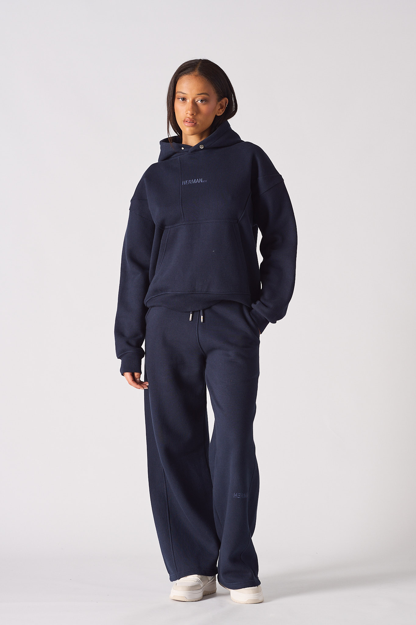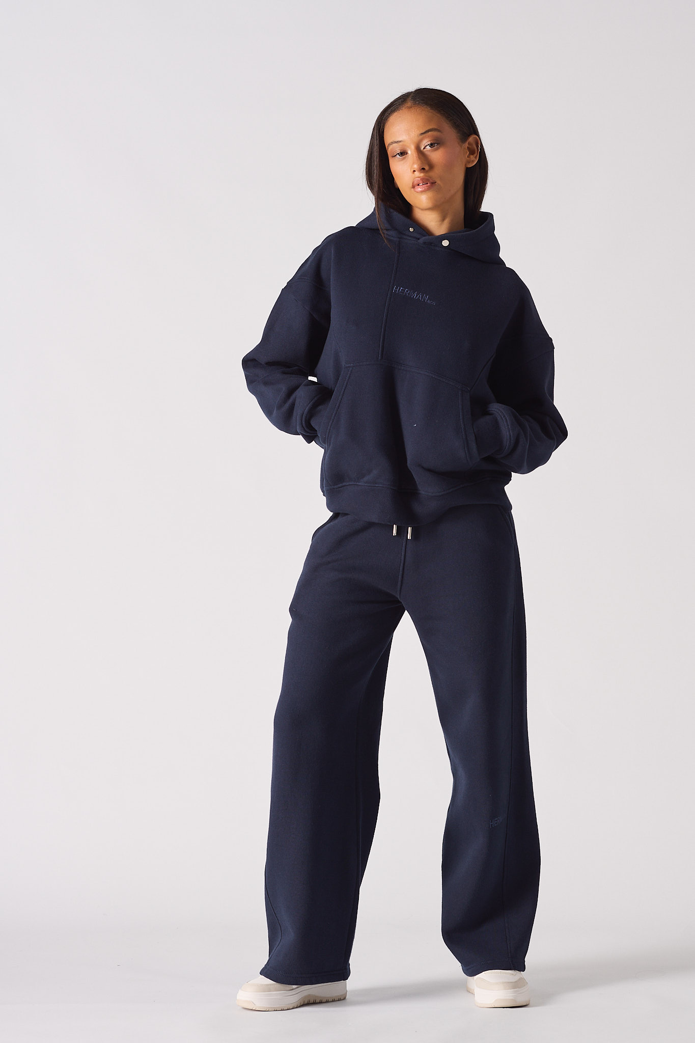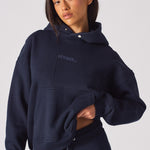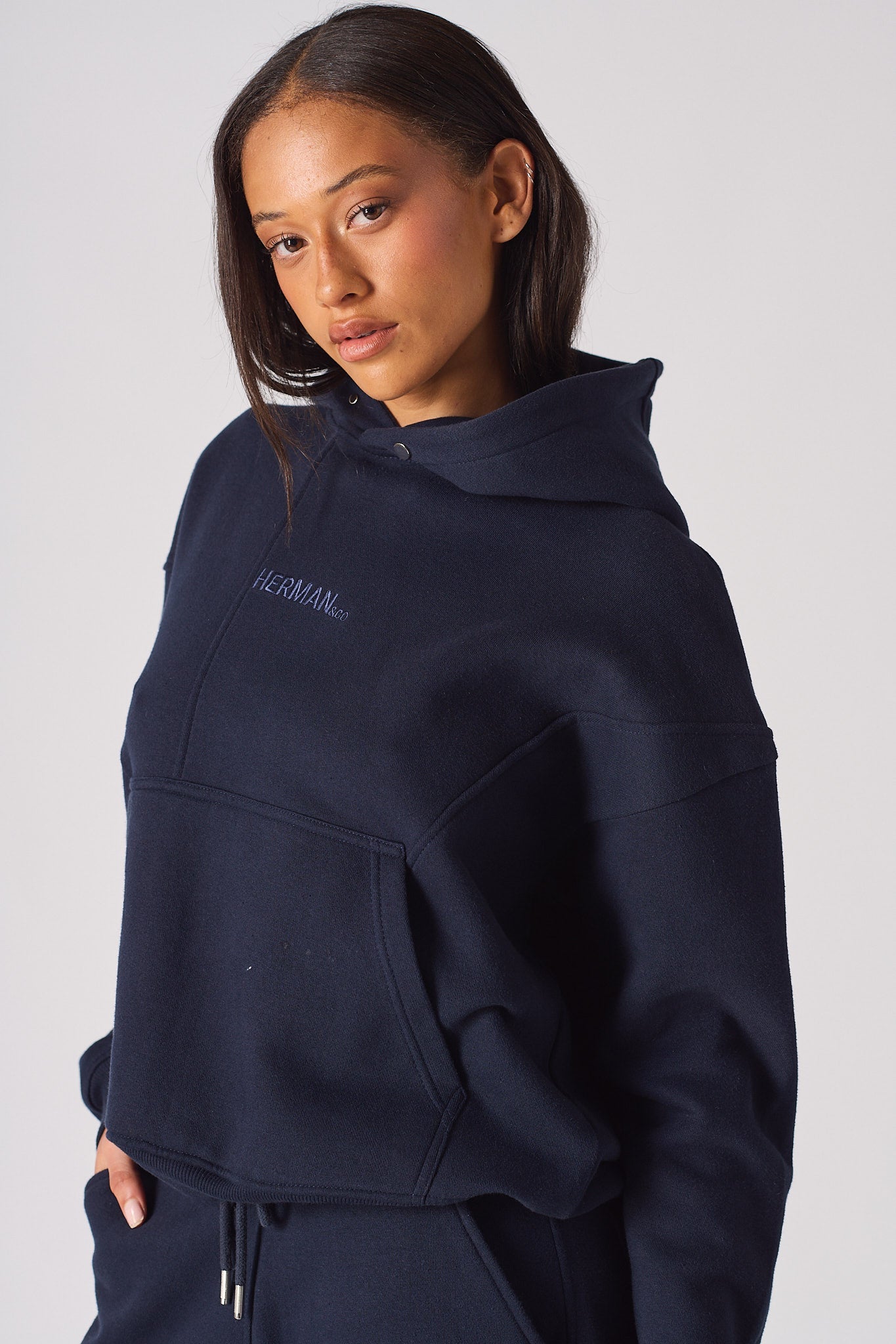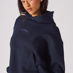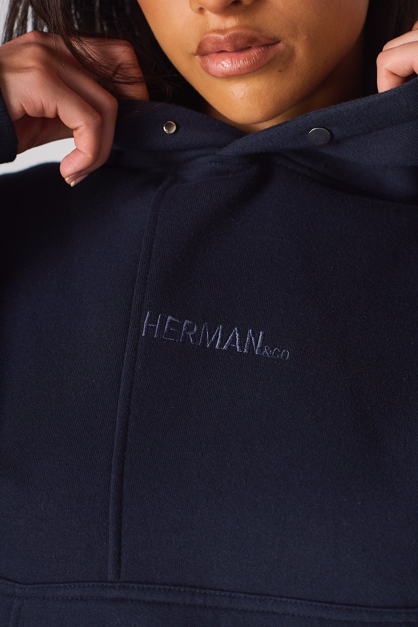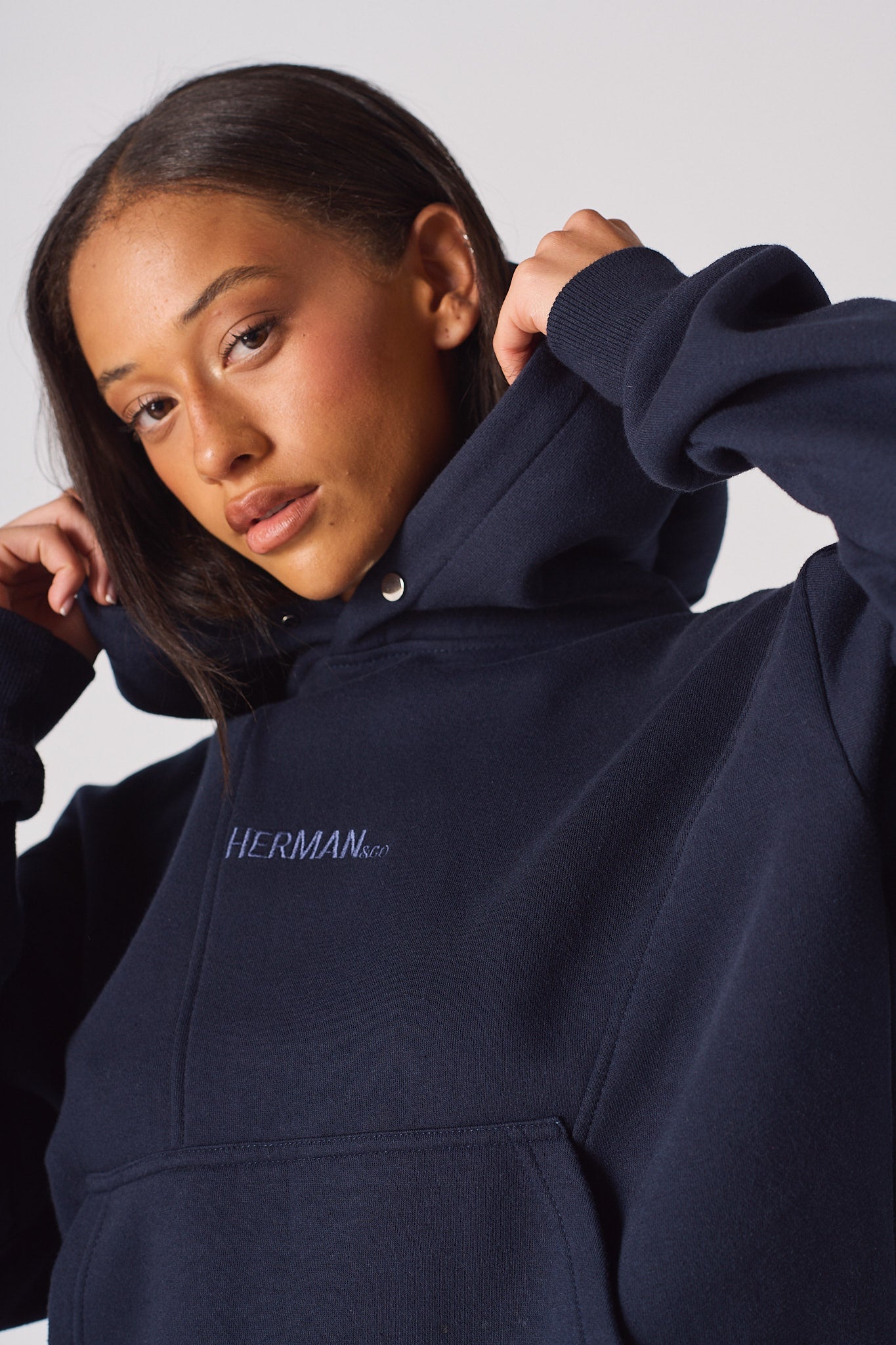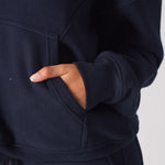 Our women's dark navy hoodie is perfect for adding an extra layer of warmth and comfort to your outfit. This hoodie is made from super soft polycotton fabric, perfect for casual wear. With seam detailing, and over-sized fit, it's sure to become a staple in your wardrobe. In contrast, the kangaroo pocket is great for carrying around your essentials. Whether you're running errands or just relaxing at home, this luxury Women's hoodie is a must-have in your wardrobe.
