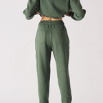 The essential jogger, elevated for modern leisure. Presented in a deep khaki green, this pair is impeccably tailored to a graceful, relaxed silhouette. Crafted from a supremely soft fabric for unparalleled comfort, it's finished with a discreet tonal insignia for a touch of quiet luxury.