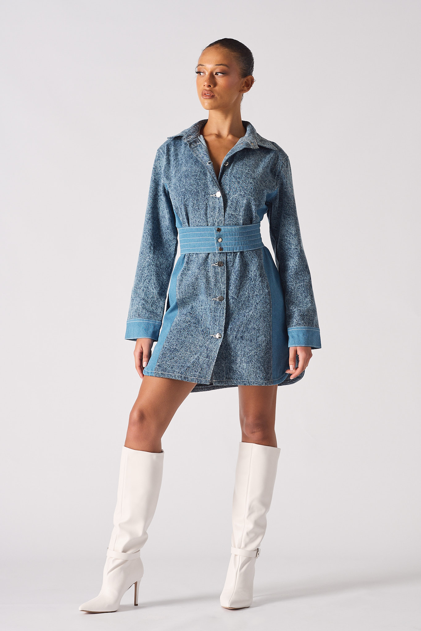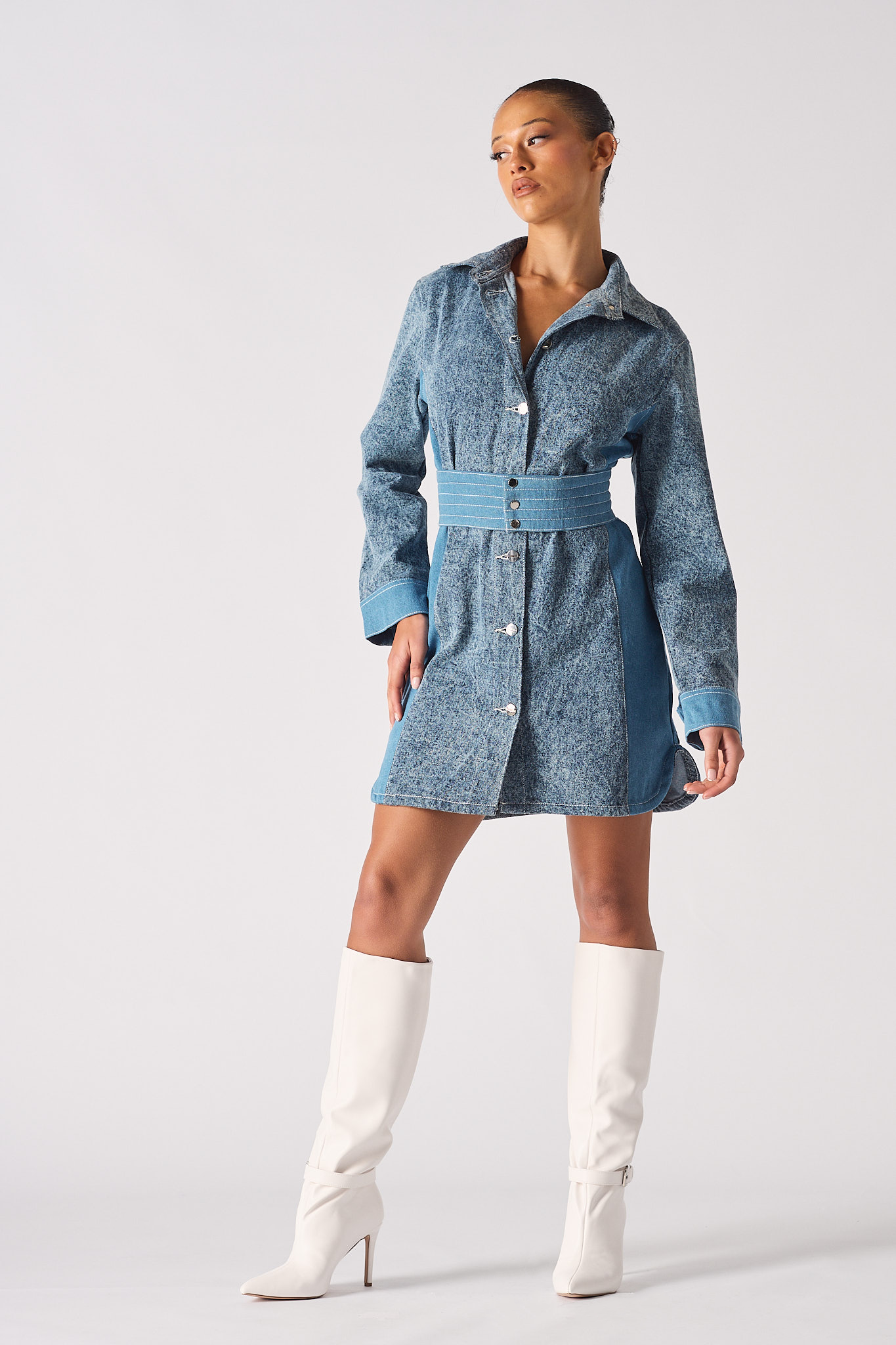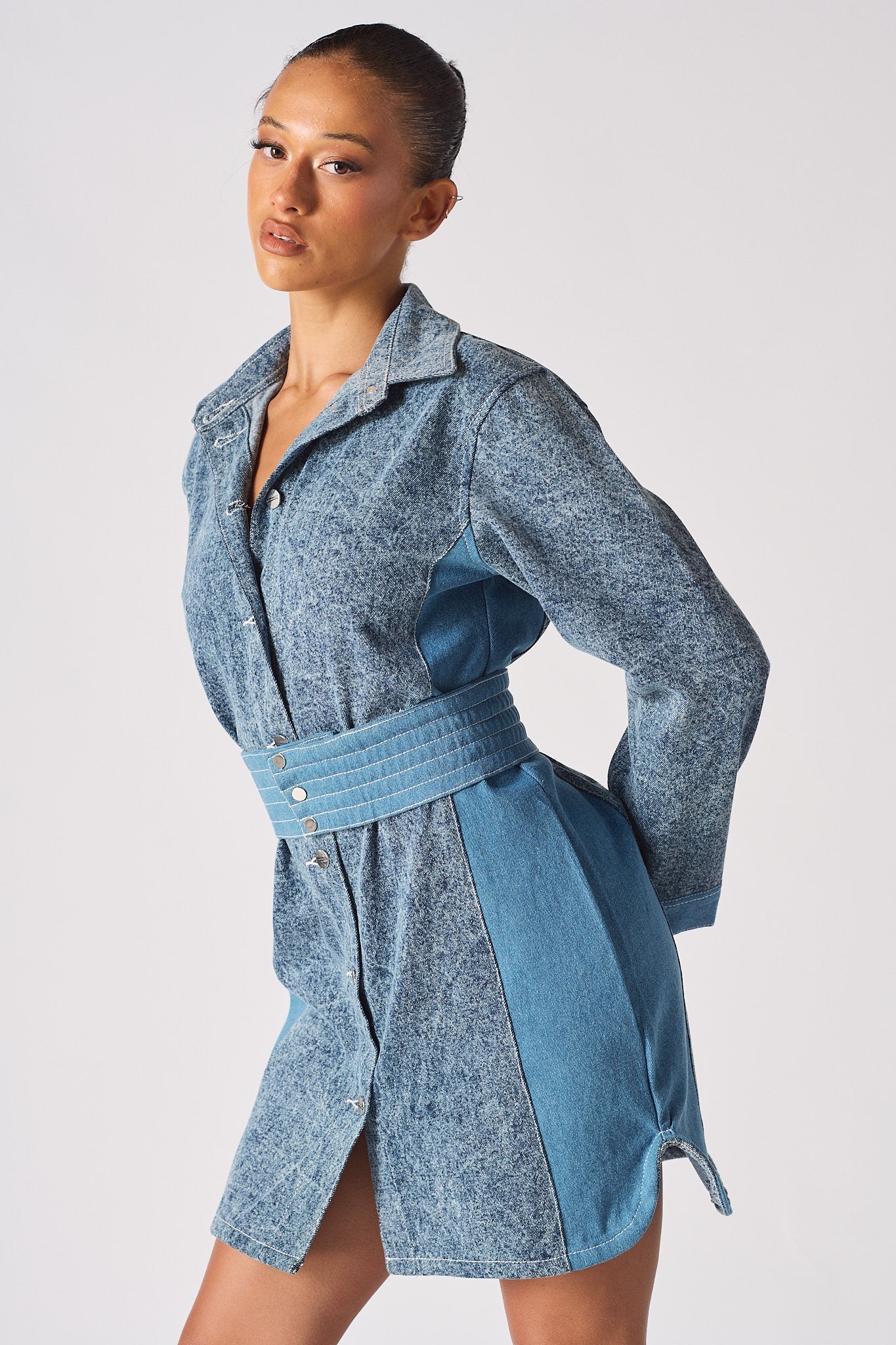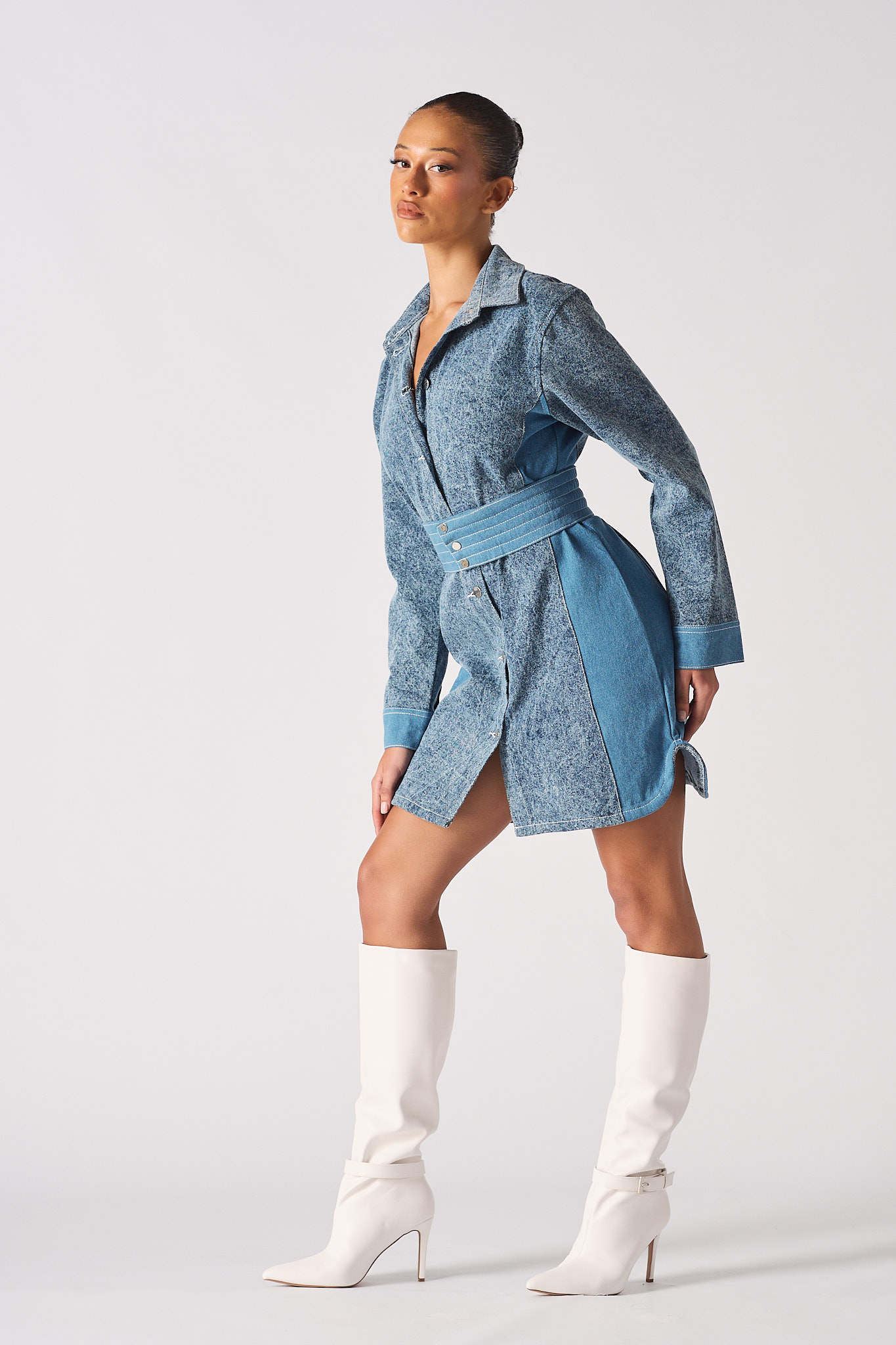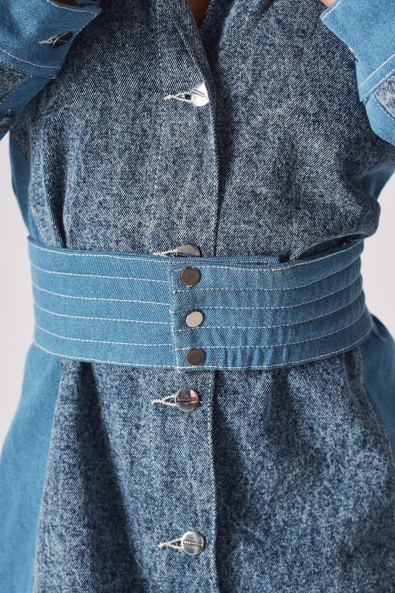 Get the perfect denim look with this blue-wash denim dress! With a flattering fit and on-trend style, this dress is perfect for any occasion! blue-wash gives this denim dress an edgy look. An adjustable popper belt gives you the ideal fit. Contrast stitch detailing provides a stylish finish and makes this dress unique. You'll love rockin' this look all spring and summer long with the perfect blend of style and comfort! This blue-wash denim dress is the perfect addition to your wardrobe!
